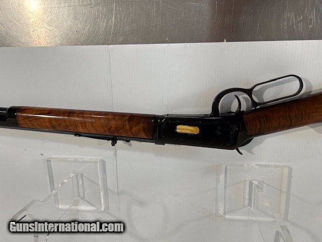 Description: Winchester Classic Octagon Barrle, Level Action, 30-30 Rifle Top eject with scrolled ornate engraved design, gold appearing loading gate & saddle ring. Barrel is blued gloss finish with rear iron & front post sights. BEAUTIFUL Walnut tiger striped stock. Excellent Condition, no marks. 13.25in pull. SOLD Rifle Caliber: .30-30 Winchester Manufacturer: Winchester Model: 94 Classic Barrel Length: 26 Condition: Excellent Metal Condition: Excellent Wood Condition: Excellent Bore Condition: Excellent Barrel Type: Carbon Steel Stock: Wood LOP: 13.25 Finish: Blued Gloss Weight: 8 Sights: Open Irons Engraving: Yes Extras: Saddle Ring & Gold colored Loading Gate  |