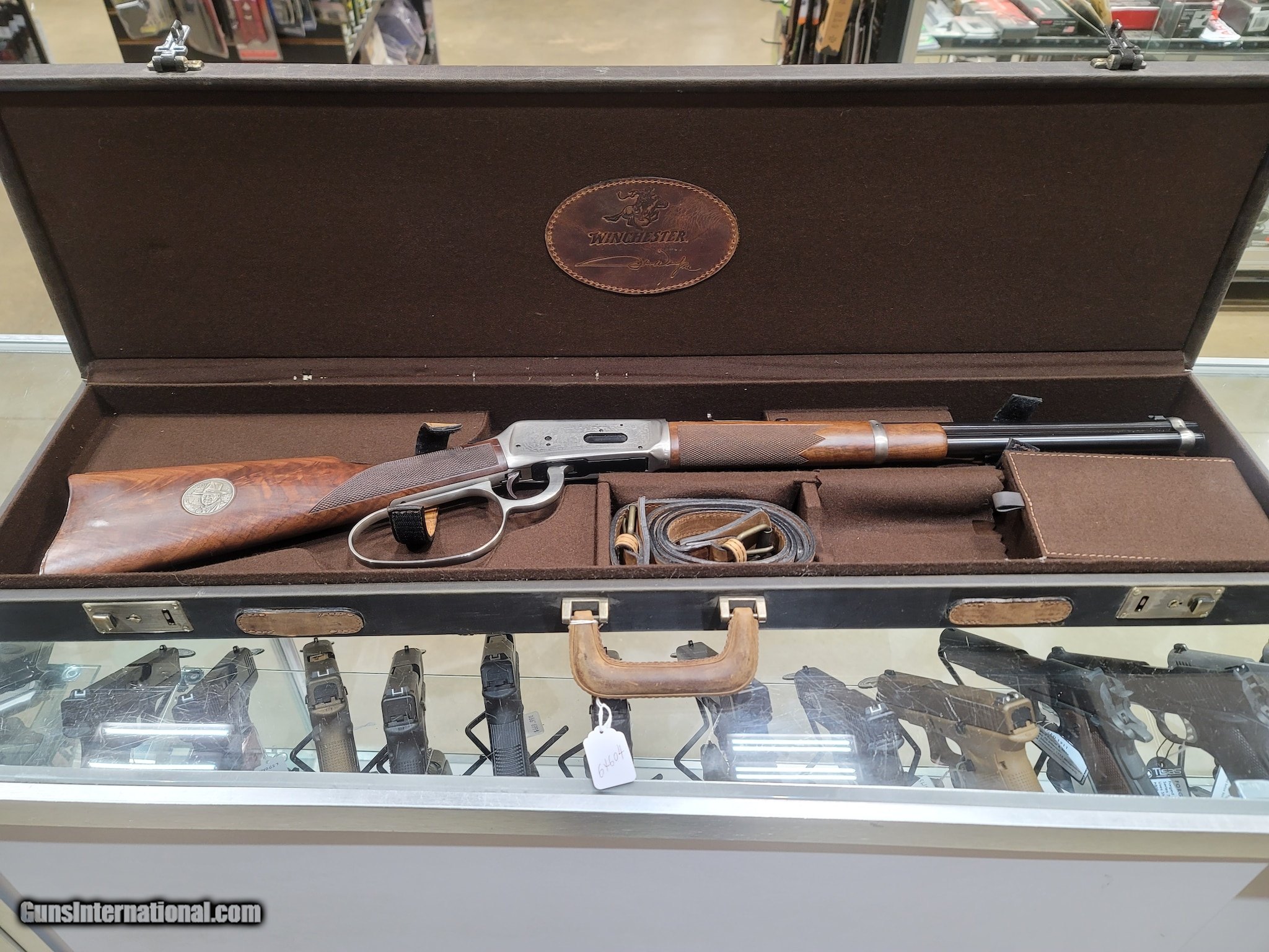 Description: Guns Listing ID: 492307 Winchester 94 John Wayne Commerative Edition with hard leather case. SOLD Manufacturer: WINCHESTER Model: MODEL 94 JOHN WAYNE COMMEMORATIVE Caliber Info: 32-40 WIN Condition: Used - Non-Certified Barrels: 18 BARREL Finish: SILVER AND BLACK |
