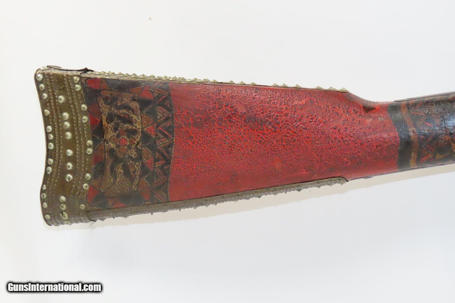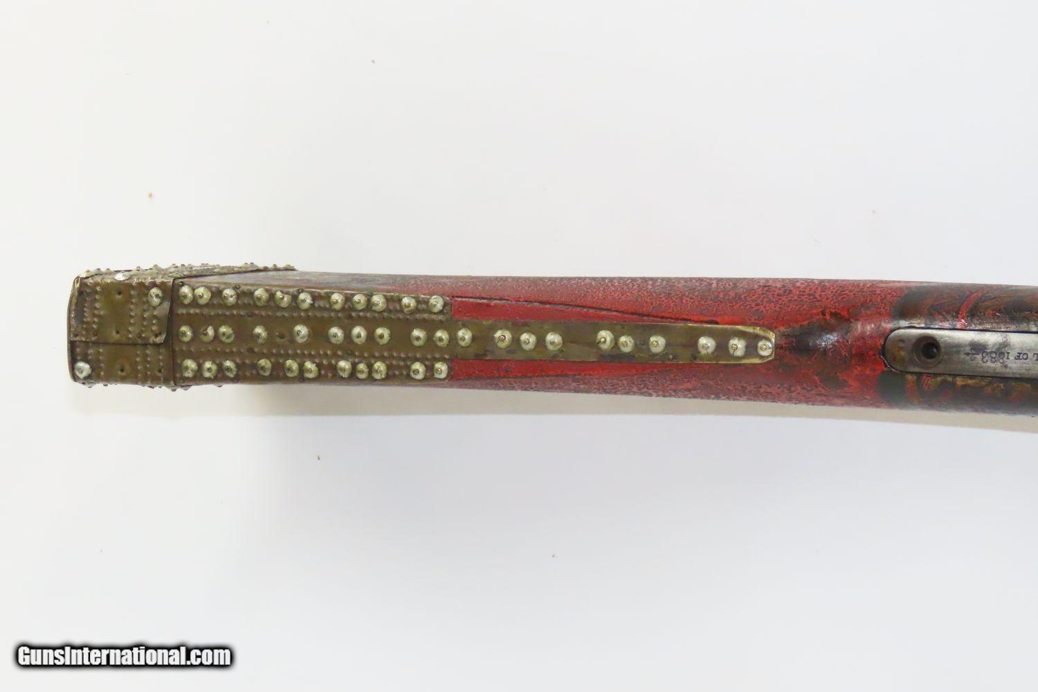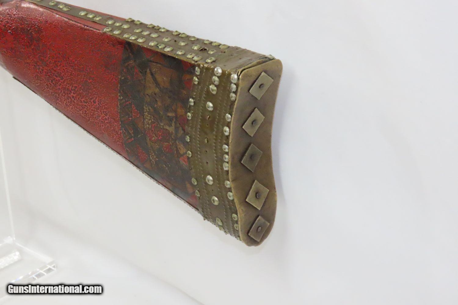 Description: c1885 PAINTED Chinese WINCHESTER-HOTCHKISS Bolt Action Rifle.45-70 GOVT One-of-a-Kind Ornamented Rifle from the Orient! Here we present an antique Winchester-Hotchkiss Bolt Action Rifle in .45-70 GOVT, manufactured in New Haven, Connecticut circa 1885. The Winchester-Hotchkiss rifle was first conceived by Benjamin B. Hotchkiss in 1875 and by 1877 he had four US patents on the design which was sold to the Winchester company in early 1877. This was Winchester’s first bolt action rifle and their first firearm with a magazine fed from the butt stock. US Ordnance did acquire some, but apparently in small numbers as they are rarely found with inspection markings. However, other nations purchased them, including China, from which this one comes. This rifle was very likely ordered under the direction of Li Hongzhang, an extremely influential politician, government official, and military leader for the Qing dynasty. He became especially useful in putting down many of the rebellions that threatened the empire, including the Taiping Rebellion, and would eventually lead China’s forces against the Japanese in the Sino-Japanese War (1894-1895). Li was also responsible for some of the attempt at Westernization of the Chinese military to include academies, general training and equipment—including arms. Small arms were purchased from many different makers in Europe as well as the US, this due to the military being extremely segmented by region and ethnicity—basically overseen by a system of warlords—which was not a good long-term decision when it came to supplying munitions for so many differently chambered rifles. This Winchester-Hotchkiss is one of 11,000 Third Models that were acquired by the Chinese and probably received at Tientsin (Tianjin). This rifle was made during the last year of the Sino-French War, 1885, but things would not settle down for China for a long time to come. In addition to the previous rebellions and riots and the war with Japan, then came the Boxer Rebellion (1899-1901), the Second Guangzhou Uprising (1911), and the Wuchang Uprising (1911) all of which set the stage for the Xinhai Revolution (also called the 1911 Chinese Revolution) which ended the last imperial dynasty of China. There are two small Chinese characters stamped into the left side of the barrel, like proof marks. This rifle appears to have been personalized in a tribal fashion by a user along the line. It makes you wonder if this was issued to one of the small ethnic factions that made up part of China’s decentralized military or if this was perhaps captured by rebels. The stock has been heavily painted and plated along the comb and butt. The foremost portion of the stock bears a thin brass sheeting. A very neat piece of history. The overall condition is very good. Strong action. The bore is in good condition, bright with shallow rifling—this rifle has clearly been shot much and kept in great shape. The stock is solid. A unique example of a very scarce Winchester-Hotchkiss in .45-70 GOVT! Own the original! This is a legitimate antique and not a reproduction. Barrel is 28 inches. Caliber: .45-70 Government Overall condition as seen in photos. Very Fast. Very Safe. FREE SHIPPING WORLDWIDE. Delivered directly to your door by express mail! Guaranteed AUTHENTIC & Includes CERTIFICATE OF AUTHENTICITY. ancestryguns $2185 #210712 SOLD Antique: Yes |