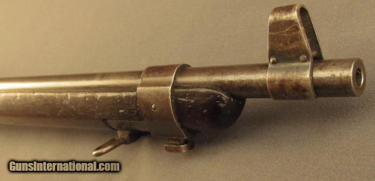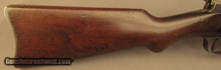 Description: S# 10815, 6mm Lee Navy, 28 inch barrel, bright excellent bore. This rifle conforms to first contract U.S. Navy specs but is not USN or inspector marked on receiver ring. This rifle was built in April 1898 and shipped on April 22, 1898 tro order #6921. Rifle remains in excellent condition retaining 75% blue with most loss on barrel and rear band. Wood is very good with typical dings and dents. A two inch sliver is missing from handguard on left rear, a small sliver is also missing on left by bolt release. A small number of military style rifles in the 10,000 to 15,000 serial range were sold to the public prior to the design of the Lee Sporter stock. This fine piece is a relatively uncommon variation of the famous Lee Navy Rifle. Antique SOLD Antique: Yes Manufacturer: Winchester Model: Lee Serial Number: 10815 Caliber Info: 6mm Gauge Info: 6mm |