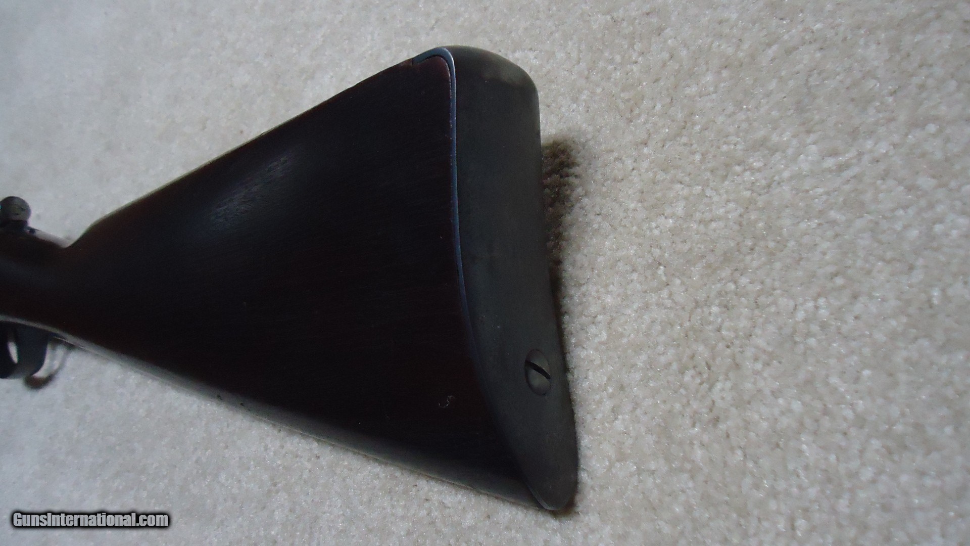 Description: EXTREMELY RARE HISTORICAL U.S. CONTRACT 2ND. MODEL HOTCHKISS .45-70 SADDLE RING CARBINE, #12XXX, MADE 1881, WITH FACTORY LETTER. There is a great deal of information about the 2nd. Model Hotchkiss Carbine in Bruce Canfields excellent book U. S. MILITARY BOLT ACTION RIFLES. In the section on these carbines is a wealth of information and correspondence from the field concerning these arms. Apparently only about 400-600 were produced by a collaboration of Winchester and Springfield. Many were issued to the 4th Cavalry under Co. Randal Mackenzie where they saw considerable combat with the Apache in New Mexico. He complained about breaking "40-50 gun stocks per month" and Springfield had to send a load of replacement stocks for these carbines. I believe this example has such a replacement stock as it does not have a cartouche, but does have a small "U" stamped behind the lower tang. The stocks on all Hotchkiss rifles and carbines are almost always cracked or broken at the wrist because the magazine tube runs through the stock to the butt plate. If the action is lifted out of the stock before the butt plate is removed and the steel magazine tube is also removed, the stock will crack at the wrist. It is rare to find a Hotchkiss of any model with a solid, un-cracked stock. The Cody/Winchester letter indicates that this serial number was a Carbine received in the warehouse on April 29, 1881 and shipped the same day along with "approximately 189 other carbines with the same specifications to the same order number. Various dates in April for the entire shipment." This is an outstanding example that has the correct nickel plated brass forend tip that opens to hold two cleaning rods- that are intact. The stock is excellent+ and if you look carefully you can see two tiny tack holes on the right rear side that probably held a brass identification or rack number plate. The nickel plating on the brass forend cap shows only thinning/peeling on the sides with the balance intact. the barrel shows aged blue with normal wear and has the correct U S and VP with eagle head inspector stampings at the breech end. There is also the correct "H.N." inspector stamps for Henry Nettleton on various parts of the bolt, safety lever and cut-off lever as well as on the receiver top over the Winchester markings on the side of the receiver. There is good blue on the receiver, trigger guard and butt plate. The rear sight is correctly marked "H.C." for Hotchkiss Carbine and is secured by two original slotless screws. The bore is bright and excellent. The bolt is a little slow to go forward with the trigger is pulled which may be that it is just gummed with old grease or has a weak spring. These are scarce and this is one of the best I've seen. Interestingly, there is a photo of one in Herbert Houze's book WINCHESTER BOLT ACTION MILITARY AND SPORTING RIFLES 1877-1937 that is only 17 numbers away from this one. The books show great historical photos of cavalry soldiers holding these carbines with Indians. Lots of Western history in this rare carbine. SOLD Antique: Yes Manufacturer: WINCHESTER/SPRINGFIELD Model: HOTCHKISS SRC Serial Number: 12XXX Barrel Length: 24 Condition: FINE+ Bore Condition: EXCELLENT |