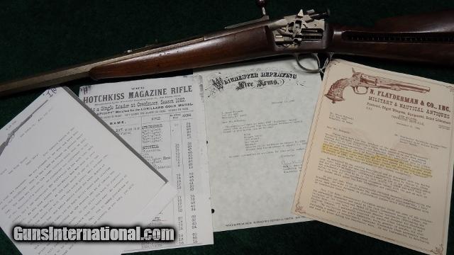 Description: This cut-away rifle was part of a collection of personally assembled and owned guns by the late 'Lieutenant George B. Aldee'. He was a very colorful individual-a highly decorated Civil War officer. Later on, he worked for Winchester as a sales representative. He was quite instrumental in the development of the Hotchkiss rifle. He won the 1882 Creedmore rifle matches. This gun is very well documented with numerous letters; some of them coming from individuals such as Bennett, the Vice President of Winchester, in regards to his shooting at Creedmore. Overall gun is in near excellent condition with 75-80% original nickel which is flaking and turning a very mellow patina coloration. Original semi-deluxe stock is excellent retaining most original varnish, original sights, fine bore. Very interesting gun; guaranteed 100% all original and complete with Factory Letter of Authenticity from the Buffalo Bill Historical Society listing it as a nickeled sporting rifle, sectionalized" which would mean that it's a cut-away rifle. Quite unique, especially with the extensive paperwork and documents that accompany it. Leroy Merz Antique Firearms specializes in antique and vintage Winchesters and other fine American firearms. Since 1965 Mr. Merz has taken part in the world of firearms and has been a contributor to many well known reference books. Just recently we mailed the 124th edition of our privately-published catalog. We have hundreds of additional guns in every price range at our home online. Search for Merz Antiques in google. SOLD Antique: Yes |