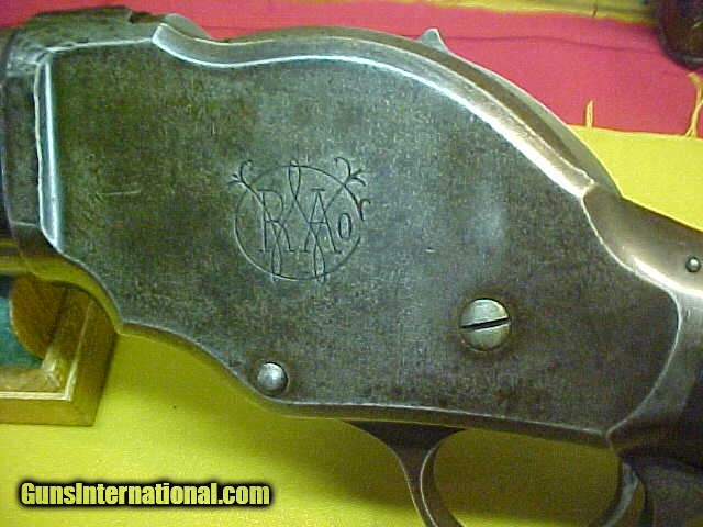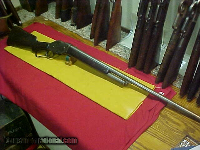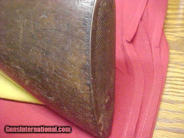 Description: #4660 Winchester 1887 Lever Action Shotgun, 30”x12ga with about a “6” bore on a scale of 10; crisp tight action, 10XXX serial range. The exterior is nice smooth metal with VG markings and a thin grey-brown patina with the only blemish being that some fool clamped the breech of the barrel in a vise or the jaws of a wrench and scarred it up pretty well. Otherwise the metal is “above average” and the wood is also, having no serious deficits. These ‘87s were sturdy guns, some still in use (mostly by Cowboy Action re-inactors) and they rarely get out of order. Butt-ugly in their looks, they might be compared to being the Abominable Snowman of the shotgun world …not pretty, but VERY impressive! $1395. SOLD Antique: Yes |