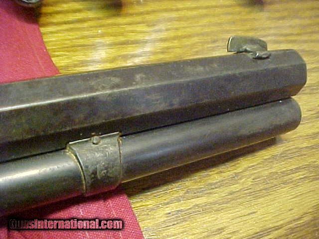 Description: #4763 Winchester 1873 OBFMCB, 44WCF with G-VG bore (about a 6 on a scale of 10, having some medium wear and scale, but still looking like it could spin a bullet) and smooth action. Serial numbered in the 106XXX range, (late 1882). The exterior of this rifle has a chocolate brown patina with some thin plum-blue mixed in with some very light rust and grime build-up and minor pitting. The metal overall is otherwise crisp-edged and devoid of any serious damage or blemishes. The buttstock is well above average with no serious chips, slivers, or cracks, but the forearm has sizable chips at the forecap (see photos) . Standard sights. Nothing rare or wonderful, but a decent original 130 year old Winnie in slightly better-than-average condition. About “VG” $1850 SOLD Antique: Yes |