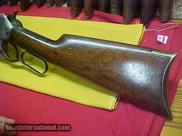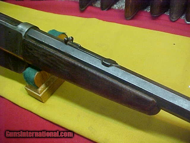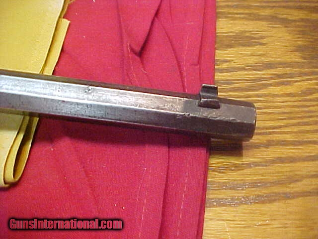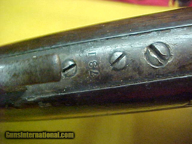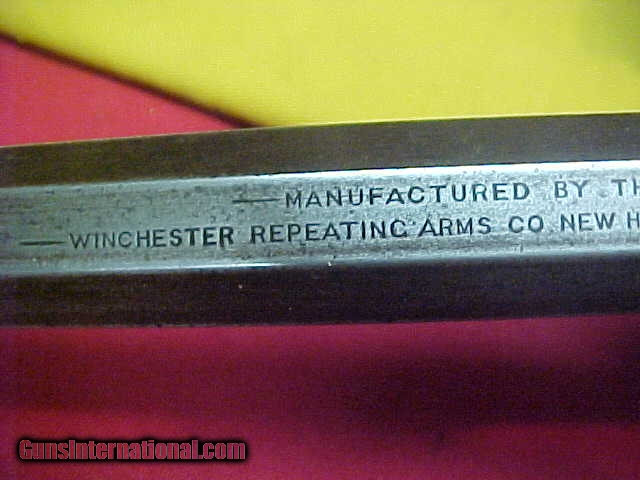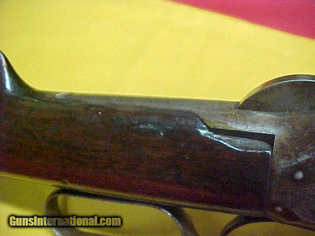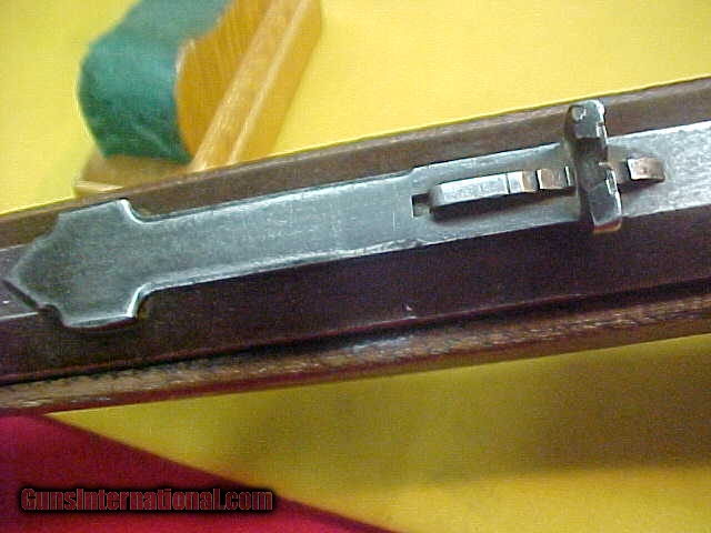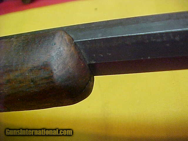 Description: #4765 Winchester 1895 “Flatside” Octagon barreled Sporting Rifle, 40/72WCF with VG+ bore (7+) and smooth tight action. VERY early serial number in the 7XX range and almost certain to be in the 1st year of production. The metal is a smooth even grey-brown with no pitting of consequence, the wood is basically decent, original standard “open” sights and has never beed drilled for a receiver sight. Okay, that was the good stuff …now for the bad. Somewhere in this guns 120-year life span, it has had the barrel shortened from the standard 26 or 28 inch length down to 23-1/2” and the forearm bobbed to proportionarily match the barrel. It’s a very decent looking early Flatside receiver ’95 and in a scarce caliber and octagon barrel …but it has had about $500 in value whacked off the barrel and fore-stock. What a shame. Stll, it’s about VG/VG+ as described condition-wise if not for the period cutting. $995 SOLD Antique: Yes |
