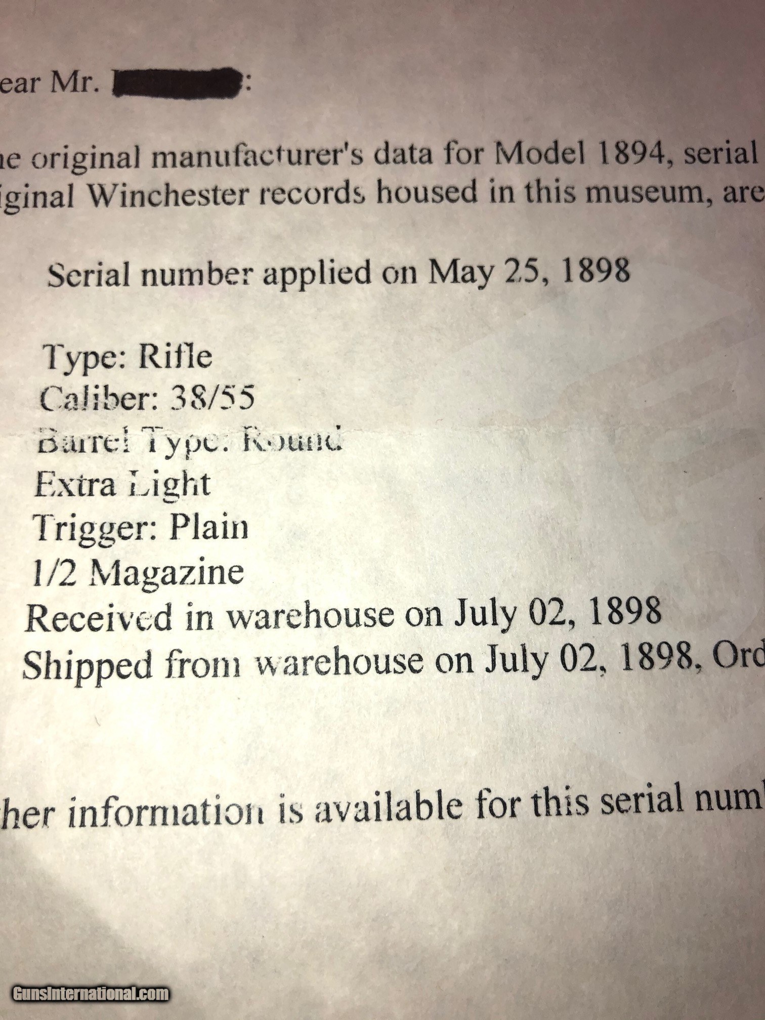 Antique Winchester MOD 1894 Extra Light "Pencil Barrel