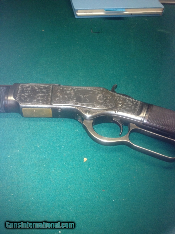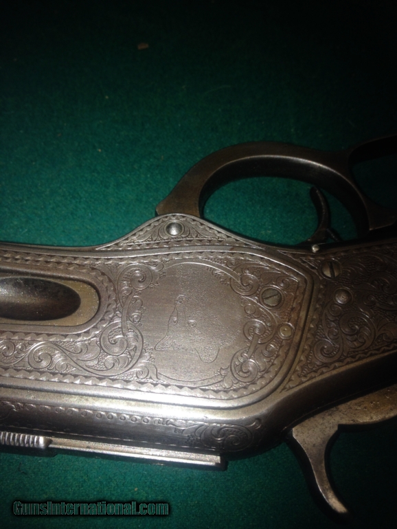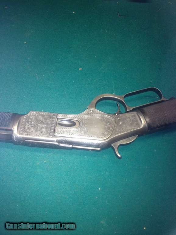 Description: 1873 factory engraved rifle, sporting leaf sights, case hardened, $5. engraving, octagon barrel l,sst,checkered stock. Factory letter. No case coloring left. mechanically excellent, bore good. 1880 gun 2nd model SOLD Antique: Yes |