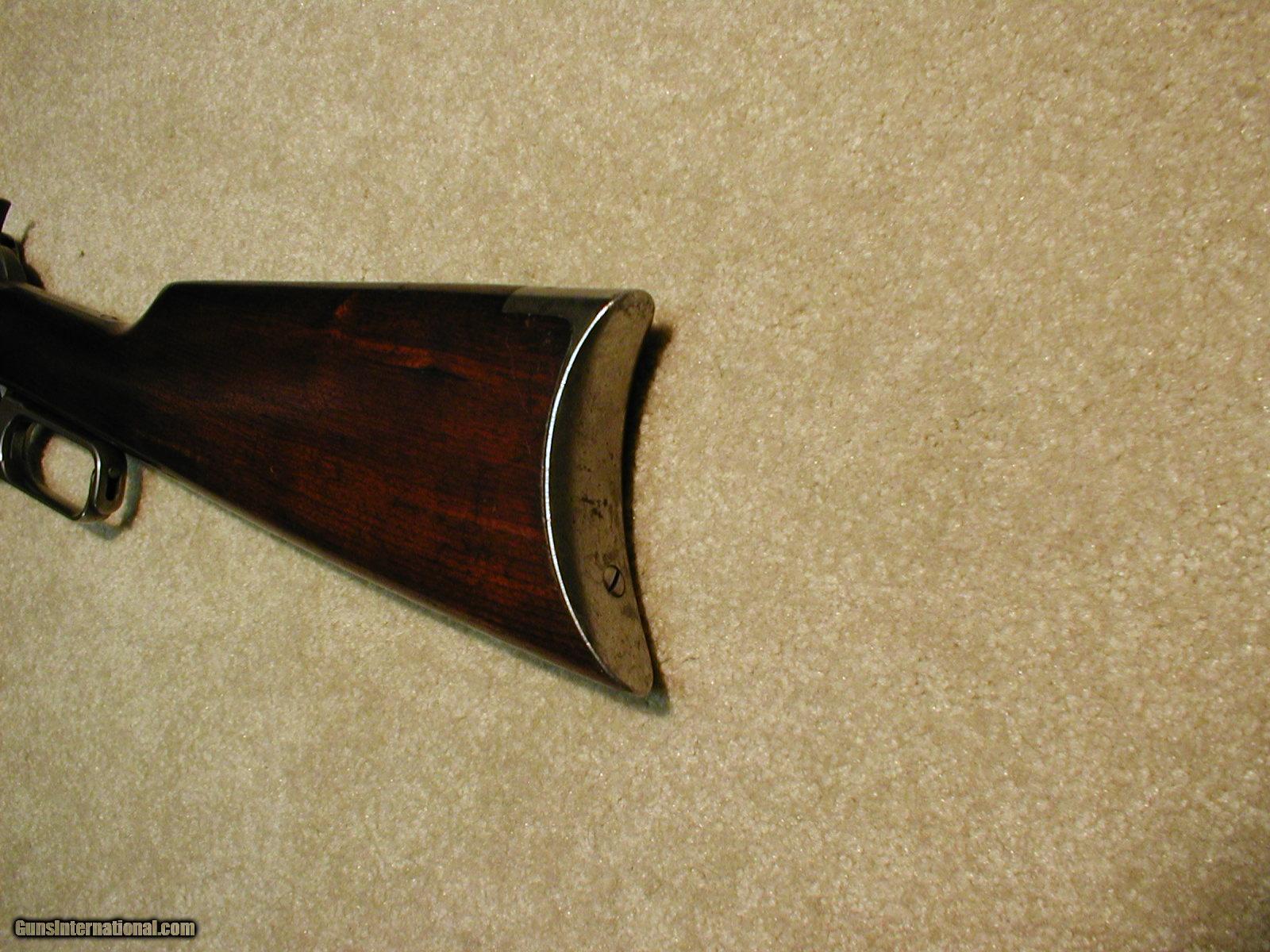 Description: 1895 RIFLE IN THE RAREST CALIBER, .40-72, MADE 1899, when I got this rifle I knew it had gone back to the Winchester factory as it had barrel and receiver proof marks- the practice of stamping these proofs began in 1905- so I called the Cody Museum and found that this rifle was indeed returned to the factory as it originally left in .38-72 caliber, so it was obviously returned and re-barreled in .40-72 sometime after 1905, fine barrel blue overall showing light age only, fine blue on the magazine, on the bolt and thinning blue on the more protected areas of the lower receiver sides, exc. wood with tight wood to metal fit, MINTY BORE, original buckhorn and blade sights, no extra holes, exc. markings, 100% factory Winchester in a seldom seen caliber. SOLD Curio/Relic: Yes Manufacturer: Winchester Model: 1895 Rifle Serial Number: 26XXX Caliber Info: 40-72 WCF Condition: fine+ Barrels: 26 |