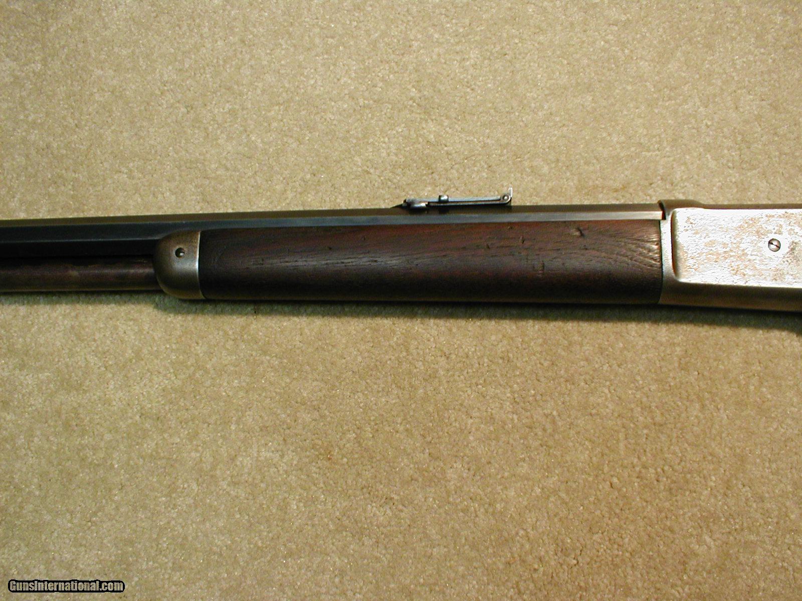 Description: TRULY AMAZING 1886 RARITY! THIS IS THE FIRST STANDARD OCTAGON RIFLE I'VE SEEN THAT LETTERS WITH A CHEEK PIECE STOCK!!! DESIRABLE CALIBER .45-90, the factory letter states that this rifle left the factory in 1889 as an octagon .45-90 caliber rifle and was then returned in 1894 for "New frame and plain shotgun butt stock with cheek piece fitted and returned." So apparently, someone ordered/bought this rifle and a few years later had the receiver replaced and the stock changed, making this one of the rarest 1886s extant! On the few photos of 1886s with cheek pieces they were almost always super deluxe engraved presentation models where as this was a working gun. fine lightly thinning barrel blue, mag tube has some blue that is aged and mixing dark and brown, silver/gray receiver with thinning blue on the bolt, has the 1886 dated sporting ladder sight with slide intact (looks like a longer carbine sight), fine+-exc. forend, butt stock shows normal light handling and has a very old hairline crack coming back from the upper tang for a few inches and doesn't go all the way through the stock, but probably made it a little loose as there are a few barely visible repair plugs in each side of the wrist making this a very tight fitting stock- you have to look very carefully to see this and it in no way detracts from the overall fine appearance of this rare 1886, fine screws and MINTY BRIGHT EXC. BORE! smooth steel shotgun butt plate, The best and most advanced Winchester 1886 collections don't have one of these! SOLD Antique: Yes Manufacturer: Winchester Model: 1886 Special Order Serial Number: 32XXX Caliber Info: .45-90 Condition: fine Barrels: 26" oct |