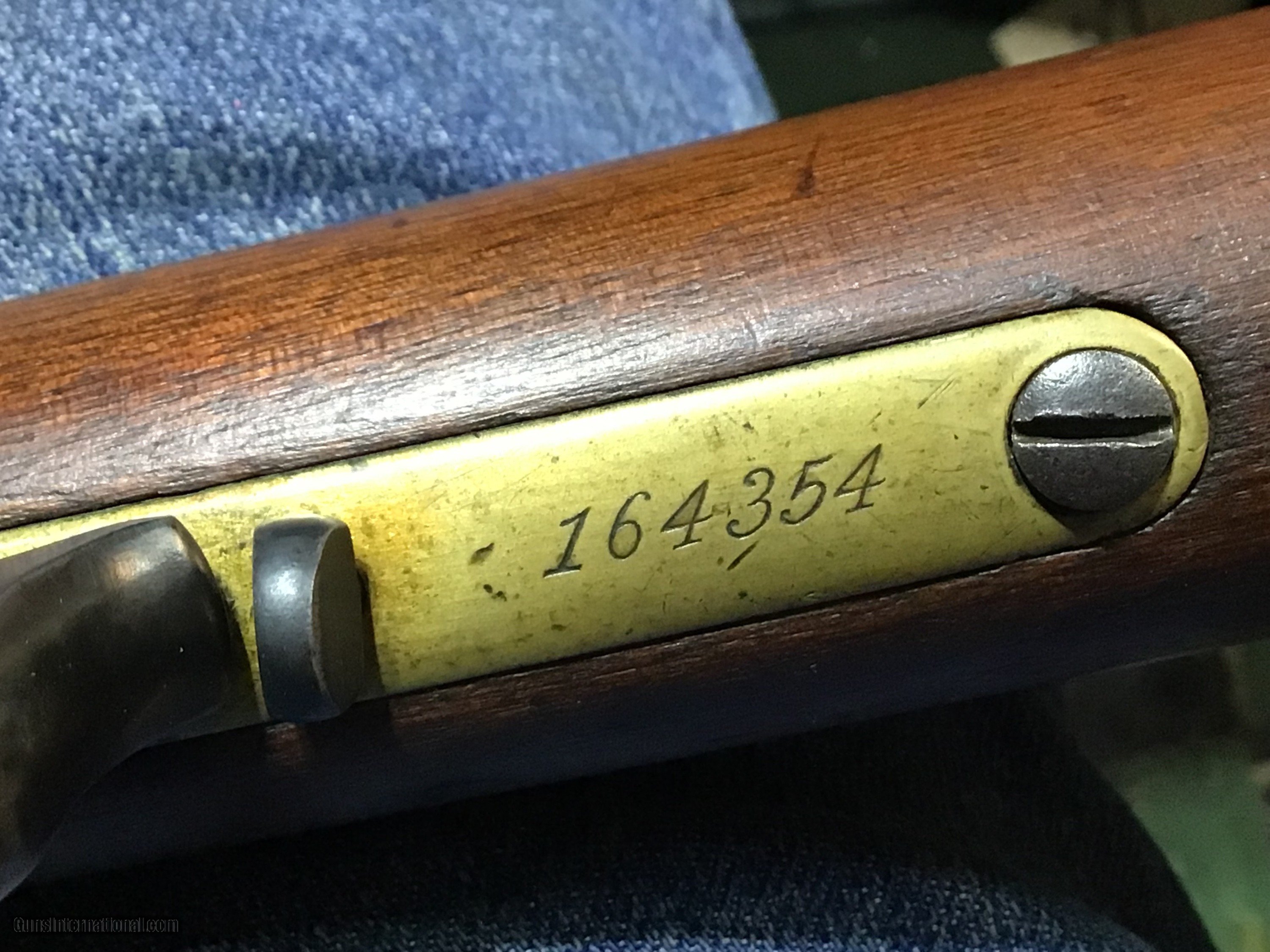 Description: Antique Winchester model 1866 wearing a 24 inch barrel and steel buttplate. Walnut stock with sliver missing from left forearm. Action works as intended, dark bore with rifling. Chambered in .44 Henry. Barrel may have been shortened. A good looking Antique 1866 Winchester to add to your investment shooting collection, a model that lived through and made the American Wests history. Add 3% if paying with credit card. Free shipping for all US Veterans. God Bless America from a proud American, and a Viet Nam Vet , thankful for our freedoms.. paid for by the Blood ,Sweat and Tears of our brave men and women in uniform. Ten Below Firearms is a Veteran owned and operated business. We specialize in out of production models of high quality firearms. We love to ship! We ship to all states where legal, just give us a call! Handguns normally ship for $35 and Long guns for $50 and up for extra length long guns. That's 2-3 day USPS Priority shipping, Delivery conformation and with tracking number. Optional Postal insurance is additional $1.75 per $100 and highly recommended. We are OPEN BY APPOINTMENT ONLY FOR IN PERSON VISITS, We trade, sometimes. All payments sent via mail must be received within five days of date of purchase or item will be relisted for sale. Layaway:If needed we offer a 60 day layaway program. Terms, 1/3 of purchase price down, 1/3 due in 30 days, and the final third to include card fees and shipping due at 60 days. Funds are non transferable and non refundable .Layaway is not available on negotiated prices. SOLD Antique: Yes Rifle Caliber: .44 Henry Manufacturer: Winchester Model: 1866 Serial Number: 164354 Barrel Length: 24 inch Condition: Dry good Metal Condition: Very good Wood Condition: Good Bore Condition: Good Barrel Type: Round Action: Lever Stock: Walnut Finish: Blued/ Brass patina Sights: Iron Manufacture Date: 1885 Item Location: Mn |