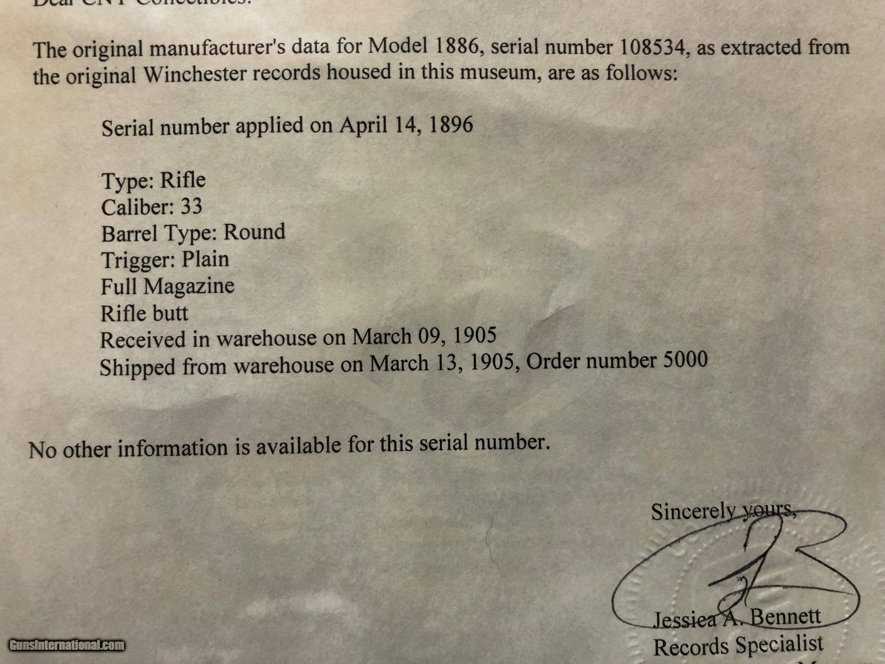 Description: Here is a nice antique lettered Winchester model 1886 in 33 wcf serial number applied 1896 and shipped 1905 i do have 2 boxes of shells for extra cost if someone wanted please view the pictures and letter for your opinion on condition. To me it's very nice for the age and shoots well.any questions feel free to ask I will do my best to answer. As is sale no returns. Also I'm a private seller just reducing a few . Shipping will be 55.00 . Antique so can be shipped directly to your door . Please know your laws . Thank you SOLD Antique: Yes Rifle Caliber: .33 WCF |