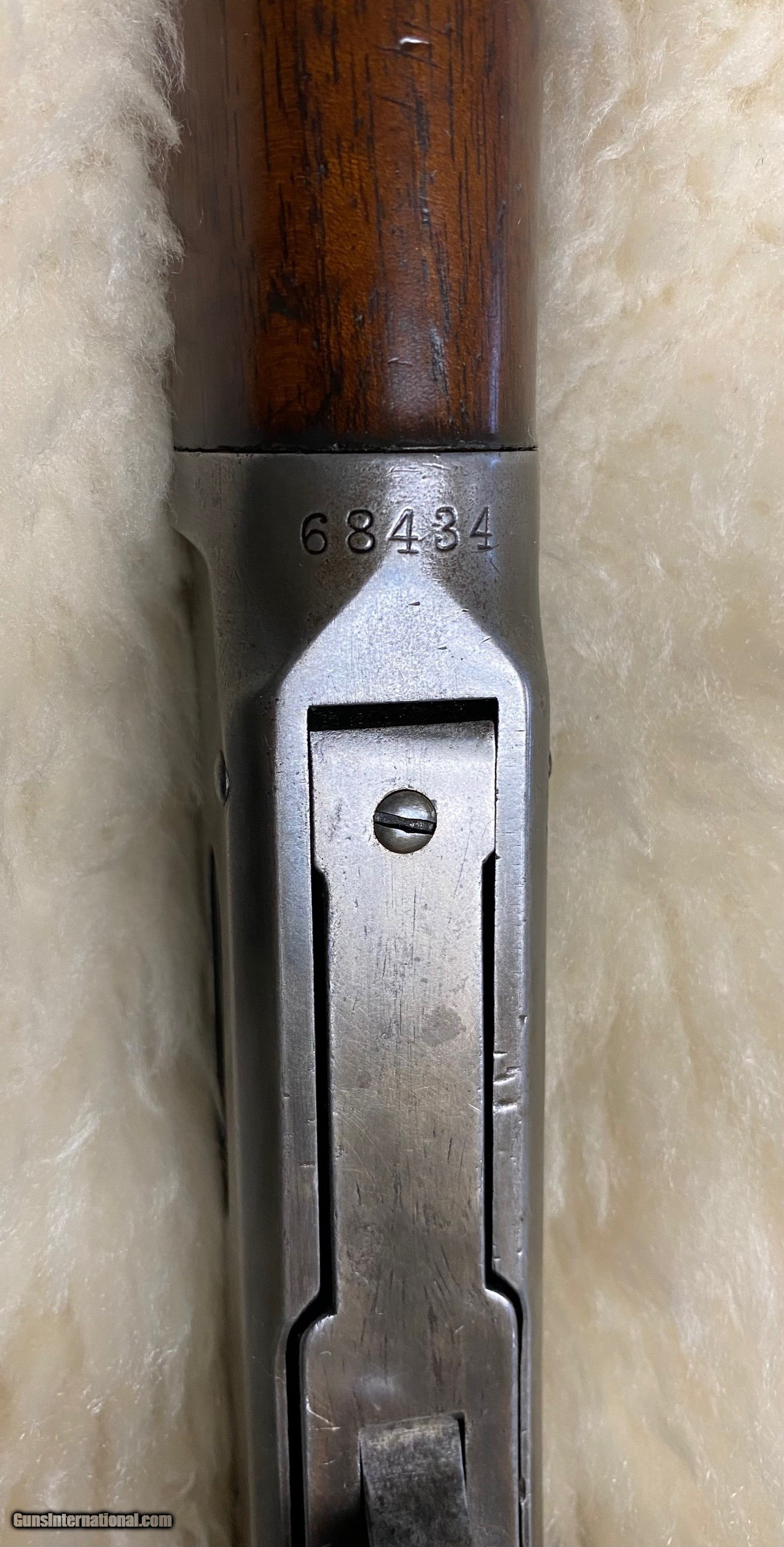 Description: Antique Winchester SRC 1894 .38-55 in very good condition overall. 20" barrel. Functions fine. Manufactured in 1895 with early 5 digit serial number. Excellent addition to any collection. $40 insured shipping. SOLD Antique: Yes Rifle Caliber: .38-55 Winchester Manufacturer: Winchester Model: 1894 Serial Number: 68434 Barrel Length: 20” Condition: Very good Metal Condition: Very good Wood Condition: Very good Bore Condition: Good Action: Lever Finish: Blue Sights: Adjustable Manufacture Date: 1895 Item Location: WV |