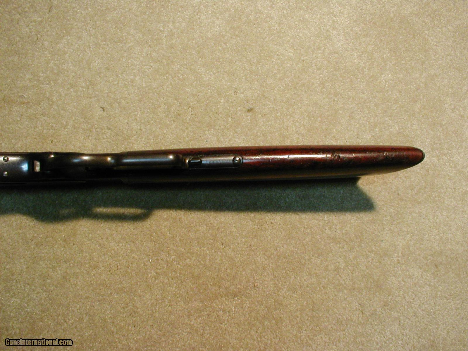 Description: BEAUTIFUL BLUE ON THIS SPECIAL ORDER 1873 WITH EXTRA LONG 28" OCTAGON BARREL, .32-20 CALIBER, MADE 1886, most of the deep blue remains on the barrel with only light dulling from age, mag tube mixing brown/plum, receiver shows most of the blue showing some age dulling with plum mixing in the less protected areas of the edges etc. but very attractive and never cleaned or "helped," uncleaned mellow brass lifter marked "32 CAL," original dust cover intact, exc. stock and forearm showing only light handling and tight wood to metal fit, exc. markings, buckhorn rear sight with Marble No.2 blade/ivory bead front sight, exc. screws, still retains some nice case color on the hammer and traces on the protected parts of the lever, perfect mint bore that I believe is a reline as one can see the outline of the liner at the muzzle, a really handsome long barreled 1873 with lots of condition! SOLD Antique: Yes Manufacturer: Winchester Model: 1873 SPECIAL ORDER RIFLE Serial Number: 210XXX Caliber Info: .32-20 Condition: fine+-exc. Barrels: 28" OCT. |