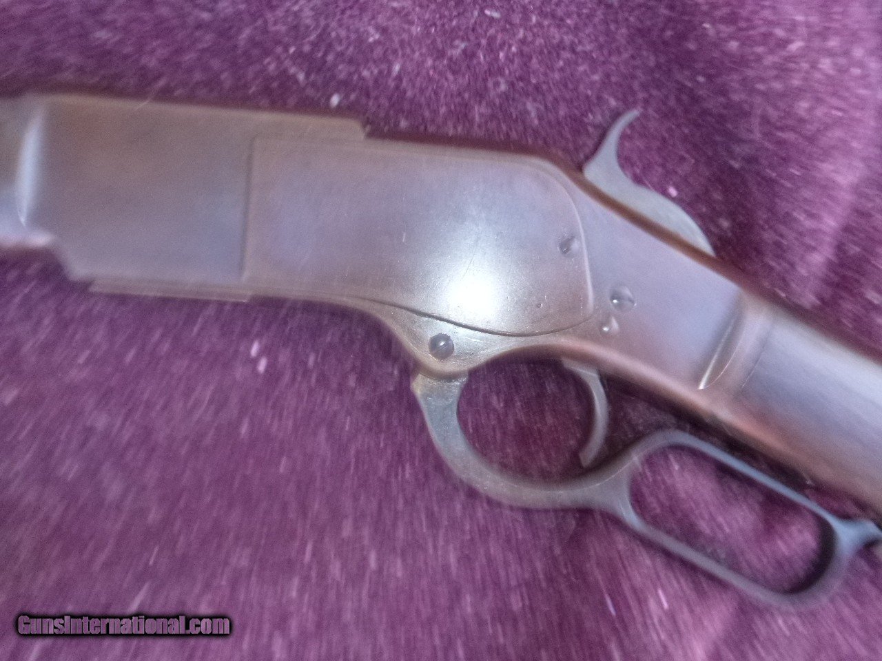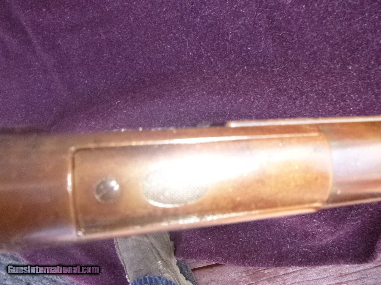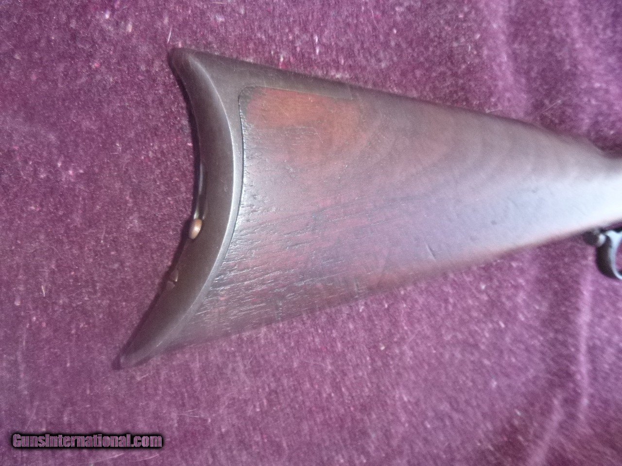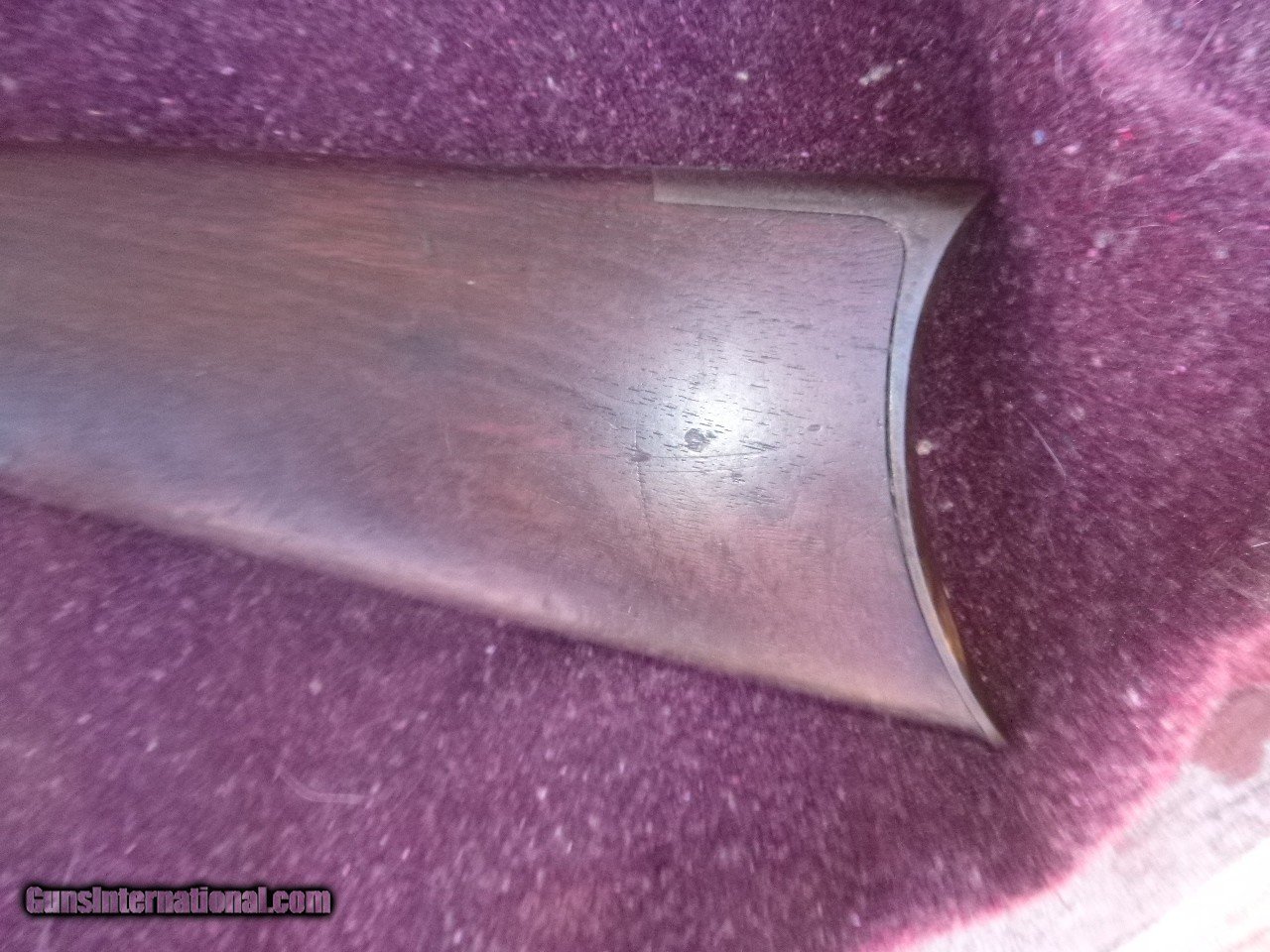 Description: Here is one of the rare First Model 1873s that not only survived all these years but did so in nice condition. And it has a special order 28" barrel. Made in 1876, the year the James gang held up the Northfield bank and General Custer met his match at the Little Bighorn, this rifle has been around for a lot of history. The bore is very good with good rifling. The action works as it's supposed to and the lettering is all there. The finish has turned to a smooth patina with no rust. The wood is good with no cracks. It does have a few dings from nearly 150 years of us but no cracks or big gouges. And thankfully no previous owner thought they could improve its appearance by sanding the stock. A very nice untouched 1873 that was there for most of the "wild west". Shipping and insurance included to your door as this is an antique. SOLD Antique: Yes Rifle Caliber: .44-40 Winchester Manufacturer: Winchester Repeating Arms Model: 1873 Serial Number: 19xxx Barrel Length: 28 Condition: Very good Metal Condition: Very good Wood Condition: Very good Bore Condition: Very good |