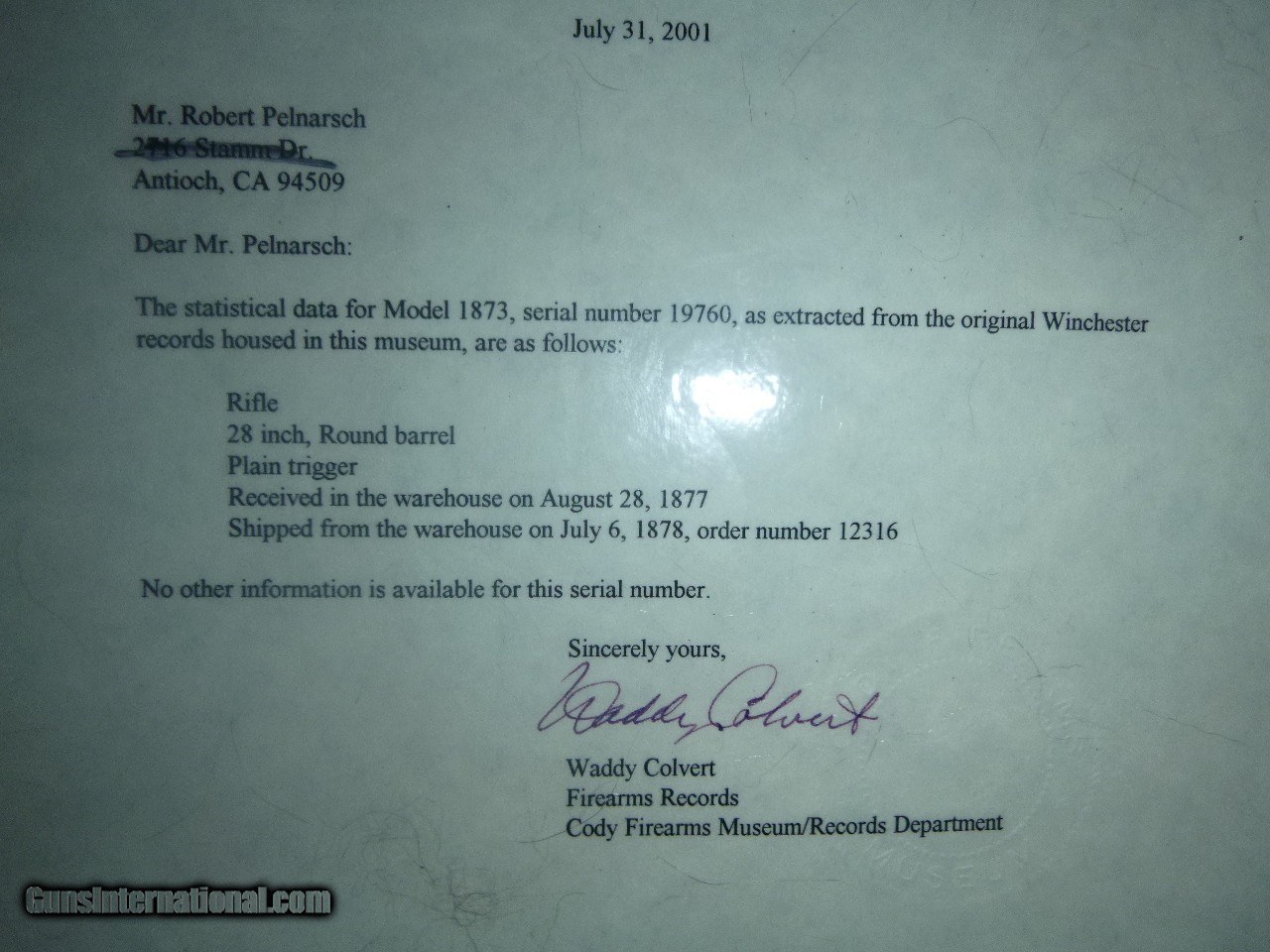 First Model Winchester 1873 lettered 28" barrel/ very good bore