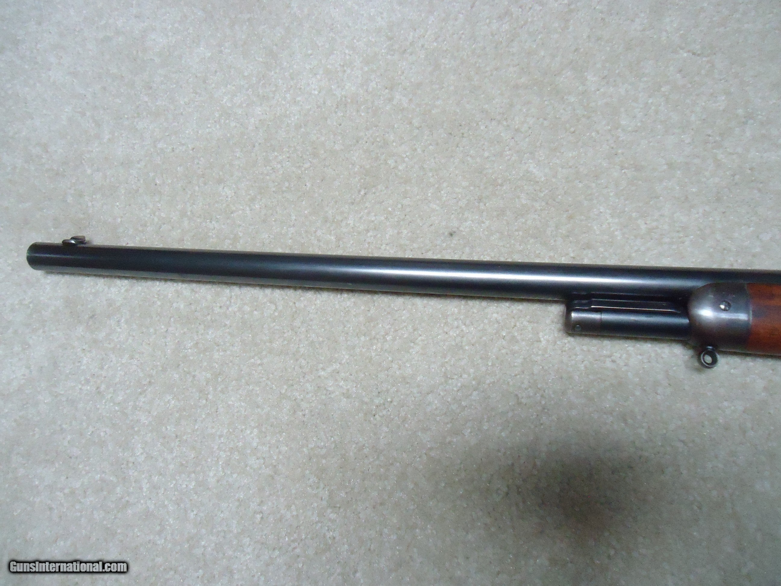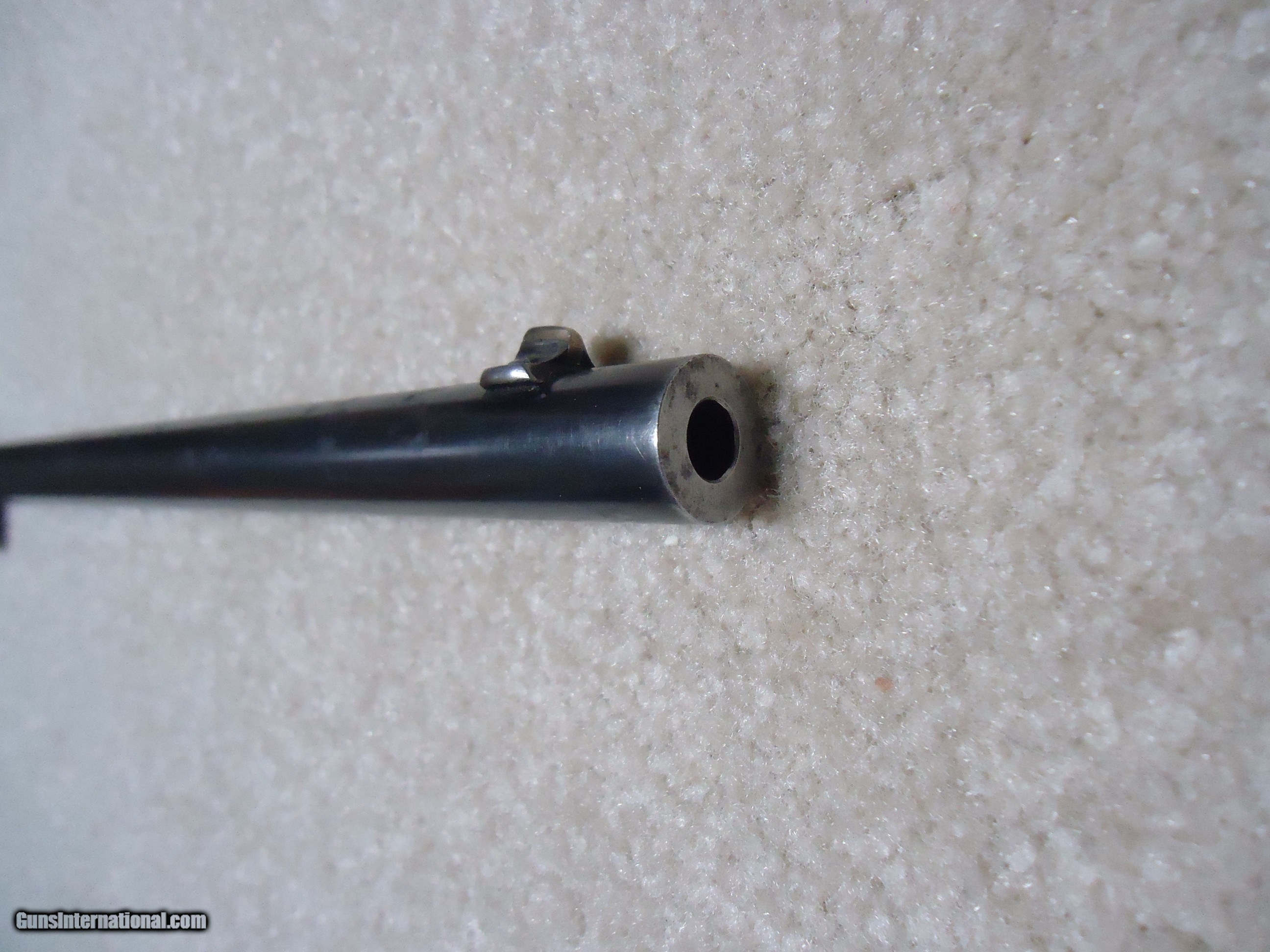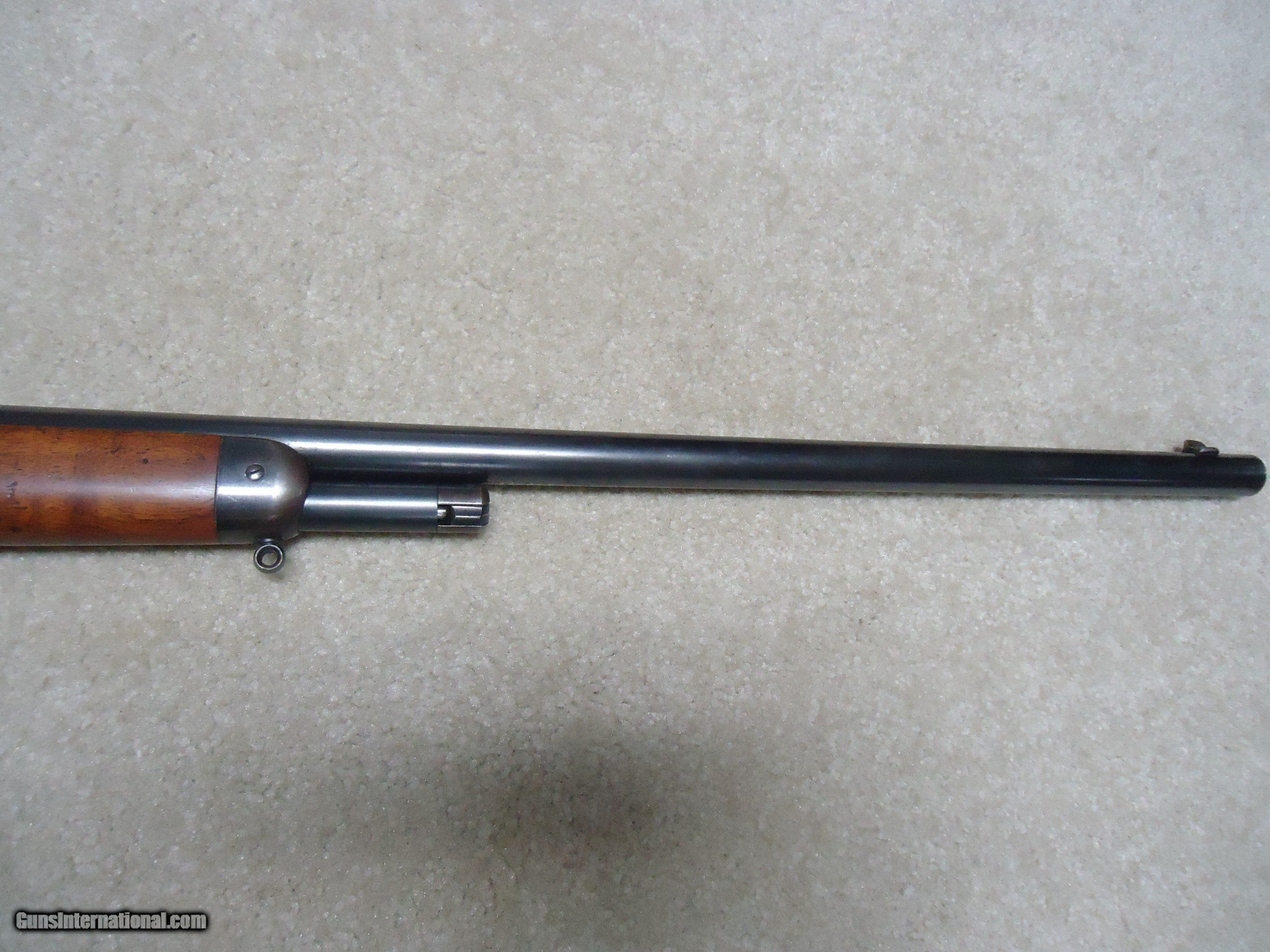 Description: HIGH CONDITION SPECIAL ORDER 1894 .32-40 TAKEDOWN, ROUND BARREL/HALF MAGAZINE, NICKEL STEEL BARREL, #304XXX, MADE 1906. This is a very unusual 1894 that, aside from the takedown and half magazine, has a "NICKEL STEEL" marked barrel. Typically, during this time, only the "smokeless" cartridges like .25-35, .30 WCF and .32 WS had nickel steel barrels intended to be shot with jacketed bullets. The .32-40 and .38-55 were usually loaded with lead bullets and Winchester used non-nickel steel barrels on these calibers unless special ordered with nickel steel, like this one. The receivewr shows fine deep original blue overall with some light thinning toward the front of the receiver sides, on the receiver ring and edges. The barrel and short magazine show deep blue and even the takedown ring and forend cap show good blue. Excellent walnut stock and forend with tight wood to metal fit and a little extra grain as was typical for special ordered rifles. Excellent screw heads, tight action with strong safety half-cock, still some case color on the lever sides and hammer. Has early style "screw-eye" sling swivel studs (for hook-eye swivels popular at the time) correctly placed in the stock and forend cap. Has full buckhorn rear sight with elevator bar intact and Winchester blade front sight along with a Lyman tang sight with eye disc (and no extra holes in the tang underneath). Best of all, the bore is minty bright! Unusual rifle in any condition, this is a fine one and especially desirable and rare with nickel steel barrel. SOLD Rifle Caliber: .32-40 Winchester Manufacturer: WINCHESTER Serial Number: 304XXX Barrel Length: 26 Condition: EXCELLENT Bore Condition: EXCELLENT |
