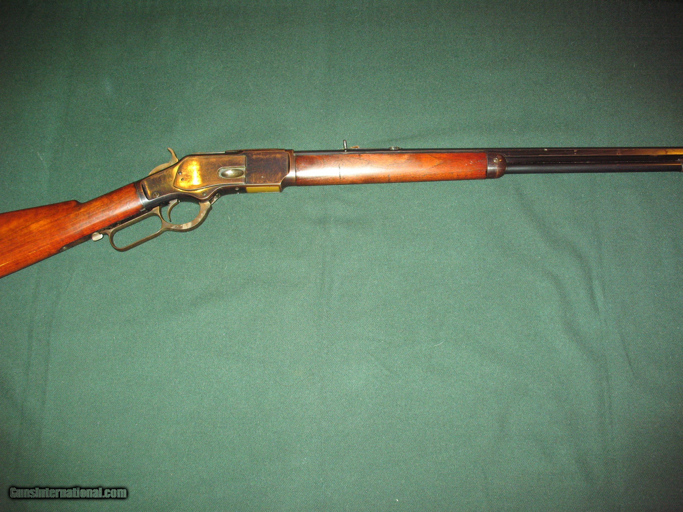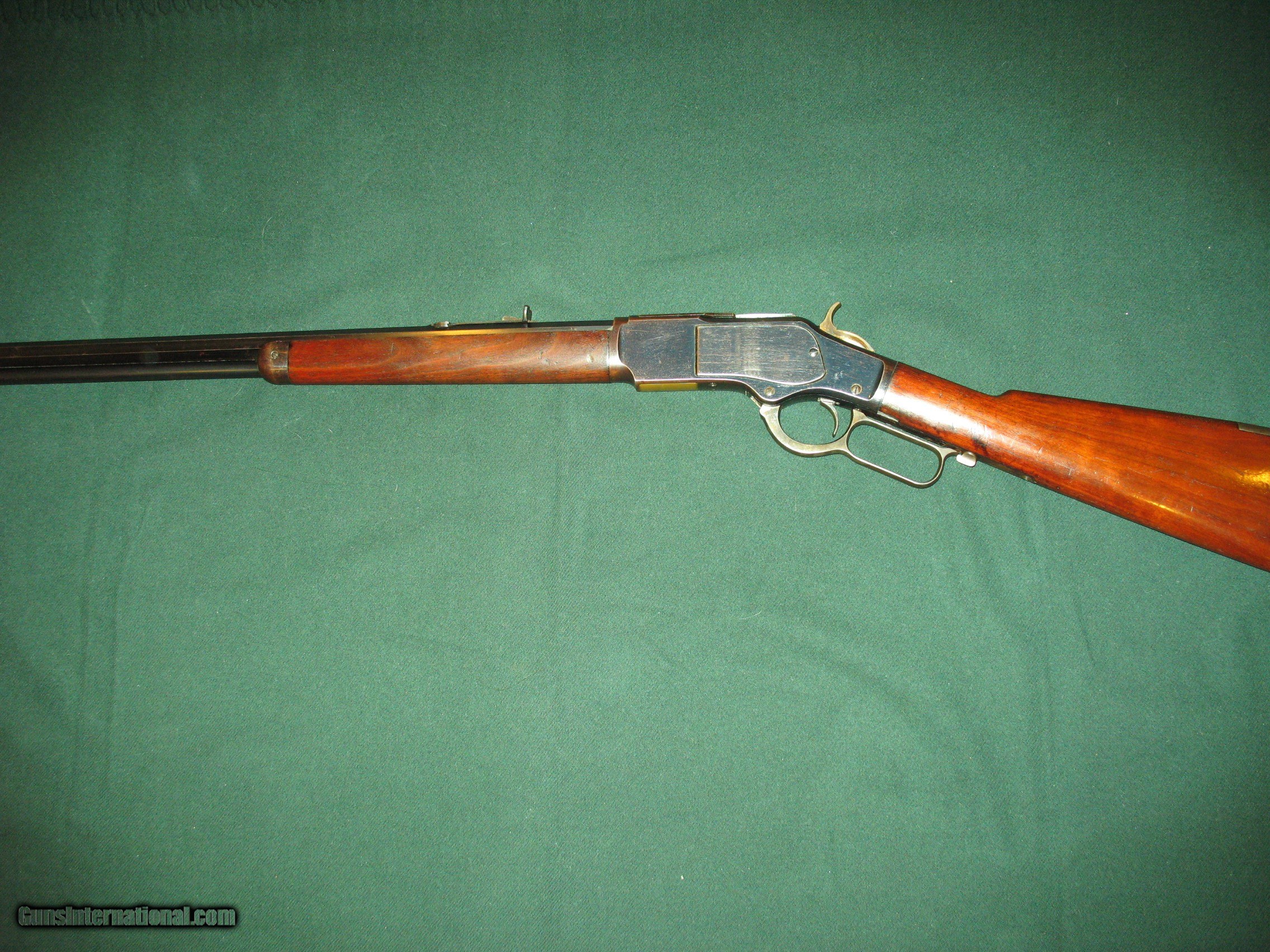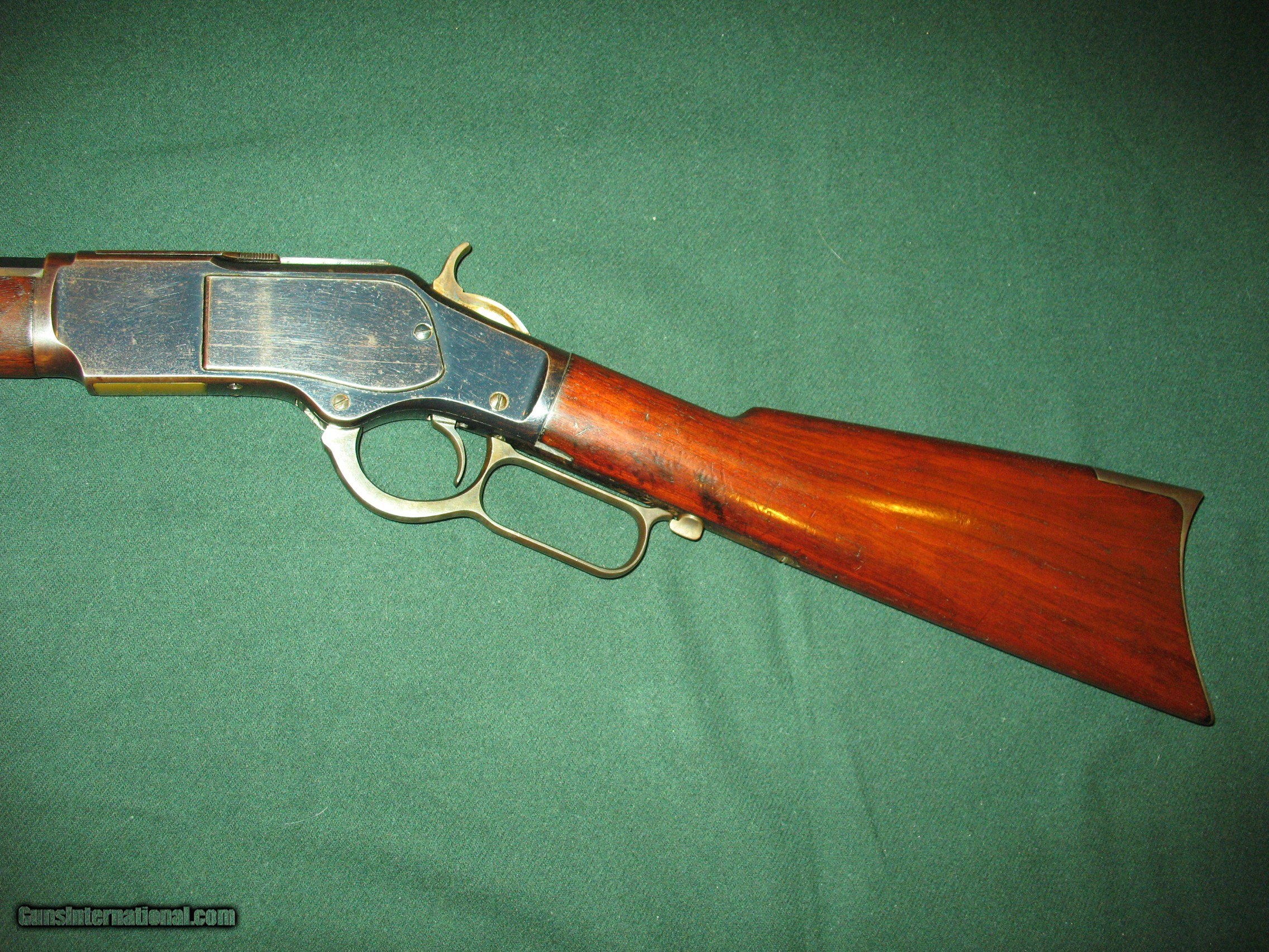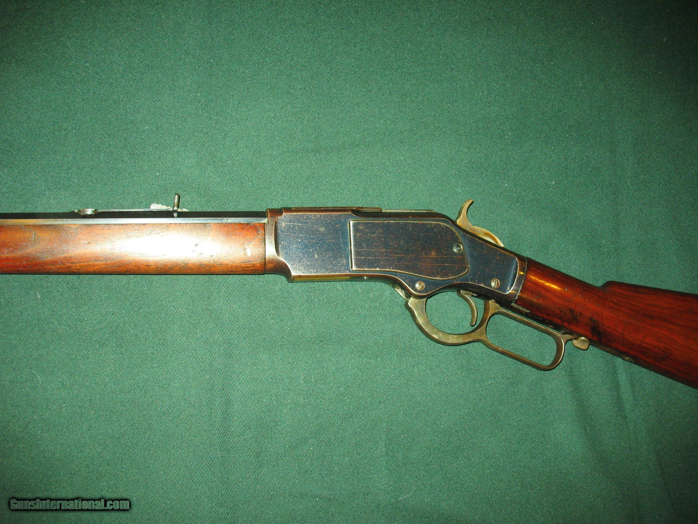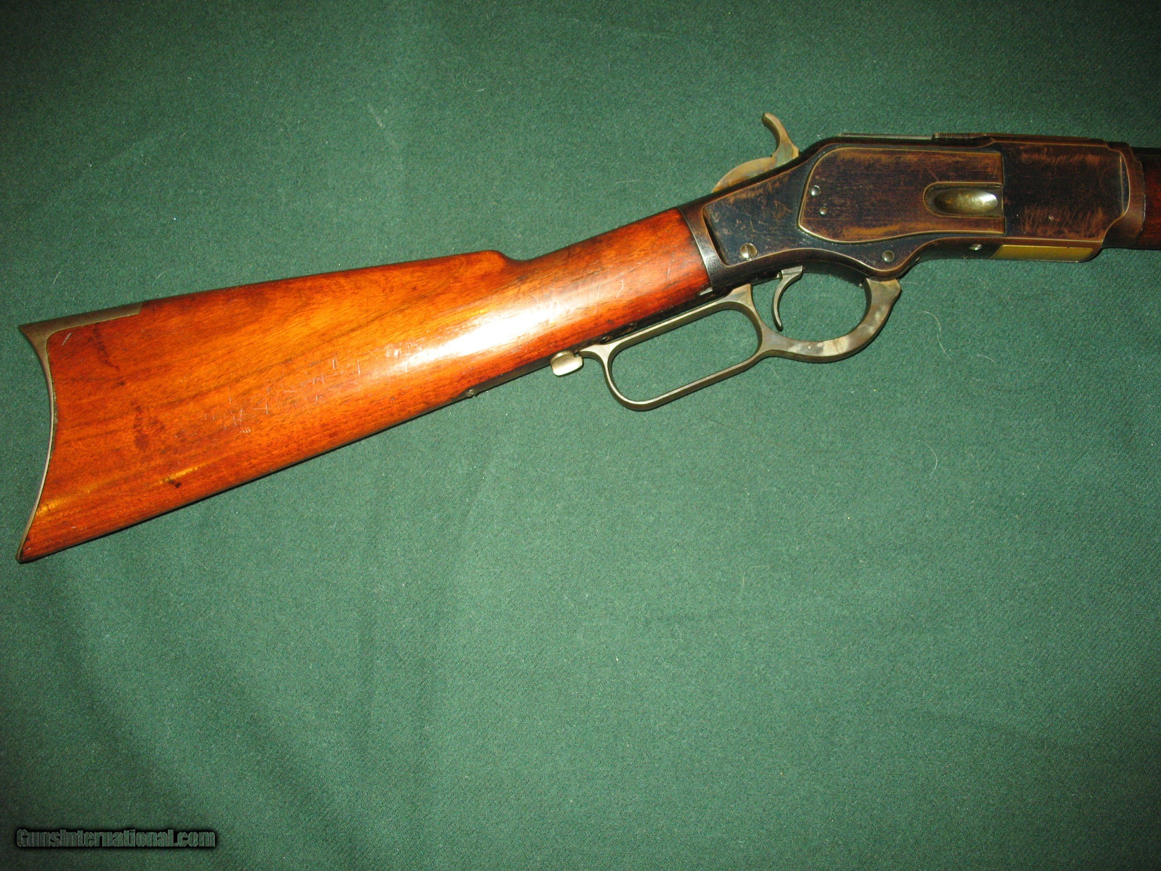 Description: Beautiful and collectible High Condition Winchester 1873 in 32-20. All original bluing on metal is 85-90% on barrel and receiver, The rifle will grade at 85-90% in your hands every day of the week. You can return it risk free if you disagree. Wood and metal are original in all respects. Bore is minty with great shine and rifling. Rifle is antique from 1888. Case coloring on hammer. Hammer, springs, lever and holder are tight and strong with no slop or issues indicating original condition. Excellent in all respects. Barrel is 24 inches and caliper is 32-20. You will look for a long time to find an 1873 in this condition. I have another listing on this site for a Winchester 1873 in 60% original condition. Please check it out. SOLD Antique: Yes |