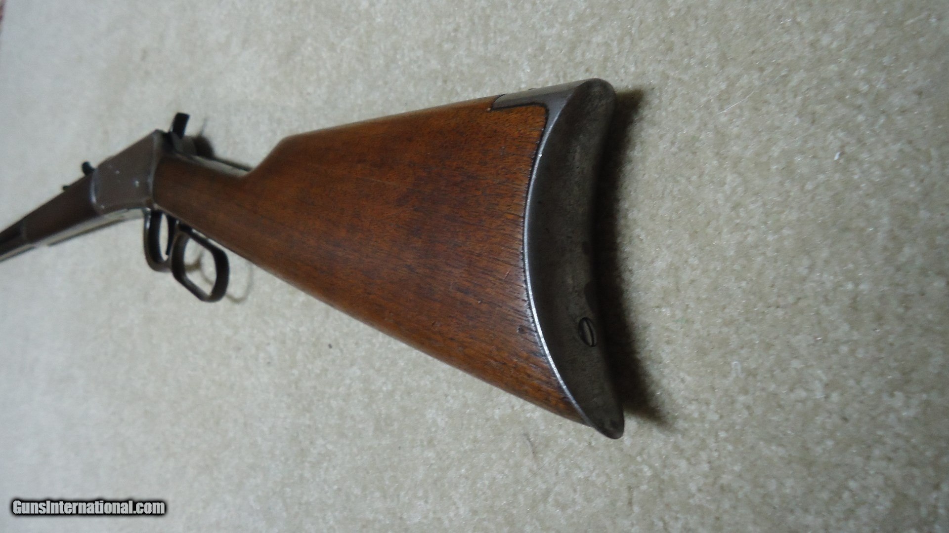 Description: SPECIAL ORDER ANTIQUE SERIAL NUMBER 1894 .38-55 HALF OCTAGON RIFLE WITH FULL MAGAZINE AND MINTY BORE! #89XXX, MADE 1897. This one comes with a Winchester factory letter verifying the features and showing a shipping date of August 9, 1900. The half octagon feature with a full magazine is actually TWO special order options because when the half octagon barrel was ordered it was automatically shipped with a half magazine unless specified for a full magazine. Fine aged barrel and magazine blue showing some thinning toward the forward half with some plum mixing more on the mag tube. Good case color on the upper part of the lever. Receiver shows some thin blue on the rear side portions and bolt with the balance brown, good blue on the loading gate, excellent wood showing only the lightest of handling and tight wood to metal fit, original buckhorn rear sight paired with a small Lyman blade/bead front sight. Amazingly bright, sharp, excellent bore! SOLD Antique: Yes Manufacturer: Winchester Model: 1894 SPECIAL ORDER RIFLE Serial Number: 89XXX Caliber Info: .38-55 Barrels: 26" 1/2 OCT |