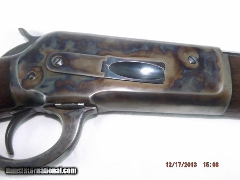S/N 105559 was manufactured in 1896. Chambered in 40-82. The receiver has 98% bright case colors thinning on the high edges and around the bottom. turnbull re-case hardened but used a bit since then, Definitely quality of an origjnal Winchester. All factory original blue finish , which has not been re-done, is consistent with colors so it looks amazing in near new condition. The 26" octogon barrel retains 90% of its original blue starting to turn plumb. The butt plate has silvered out. The wood appears to have been very , very lightly sanded but is still proud to the metal.and has the usual handling marks. Nice strong bore and perfect action. A georgous 1886 and antique so can ship right to your door. If you want a case colored 86 that looks almost new, with perfect markings, so well done that it looks just like it left the factory and offered at a price that would make this both a show piece and a great shooter.