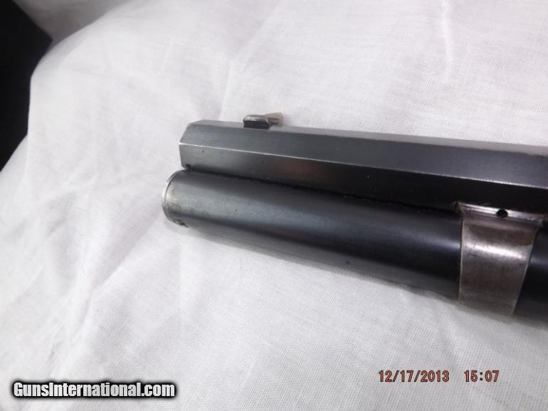 Description: S/N 105559 was manufactured in 1896. Chambered in 40-82. The receiver has 98% bright case colors thinning on the high edges and around the bottom. turnbull re-case hardened but used a bit since then, Definitely quality of an origjnal Winchester. All factory original blue finish , which has not been re-done, is consistent with colors so it looks amazing in near new condition. The 26" octogon barrel retains 90% of its original blue starting to turn plumb. The butt plate has silvered out. The wood appears to have been very , very lightly sanded but is still proud to the metal.and has the usual handling marks. Nice strong bore and perfect action. A georgous 1886 and antique so can ship right to your door. If you want a case colored 86 that looks almost new, with perfect markings, so well done that it looks just like it left the factory and offered at a price that would make this both a show piece and a great shooter. SALE PENDING SOLD Antique: Yes Manufacturer: Winchester Model: 1886 Serial Number: 105559 Caliber Info: 40-82 Condition: Fine Barrels: 26 |