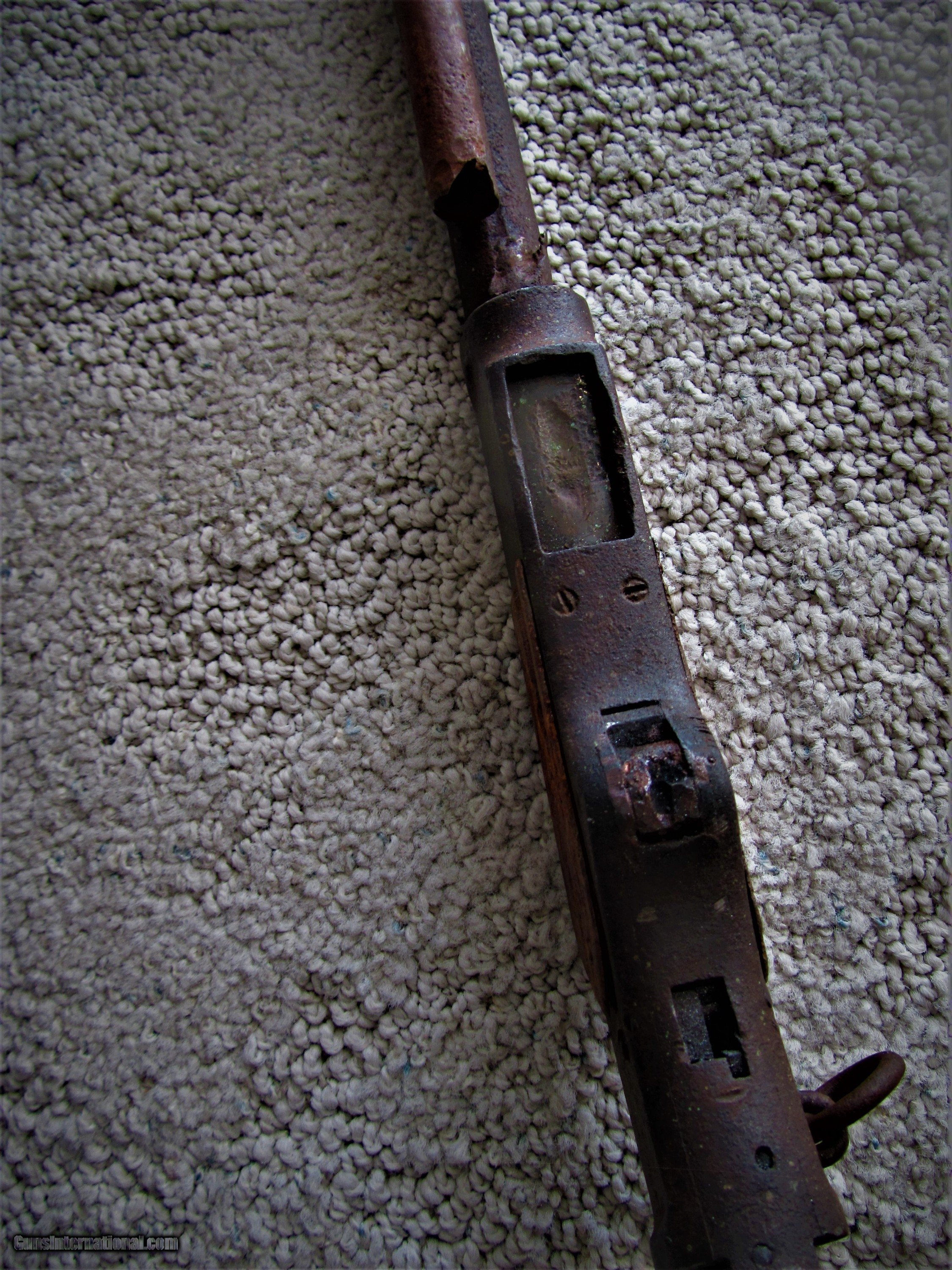 Description: I doubt many will ever see one of these historic Western battle guns...I found this over 50 yrs.back while Mt. Hiking-Bushwhacking in the area of Tombstone and to the New Mexican border in the Peloncillo Mts-Skeleton Canyon. You can read some of the history of this area..Apache/US Cavalry/Clanton Fueds w/Federales etc..The rust color difference is apparently due to diff. in Metal...Anyway, i'll relate how I came upon this rusty relic to the buyer. It is missing parts that are obvious..the cocking lever obviously was repaired by a Blacksmith using an old worn Horseshoe..If one looks closely some of the barrel lettering remains barely visible. The action is rusted shut after approx.140yrs. unsheltered. The wood is mostly gone as I only found a small portion neaby where some Human bones were found..mostly scattered and left undisturbed.. Obviously this is a 44cal.CARBINE & NOT a Rifle. This ships to whereever you live in the ConUSA-$45.00-AK/HI a bit more. It is sold AS-IS for obvious reasons. All questions answered.--I have no more photos to offer. I am 8o+ yrs. old and have displayed this in my Library for many decades. Would make an excellent Gift-or your own Bucket list. SOLD Antique: Yes |