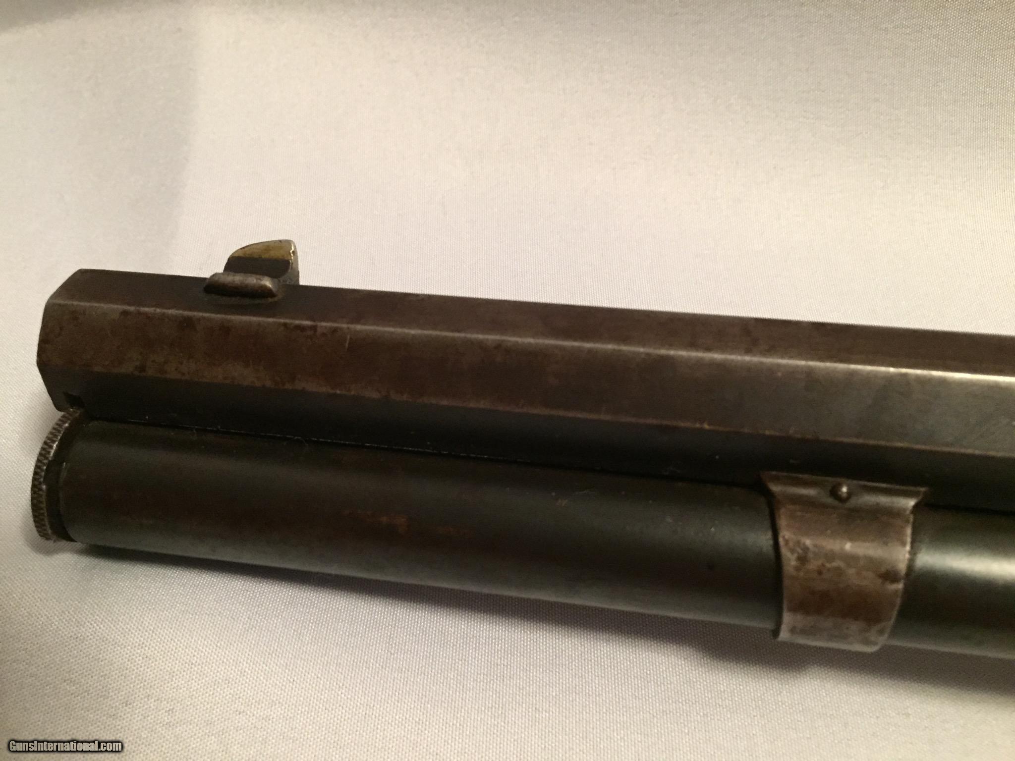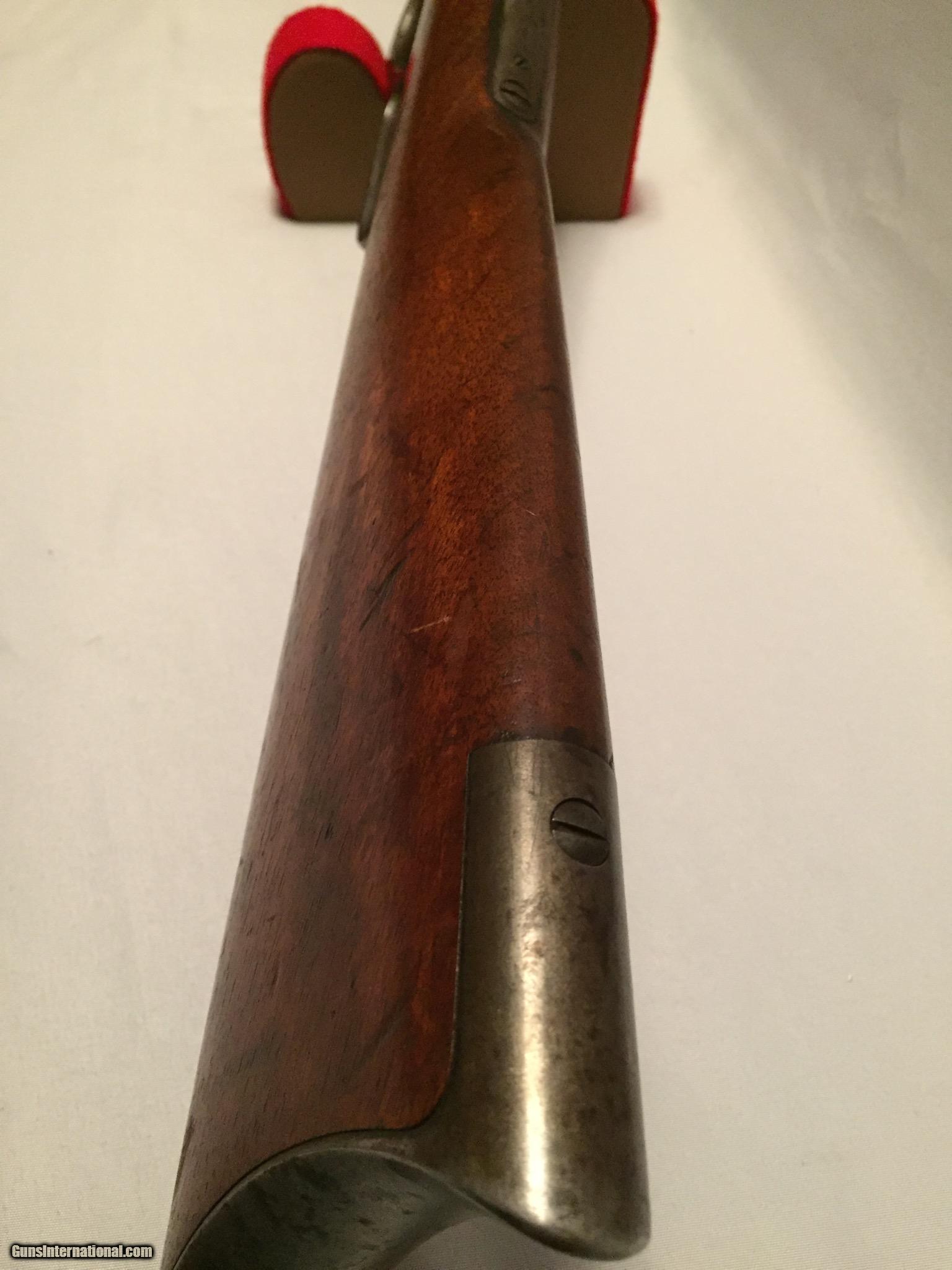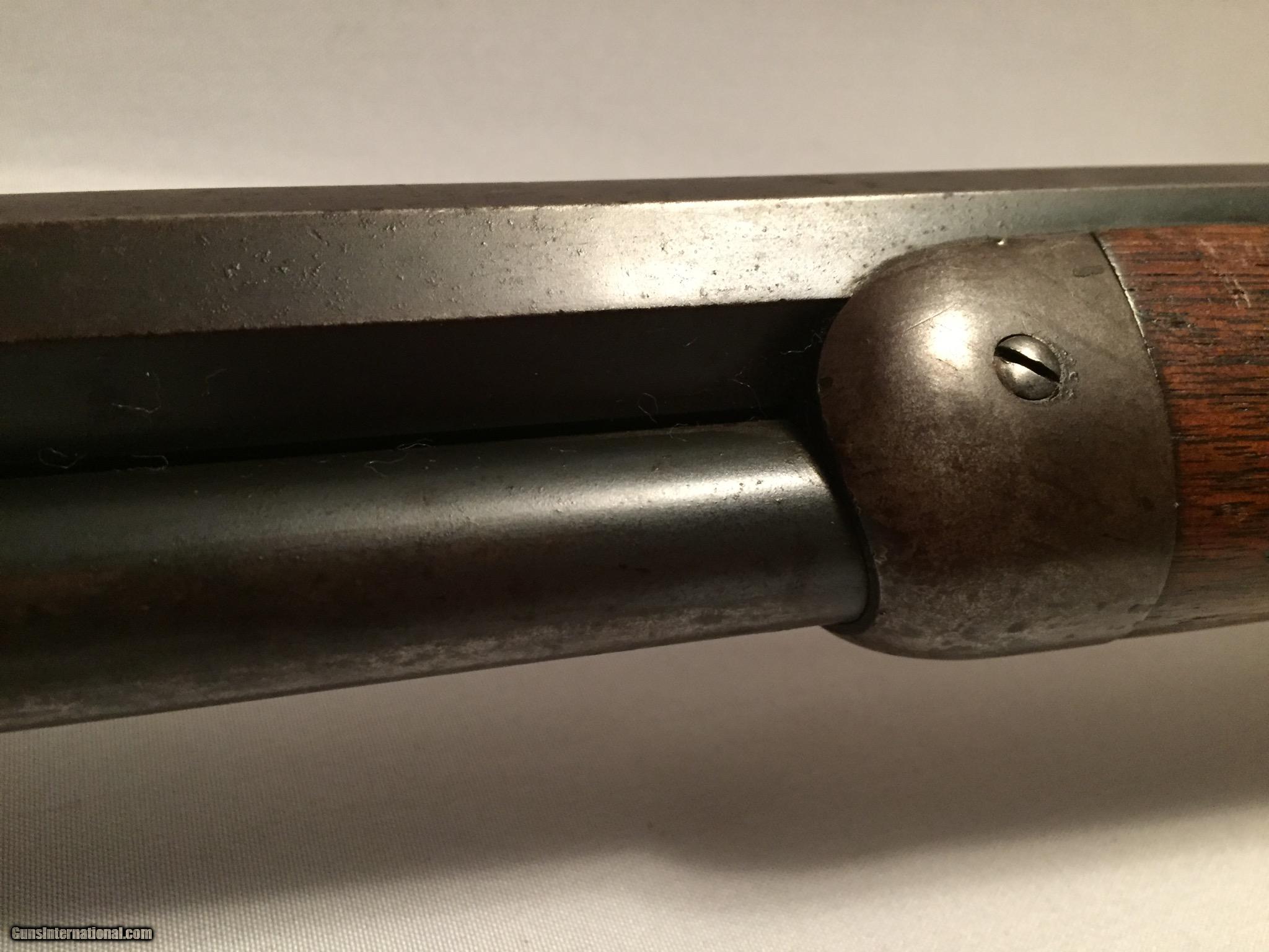 Description: Mod 1873 22 short. This is just a nice honest gun with all the honest wear that comes with a 118 year old rifle and these 22's got used pretty hard. Made in 1898 with only about 19,000 produced. The magazine tube has all the internal parts intact. There is a small repair on right hand side at the rist (see photo's) Antique - No FFL required SOLD Antique: Yes Serial Number: 513450B |