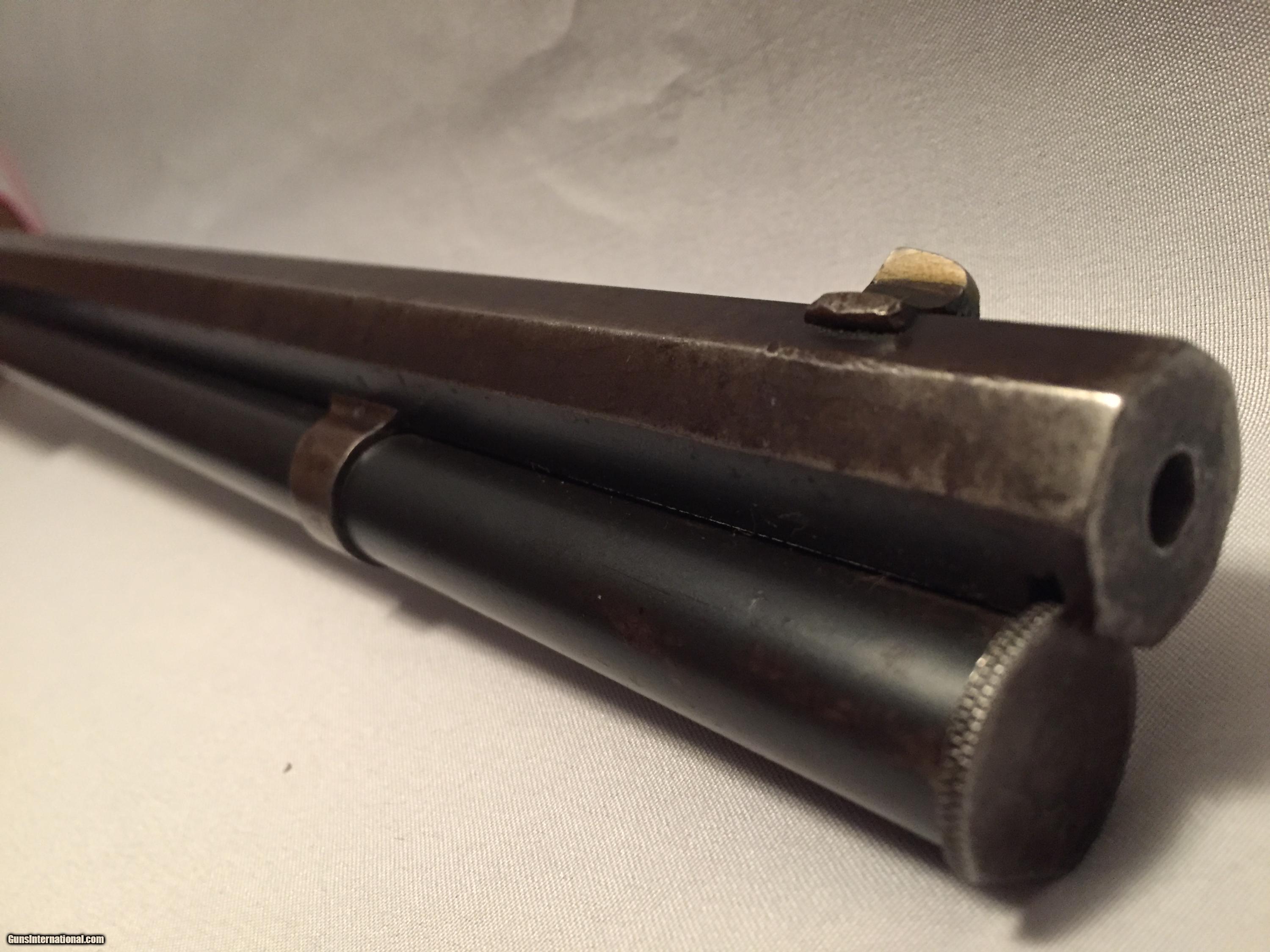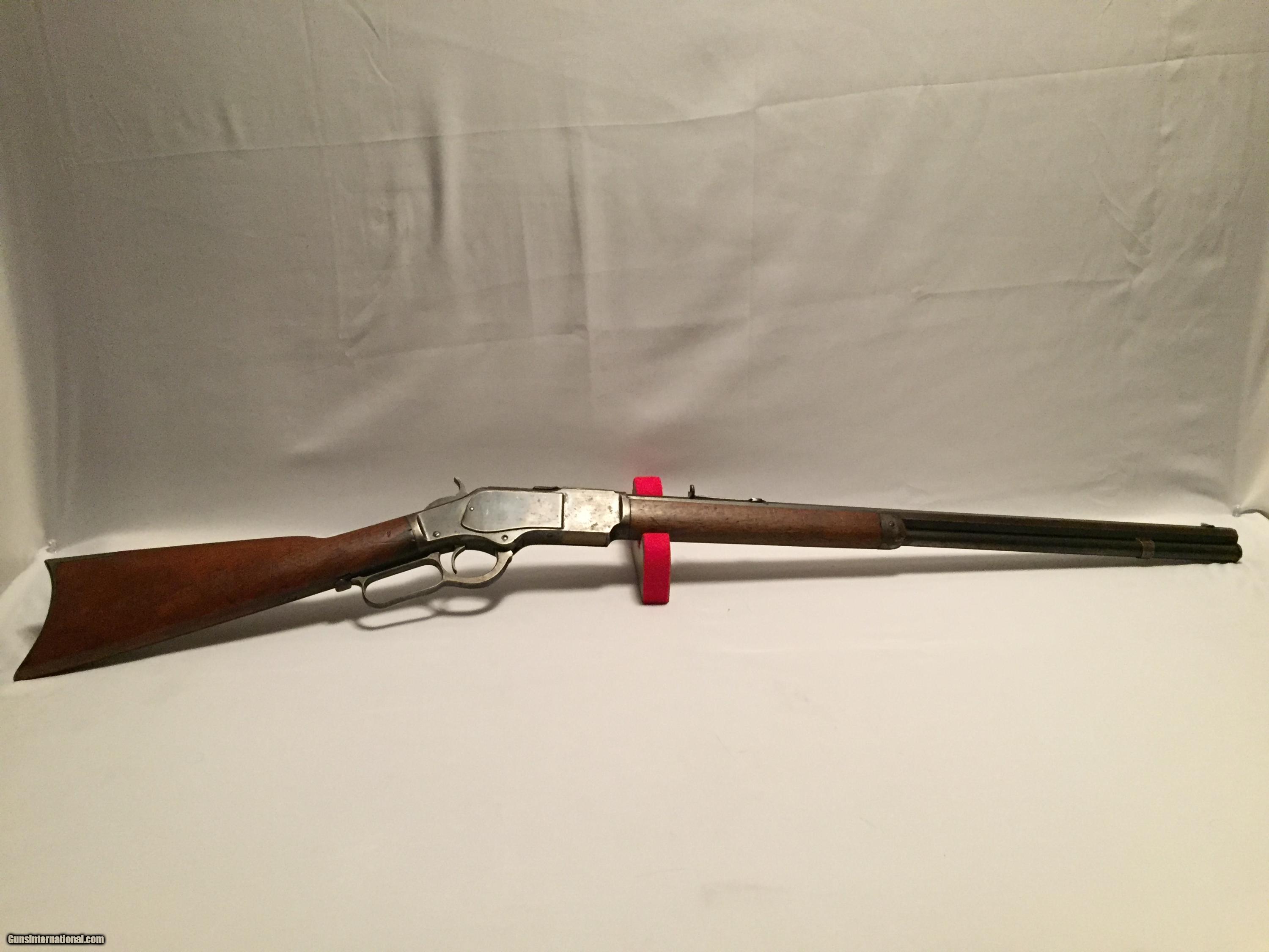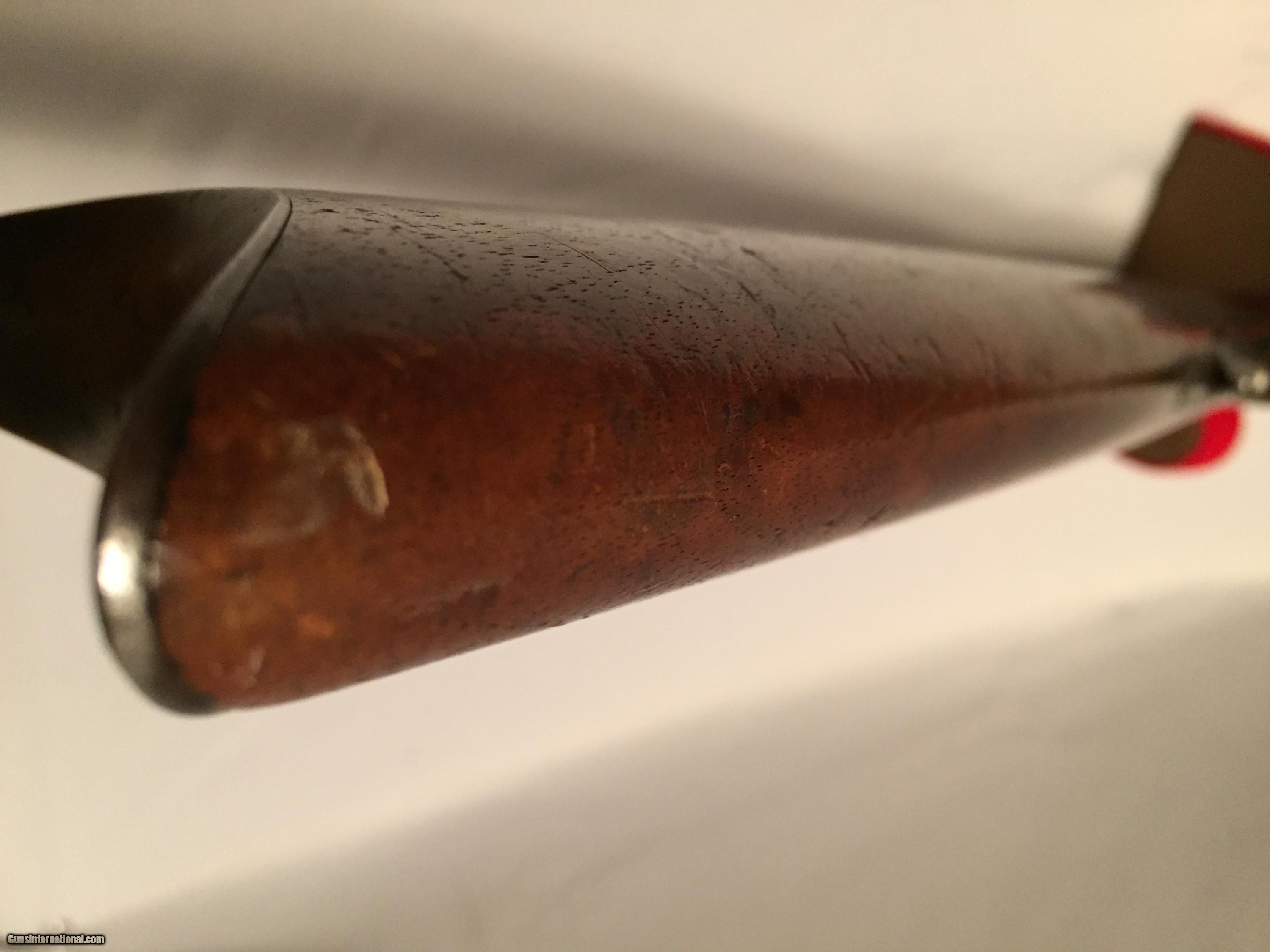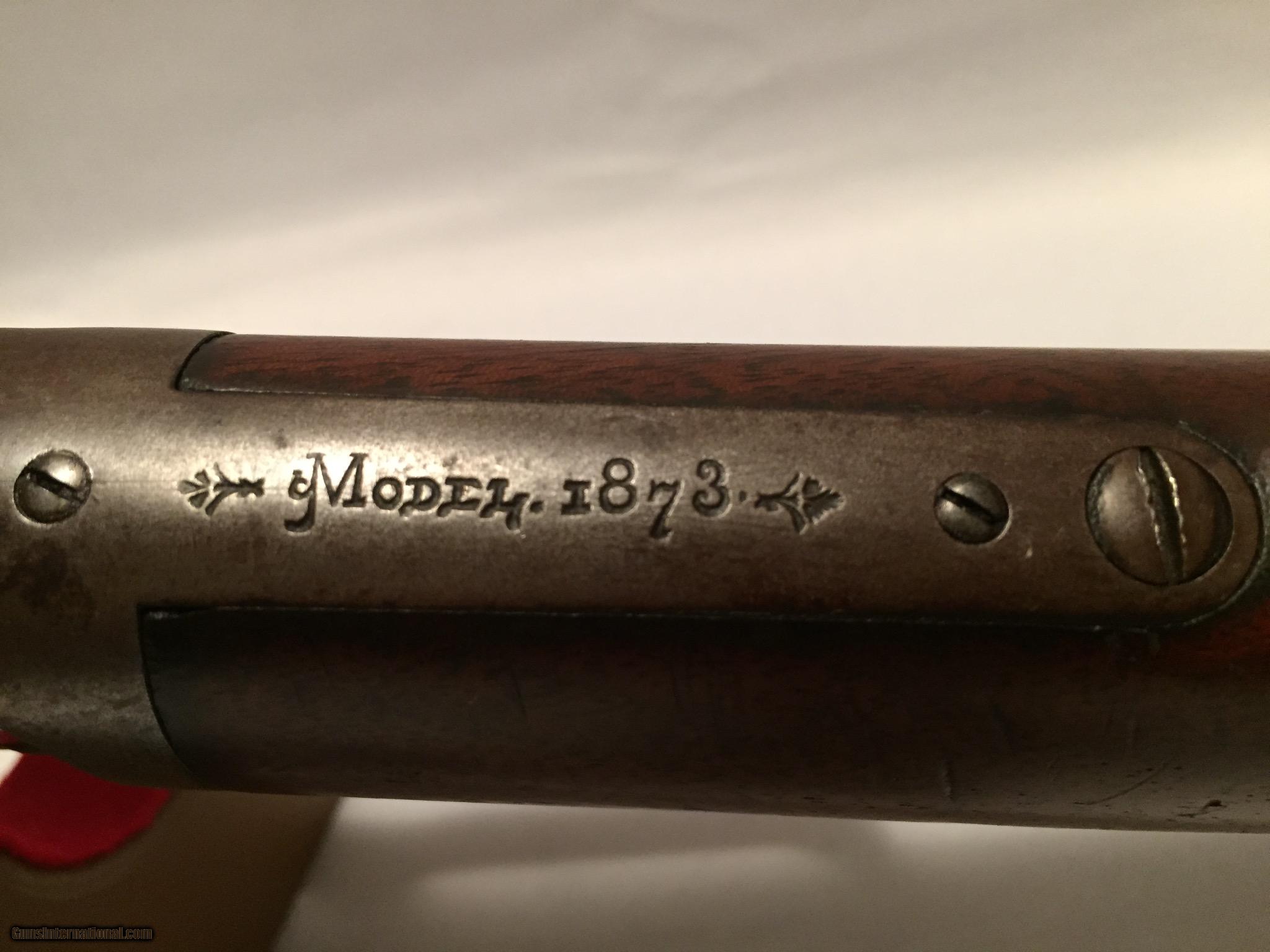 Description: Mod 1873 22 short. This is just a nice honest gun with all the honest wear that comes with a 118 year old rifle and these 22's got used pretty hard. Made in 1898 with only about 19,000 produced. The magazine tube has all the internal parts intact. There is a small repair on right hand side at the rist (see photo's) Antique - No FFL required SOLD Antique: Yes Serial Number: 513450B |