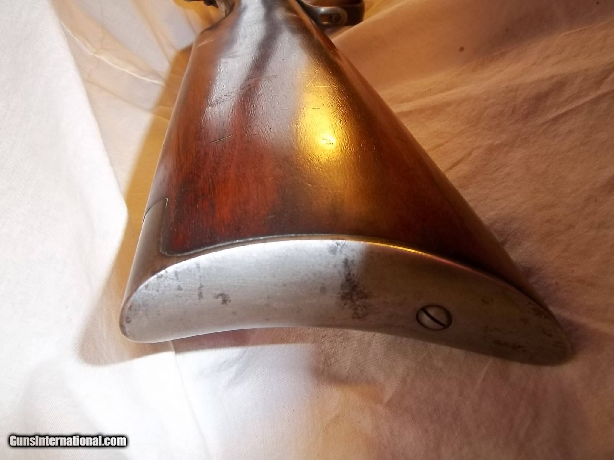 Description: Wincheaster 1895,cal.405,custom ladder rear sight,date of mfg 1927,24" brl,no cracks in butt stock or forarm,85-90 % bluing,bore is clean and shinny,no pitting in bore,Payment with postal money order or add 3% for CC, shipping 60.00,We are a full time gun store and reserve the right to end an early if it sells in the store SOLD Manufacturer: Winchester Model: 1895 Serial Number: 419607 Caliber Info: 405 Bore: clean |