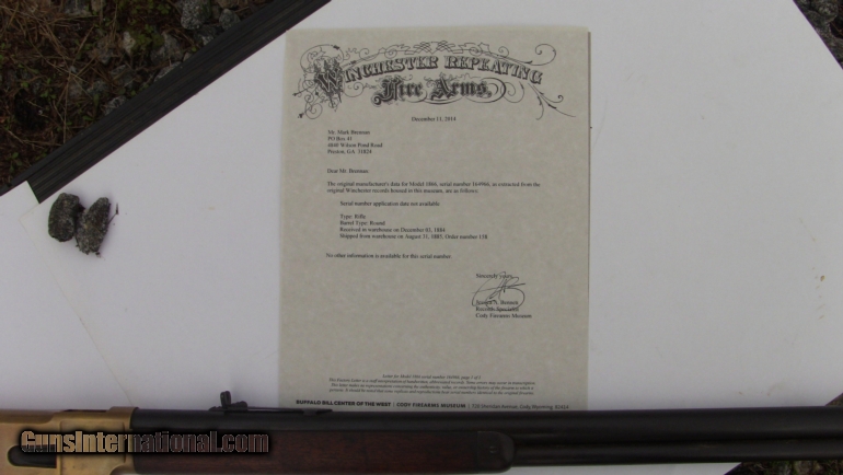 Description: Found wrapped in swaddling old linen doused in oil raw linseed oil. Action tighter smoother than new Winchester . Rifling sharp , see pic with slugged 44 lead. Not disassembled by me in any way. Oil linseed oil inside for sure. No broken parts , cracks or operating defects. Cosmetic blems obvious from pictures. This fine weapon stashed for a long, long time. 3 DAY RETURN IN EXACTLY THE SAME CONDITION IN EXACTLY THE SAME SHIPPING CONTAINER. Certified check within 7 days . 423 240 0419 Text SOLD Antique: Yes Manufacturer: Winchester Model: 1866 sportsman Serial Number: 164966 Caliber Info: 44 Henry Bore: 44 black powder Condition: above average Metal Condition: dark plum Wood Condition: above average Bore Condition: sharp Barrel Type: round Action: tight , smooth Triggers: crisp Stock: untouched walnut Fore End: steel Butt Pad: steel Finish: original as found Sights: open buckhorn Manufacture Date: Dec.3, 1884 Extras: Cody museum lttr Case: yellow bronze |