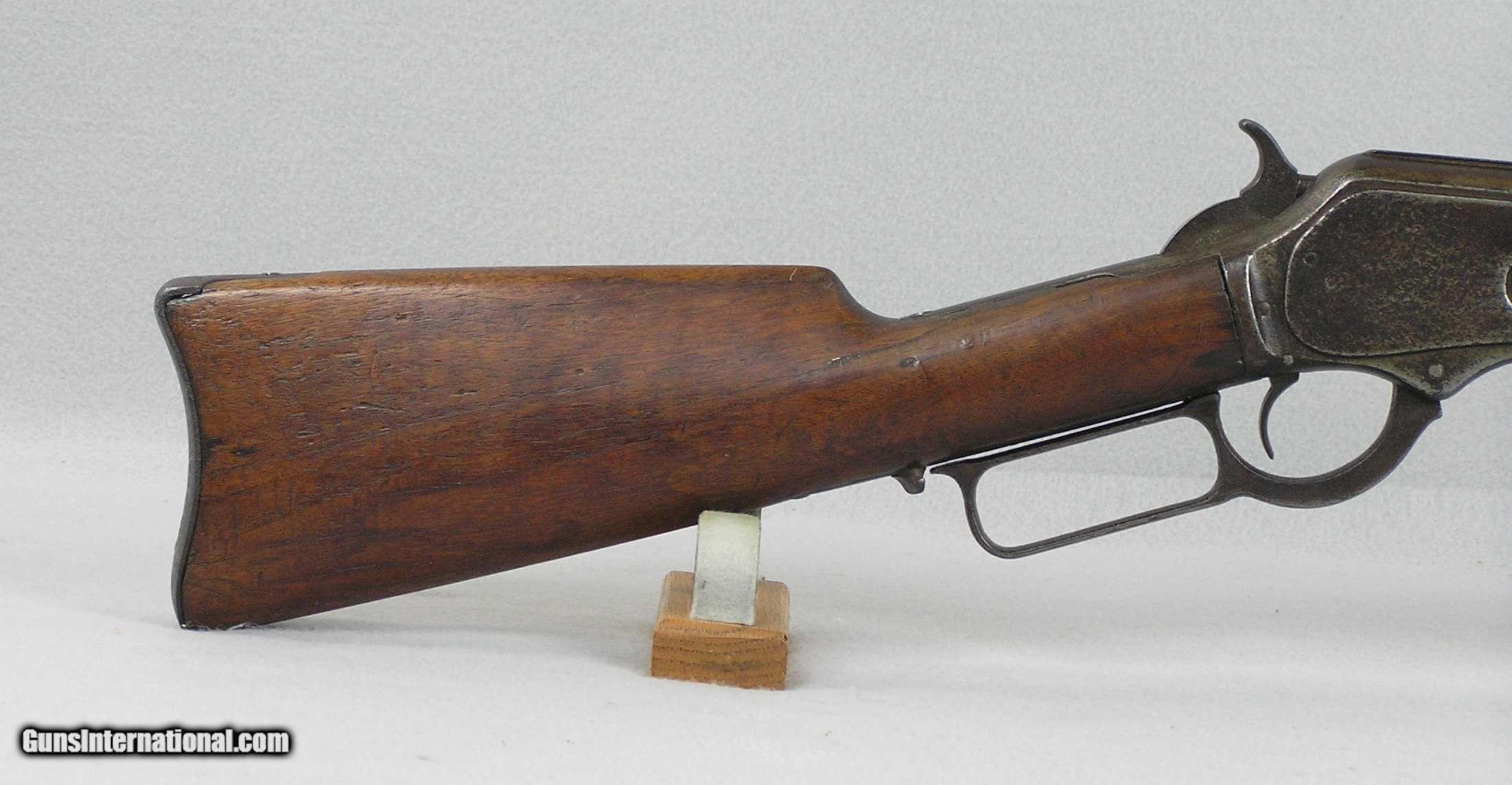 Description: This is a Model 1876 3rd Model saddle ring carbine with serial number 62194 and made in 1887. The receiver retains 40% fading blue, the barrel 55% blue. The mechanical is tight and the bore is good but does show remains of black powder corrosion. The wood is solid and there is an old solid repaired crack near the rear top tang. I would consider trades for pre 1899 ANTIQUE PISTOLS and rifles on any of my items.. WHAT DO YOU HAVE TO TRADE? Ask about our 30-90 day lay-away program. We accept Bank Check, Money order, Personal checks or wire transfer. SOLD Antique: Yes Manufacturer: Winchester Model: 1876 3rd Model Saddle Ring Carbine Serial Number: 62194 Caliber Info: 45-60 |