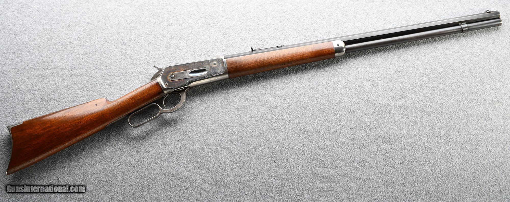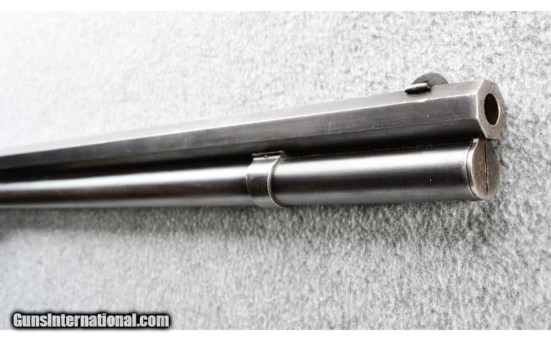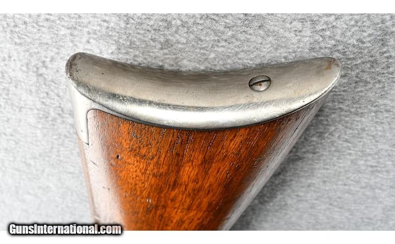 Description: Very good condition with case-hardened receiver (about 10% remaining) functions good with some handling marks and use wear, good bore with strong rifling. Manufactured 1898 .38-56 WCF SOLD Antique: Yes Chambers: .38-56 Winchester in a nine round tubular magazine Metal Condition: Very good Wood Condition: Very good Bore Condition: Very good Barrels: 26" Octagonal Stock Dimensions: 13" LOP Fore End: Wood Butt Pad: Metal crescent buttplate Weight: 8lbs Sights: "Rear buck horn, front blade Item Location: Grand Junction, CO |