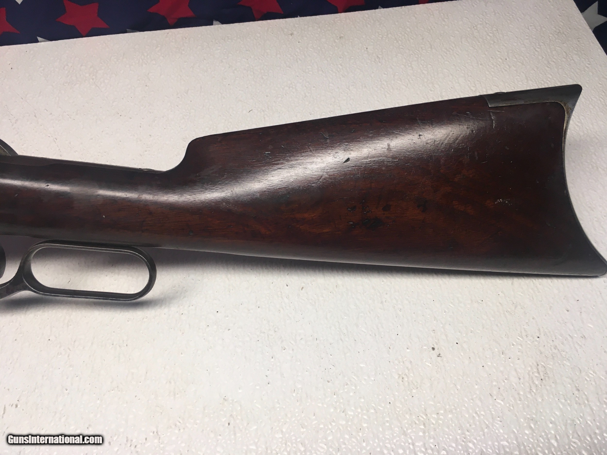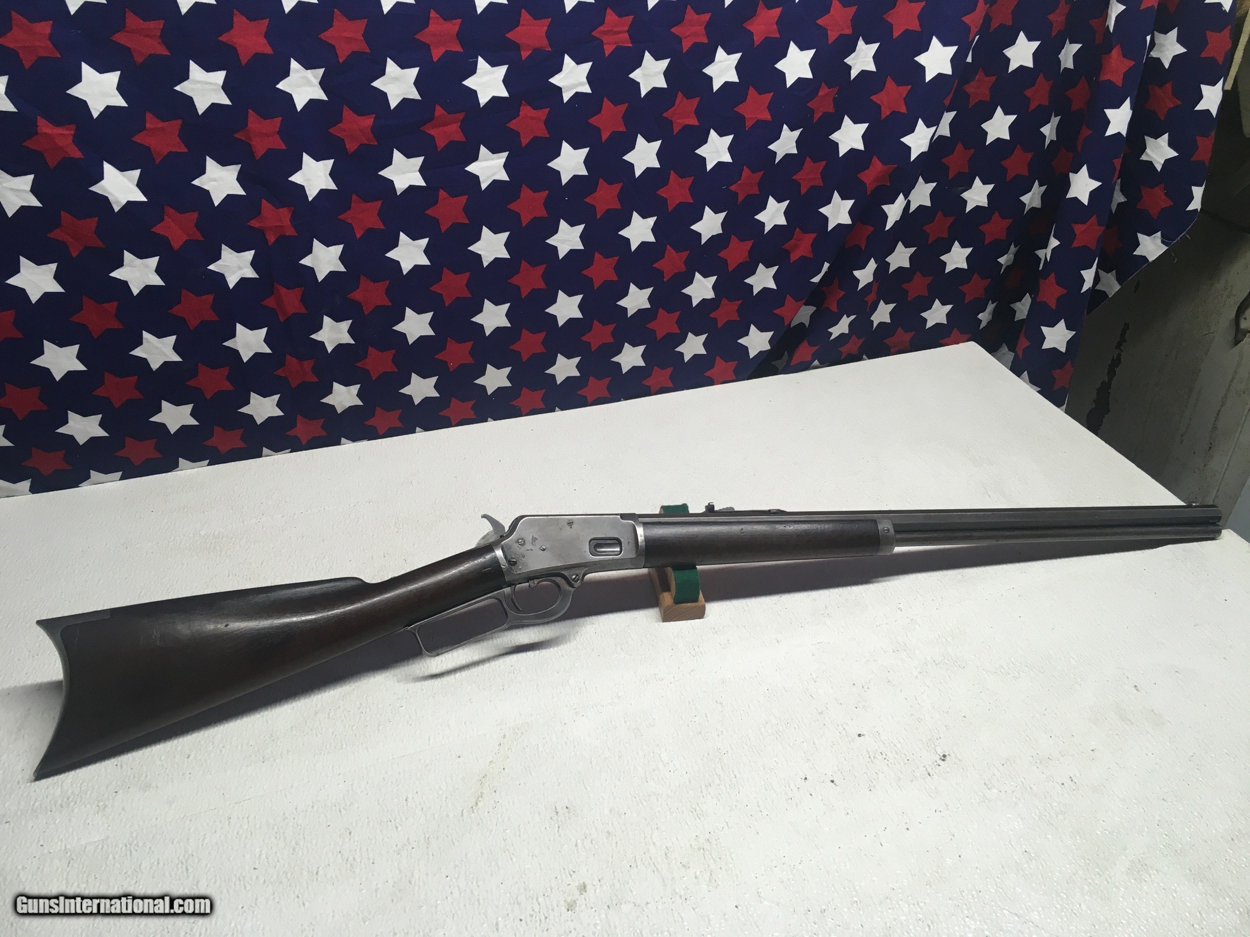 Description: Listing a old favorite of mine that I acquired a good number of years ago from the Pacific N.West. Winchester 1886 octagon barreled rifle in the big dog 45/90 caliber.sports a 26" standard barrel and I believe original open rear sights. As pictures show she has aged gracefully during her 131 year life. I've shot it a good number of times and whacked several Buffalo with her as well, we've raised them for our freezer for over twenty years. So I can say she's a genuine Buffalo rifle . Bores a little dark but has decent rifling and will spin a bullet just fine. I've not lettered this rifle but ran into the owner of a possible litter mate to this old gal that linked his to the Johnson County Range War up in Wyoming in mid 1890's, his is one number off of sn 58013. Claims his was confiscated by Federal Troops when they were called into retain law and order. Who knows they all have some stories I'm sure. I ship only to a FFL or your C&R even if it's an antique, Post Office rules. I accept postal money orders or a cashiers check and ship priority insured with a tracking number. any questions please call or text 920-590-3400 have a fine day SOLD Antique: Yes Rifle Caliber: .45-90 Winchester Manufacturer: Winchester Model: 1886 Serial Number: 58013 Condition: Aged Metal Condition: Aged Wood Condition: Original Bore Condition: Fine Barrels: octagon Barrel Type: octagon Action: lever Triggers: single Stock: rifle type Butt Pad: Crescent Sights: open rear Manufacture Date: 1891 |