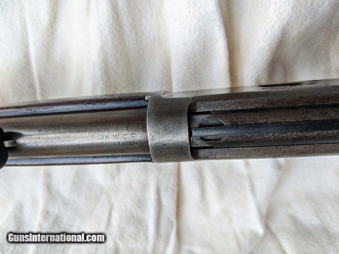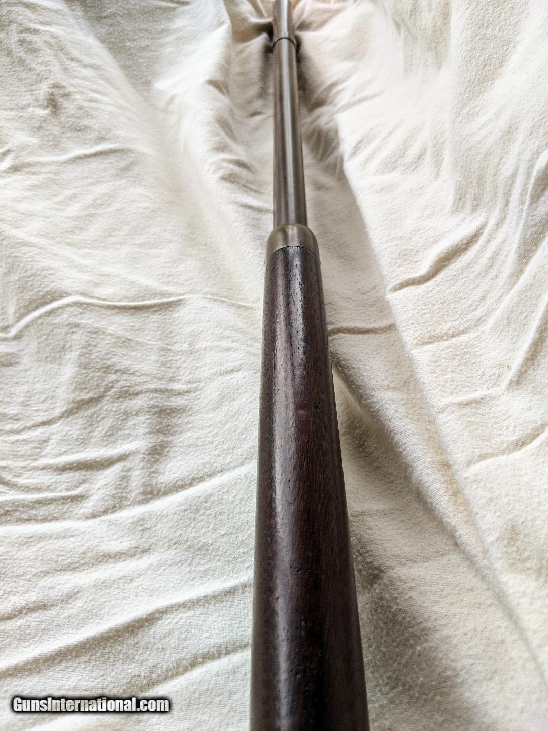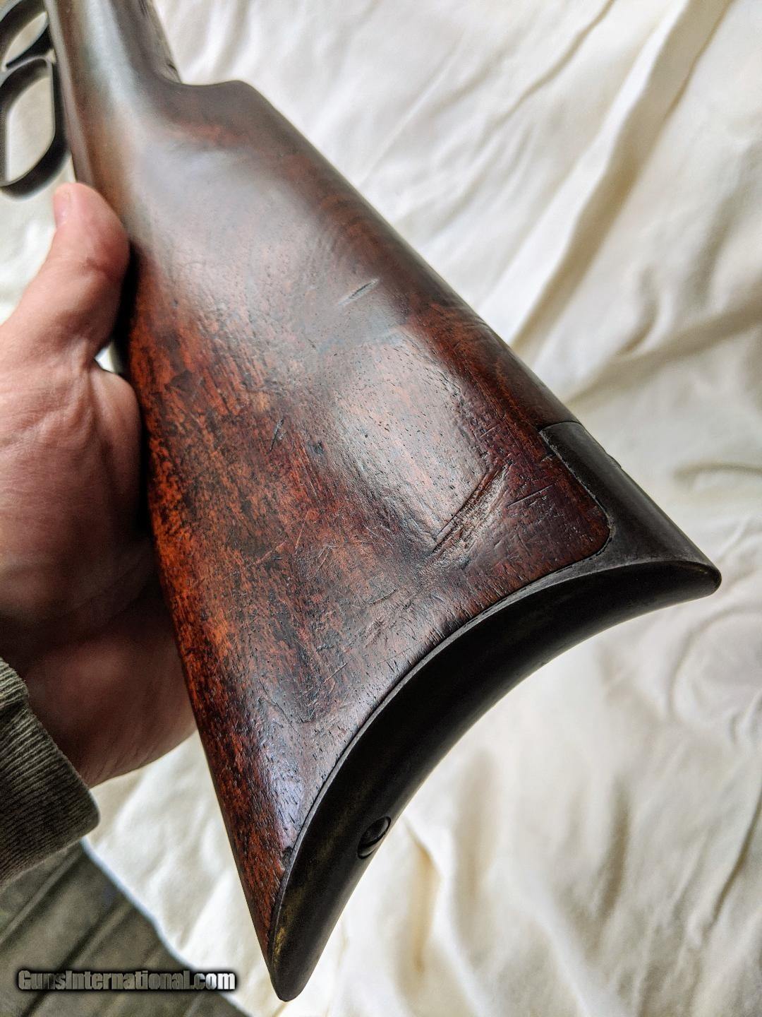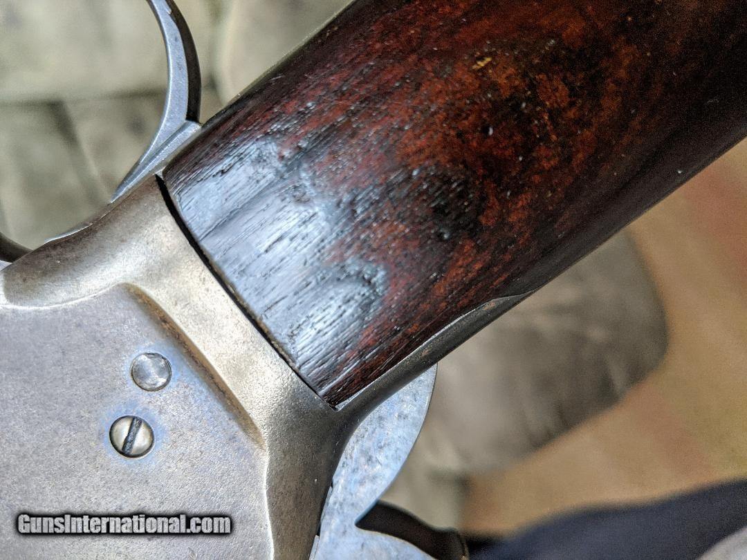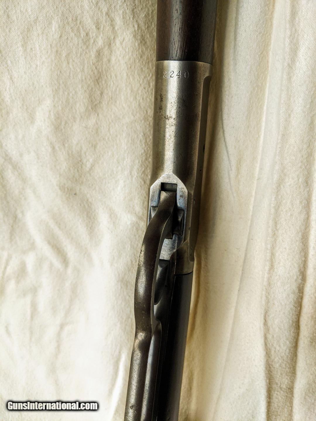 Description: 1892 Winchester Sporting Rifle in caliber 38 W.C.F. with optional front sight. 24" round barrel in good overall shape. Bore shows strong rifling with minor pitting. Action cylces properly and has no mechanical issues. I beleive some finish has been added properly to the stocks many years ago. Overall a fine example of a WInchester in probably the second month of production in 1892 of this model. additional $50 shipping SOLD Antique: Yes Manufacturer: winchester Model: 1892 Serial Number: 2240 Caliber Info: 38 W.C.F/ 38-40 Condition: good Metal Condition: good Wood Condition: good Bore Condition: good |