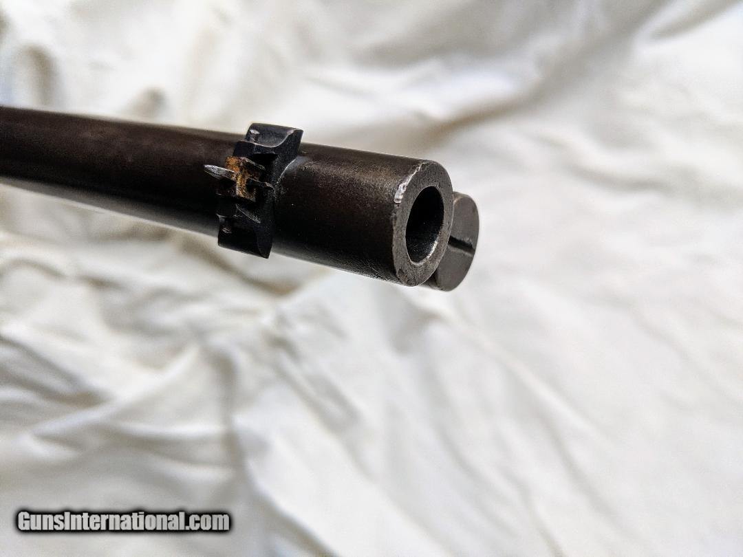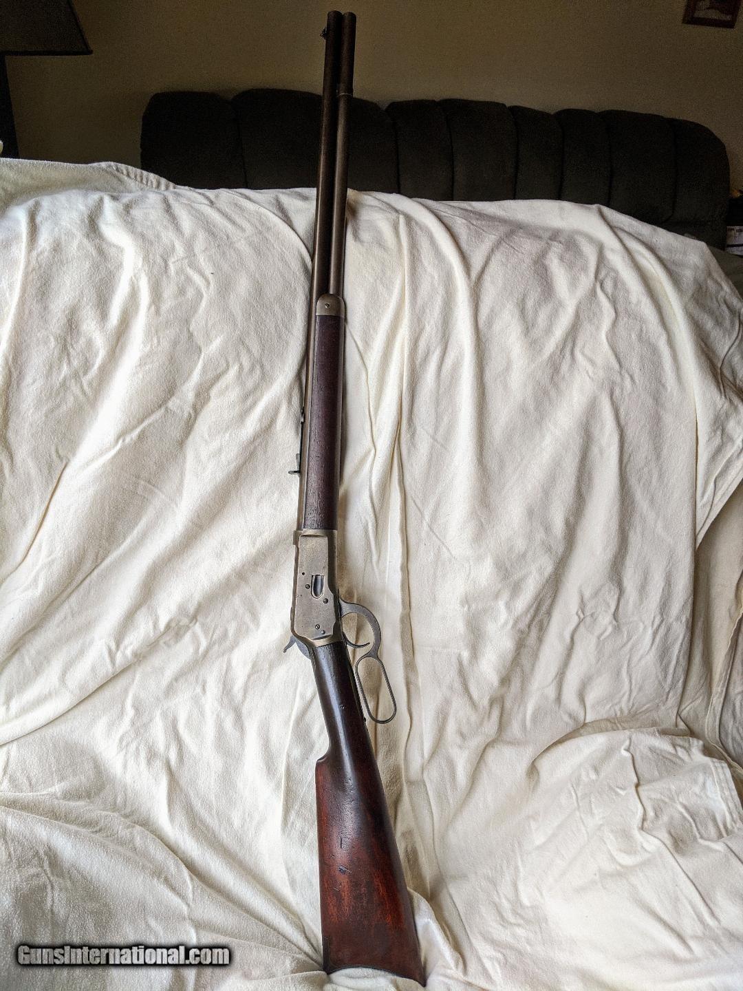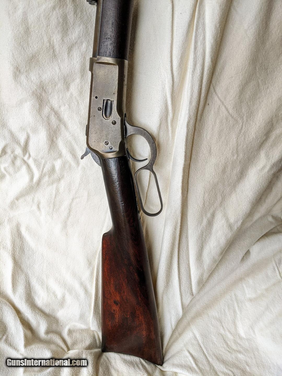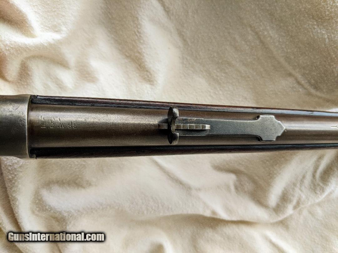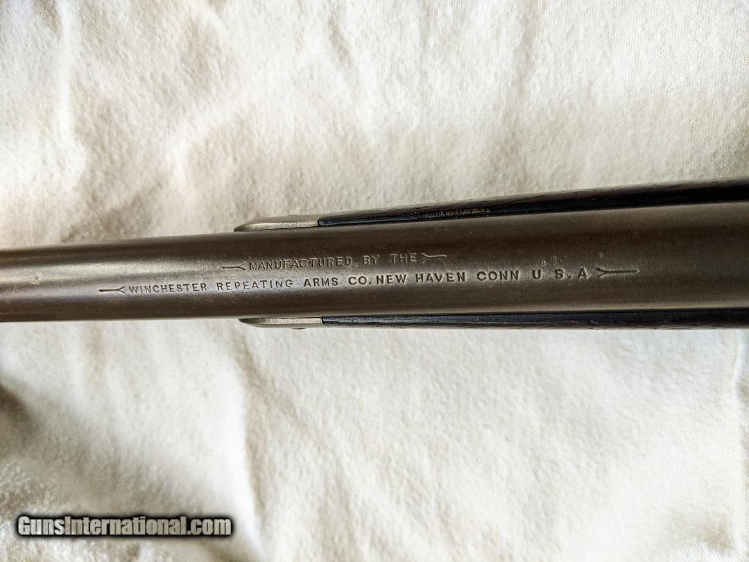 Description: 1892 Winchester Sporting Rifle in caliber 38 W.C.F. with optional front sight. 24" round barrel in good overall shape. Bore shows strong rifling with minor pitting. Action cylces properly and has no mechanical issues. I beleive some finish has been added properly to the stocks many years ago. Overall a fine example of a WInchester in probably the second month of production in 1892 of this model. additional $50 shipping SOLD Antique: Yes Manufacturer: winchester Model: 1892 Serial Number: 2240 Caliber Info: 38 W.C.F/ 38-40 Condition: good Metal Condition: good Wood Condition: good Bore Condition: good |