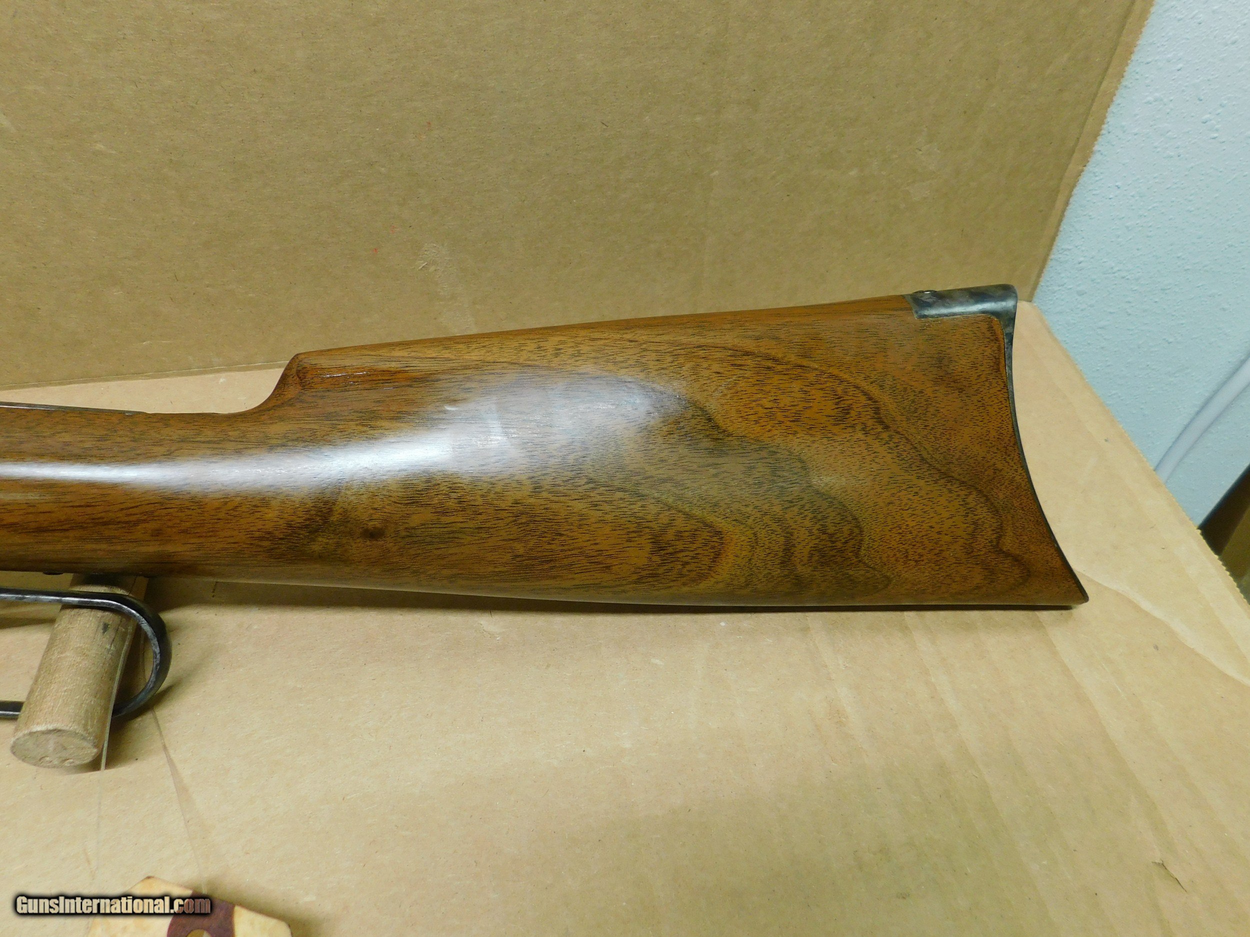 Description: This is a refurbished Winchester Model 1894 in a 32-40. It is a 7+1 shot with a 26" octagon barrel, the barrel has some bluing with a brown patina. The stock is all new wood The bore is dark but has very good rifling, it is a good shooting rifle Manufactured in 1897 Serial number 108619 This is a beautiful rifle with a great deal of charater. A great find to add to your collection. SOLD Manufacturer: Winchester Model: 1894 Serial Number: 108619 Caliber Info: 32-40 Bore: fair Condition: refurbished Metal Condition: good Wood Condition: New Bore Condition: dark with good rifling Barrels: 26 Barrel Type: Octagon Action: Lever Triggers: Standard Stock: Wood Butt Pad: Steel Finish: Blue Sights: Open Manufacture Date: 1894 |