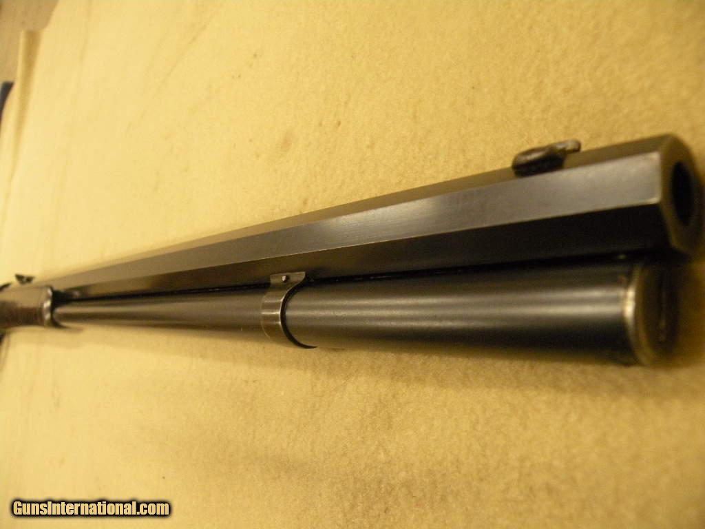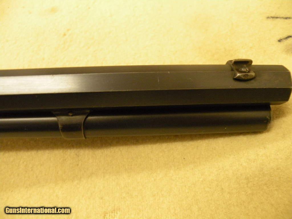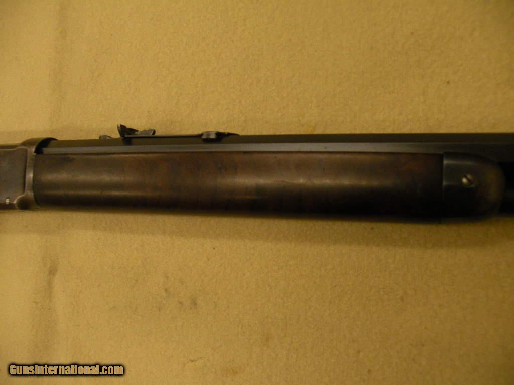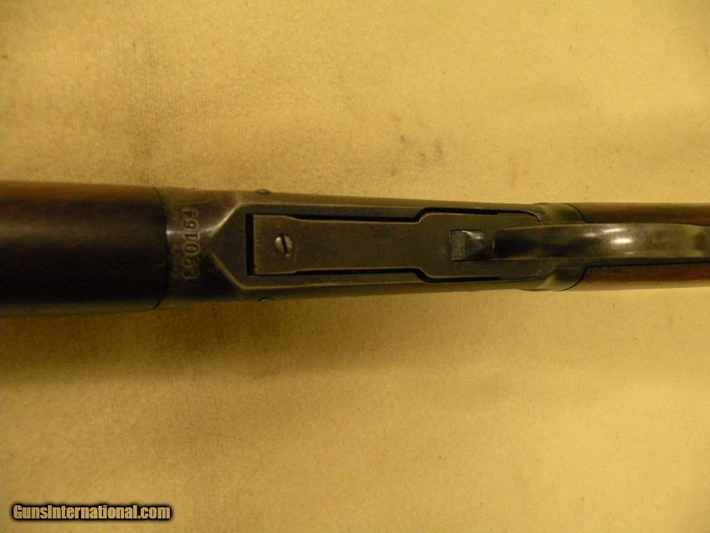 Description: 26 INCH BARRELED 38/55 WITH MIRROR BORE OCTAGON SOLID FOREND AND BUTTSTOCK NO CRACKS SPLITS RECEIVER SPLOTCHY PATINA BARREL AND MAGAZINE TUBE ARE IN THE 85% RANGE GOOD ORIGINAL FINISH ON THE WOOD CORRECT REAR SIGHT W/ ELEVATOR MARBLES TANG SIGHT VERY HONEST UNMOLESTED 1894 WITH NICKLE SWISS BUTTPLATE MFG 1921 SOLD Curio/Relic: Yes Serial Number: 890164 |