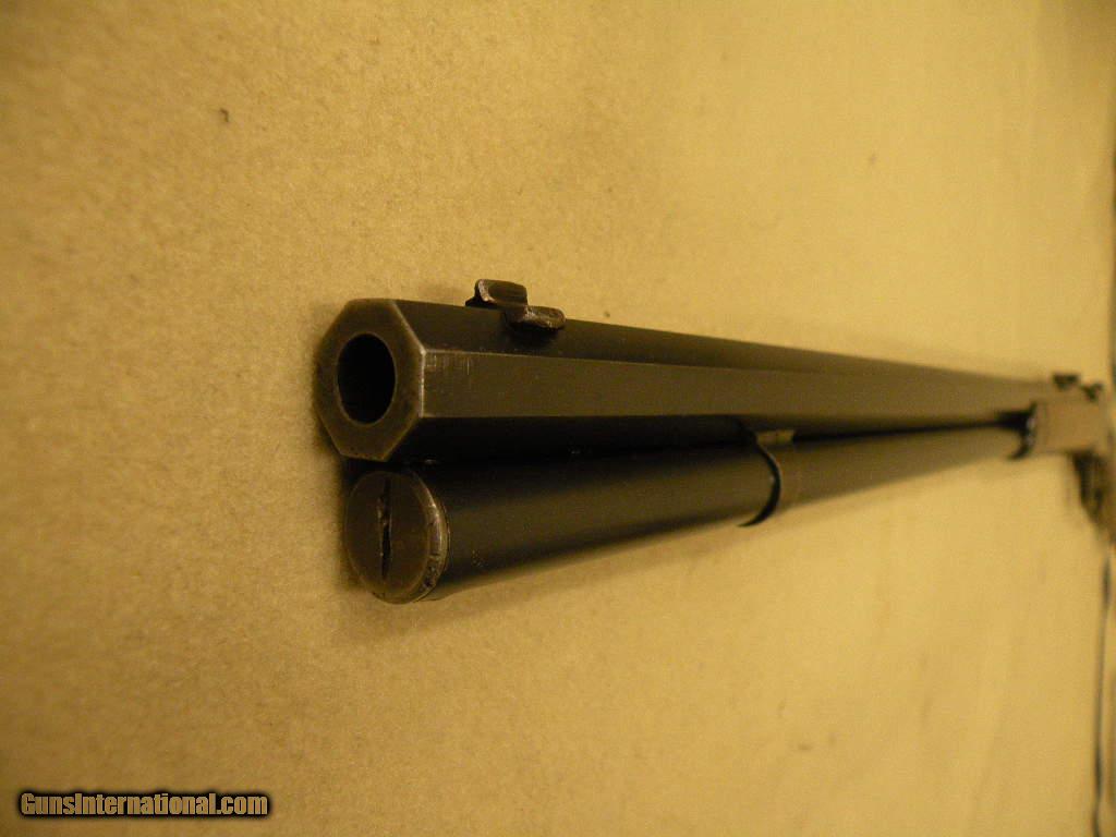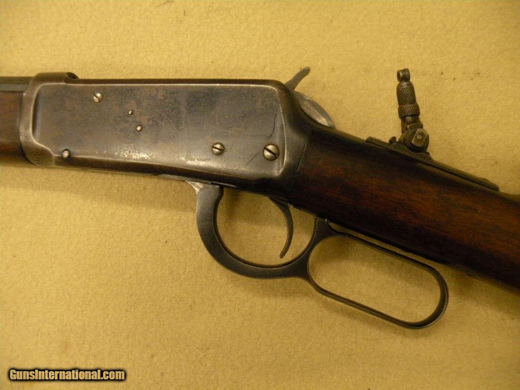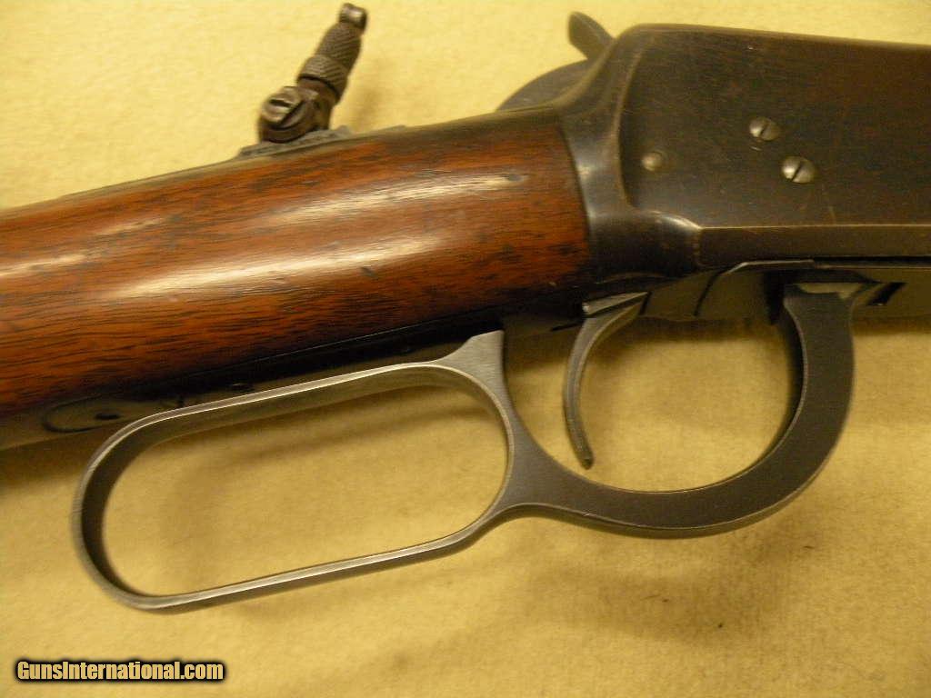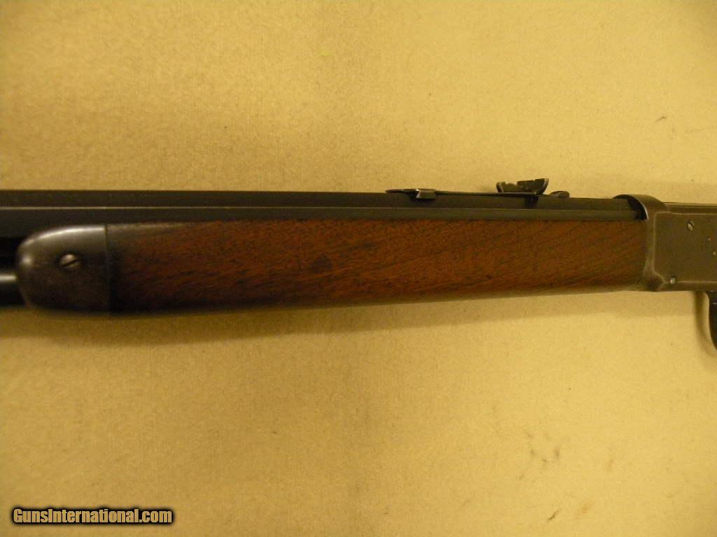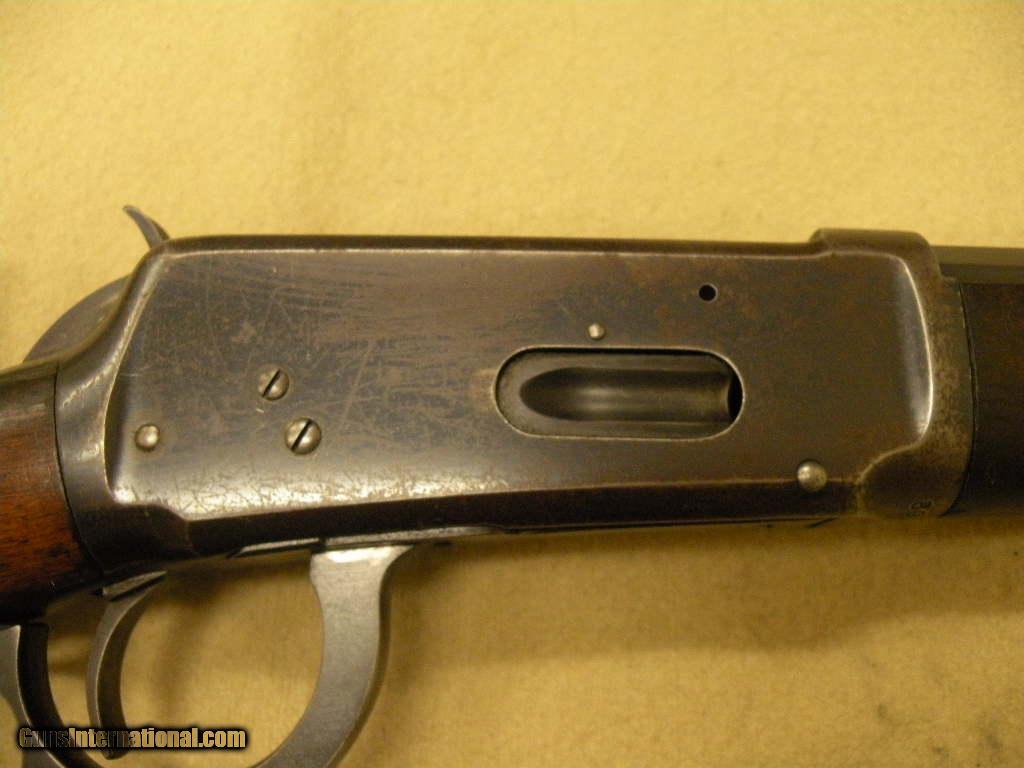 Description: 26 INCH BARRELED 38/55 WITH MIRROR BORE OCTAGON SOLID FOREND AND BUTTSTOCK NO CRACKS SPLITS RECEIVER SPLOTCHY PATINA BARREL AND MAGAZINE TUBE ARE IN THE 85% RANGE GOOD ORIGINAL FINISH ON THE WOOD CORRECT REAR SIGHT W/ ELEVATOR MARBLES TANG SIGHT VERY HONEST UNMOLESTED 1894 WITH NICKLE SWISS BUTTPLATE MFG 1921 SOLD Curio/Relic: Yes Serial Number: 890164 |
