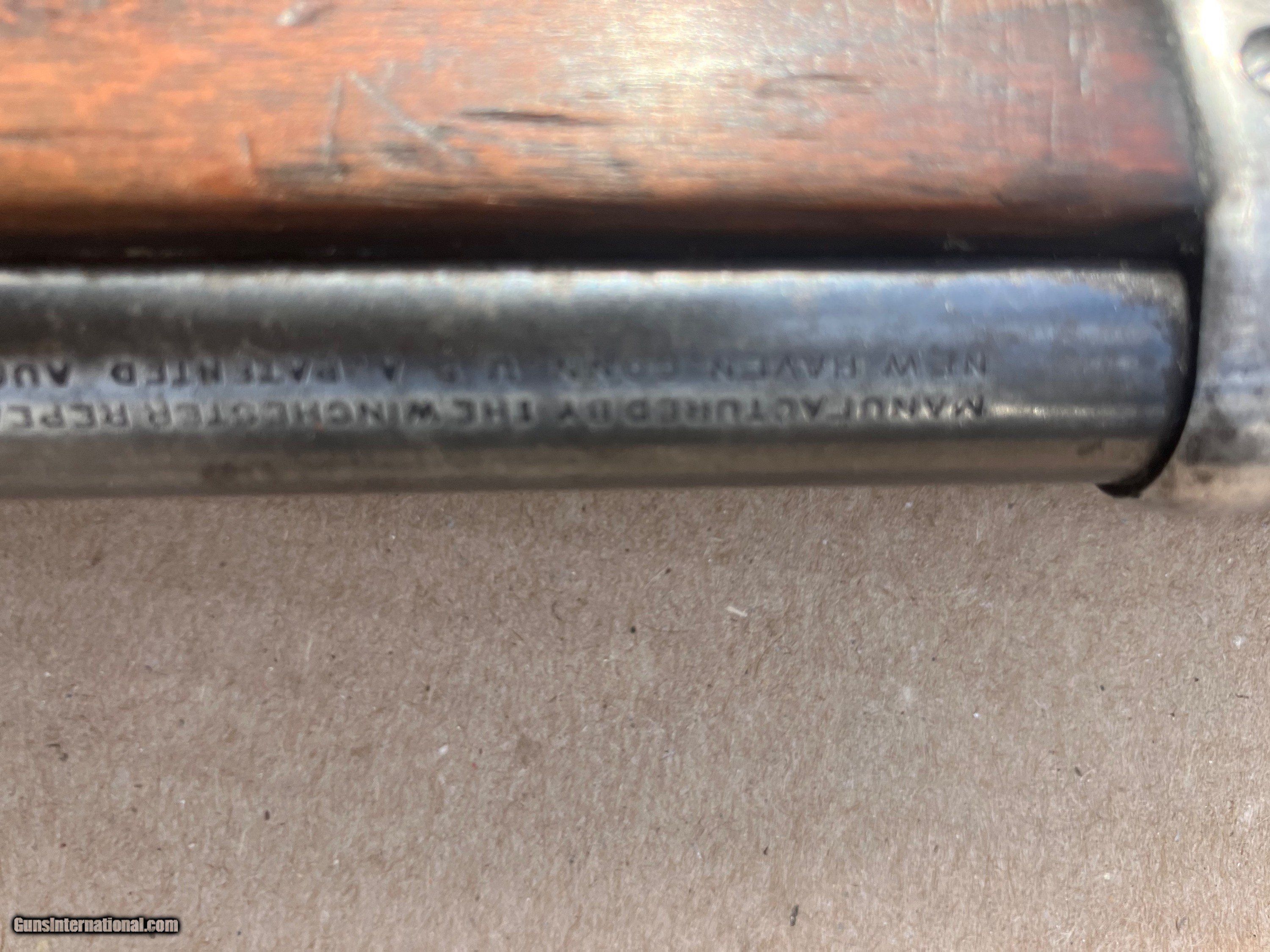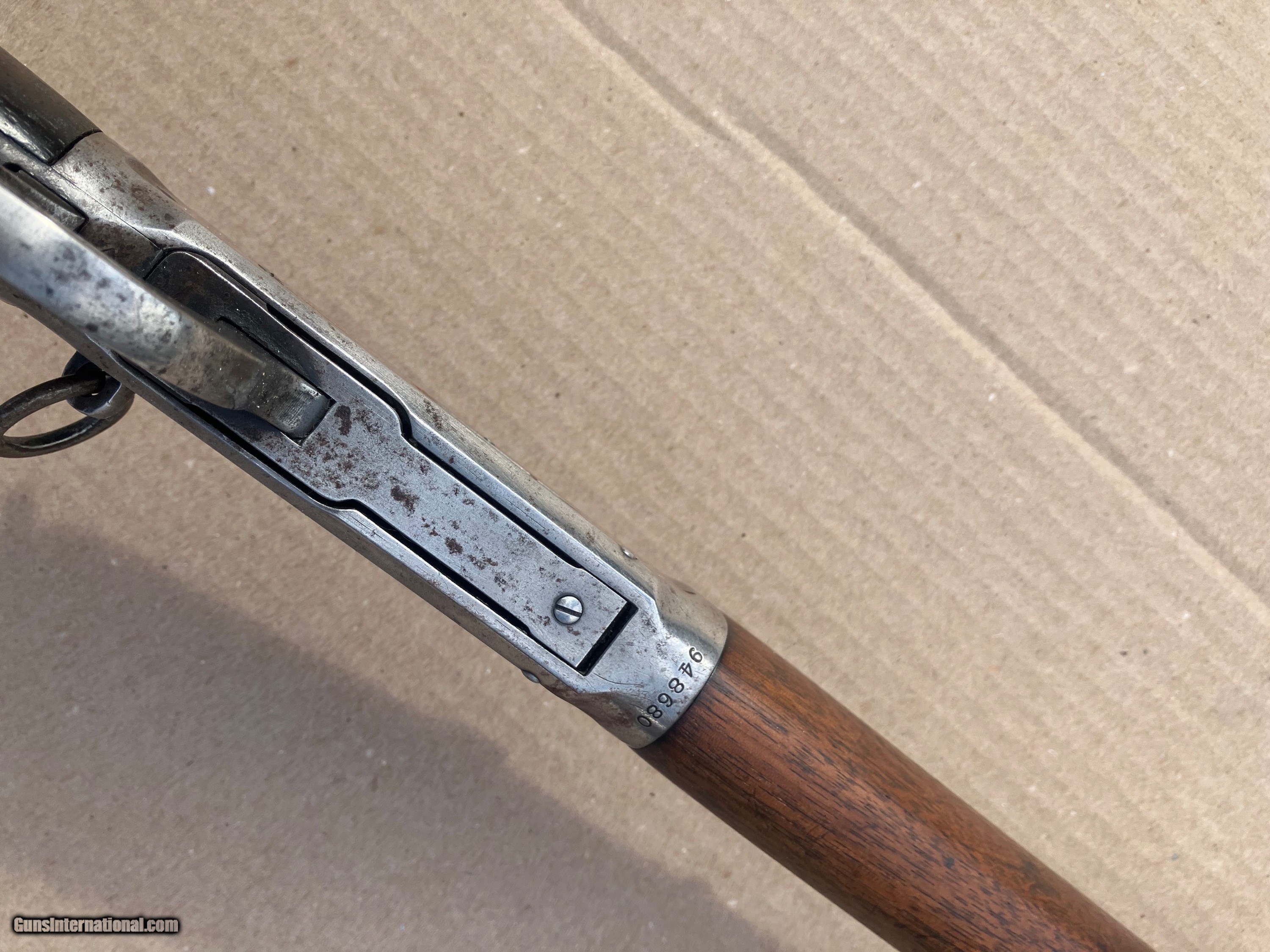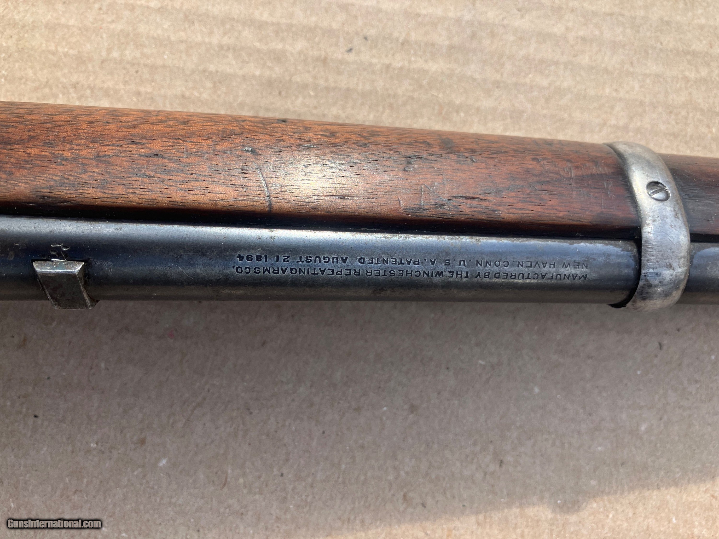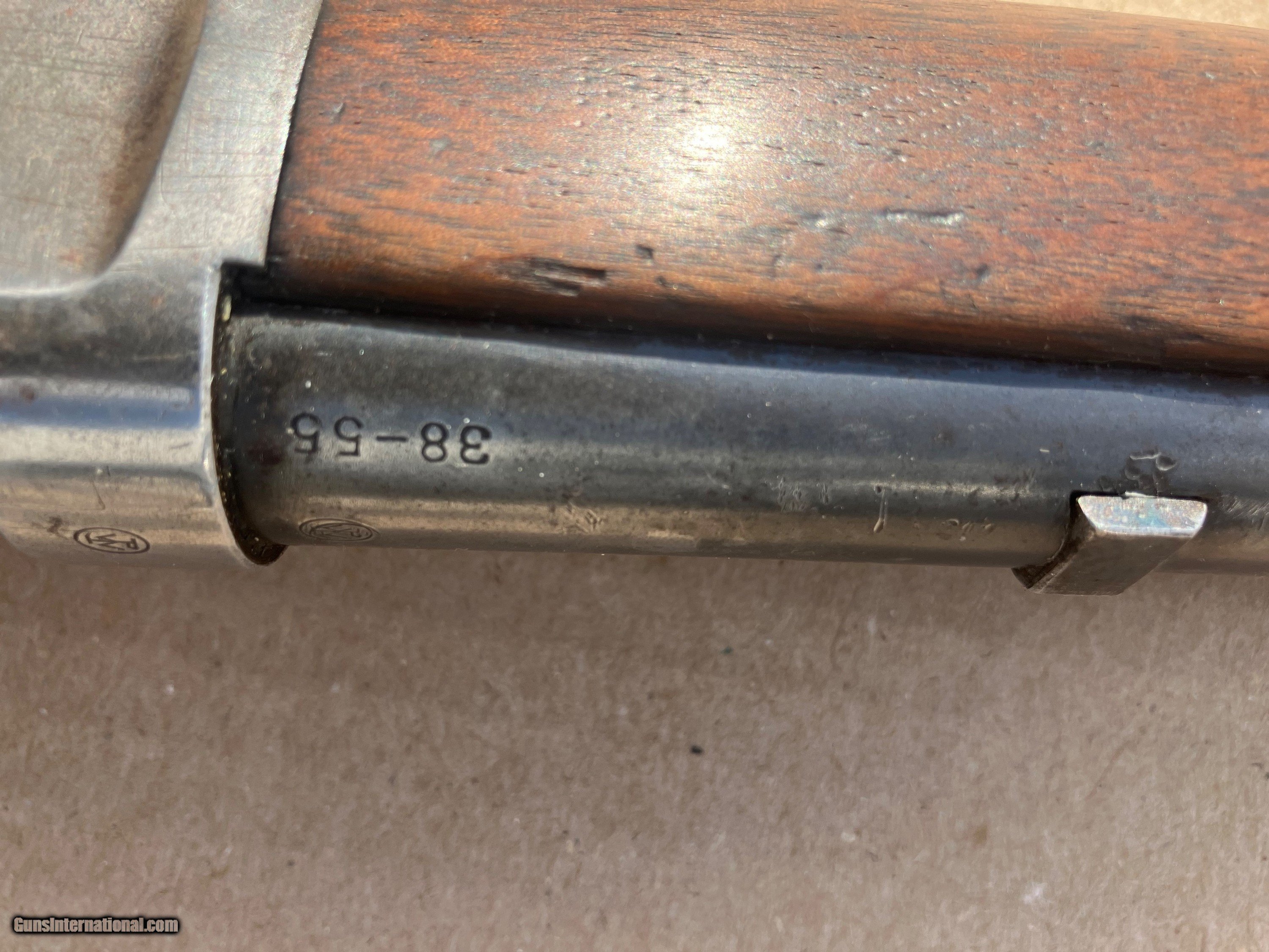 Description: Winchester 1894 38-55 carbine good condition for age SOLD Rifle Caliber: .38-55 Winchester Manufacturer: Winchester Model: 1894 Serial Number: 948680 Barrel Length: 20inches Condition: Good Metal Condition: Good Wood Condition: Good Bore Condition: Good |