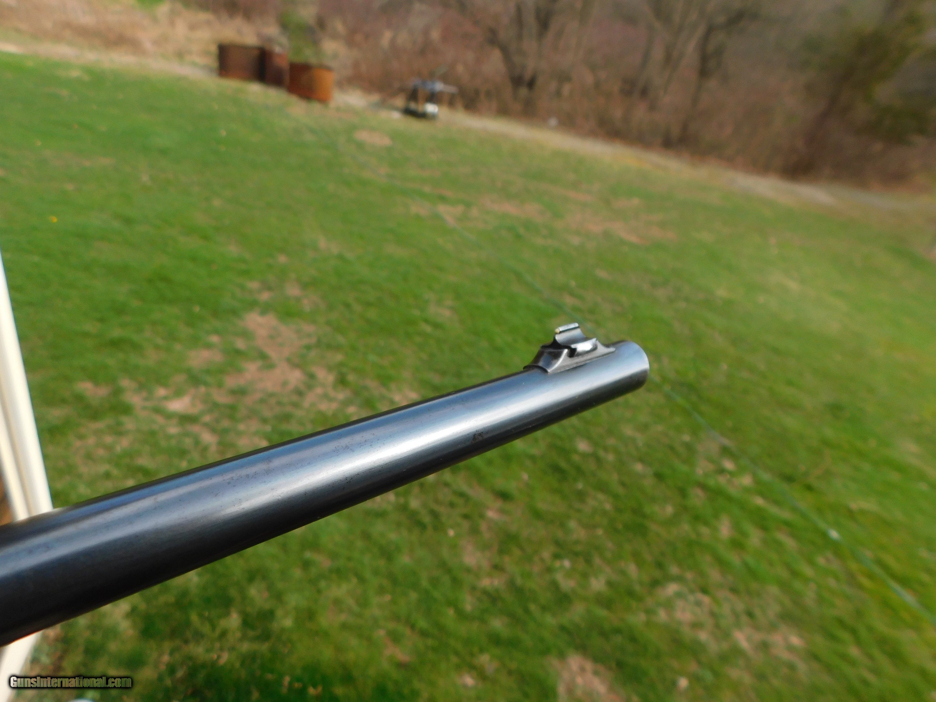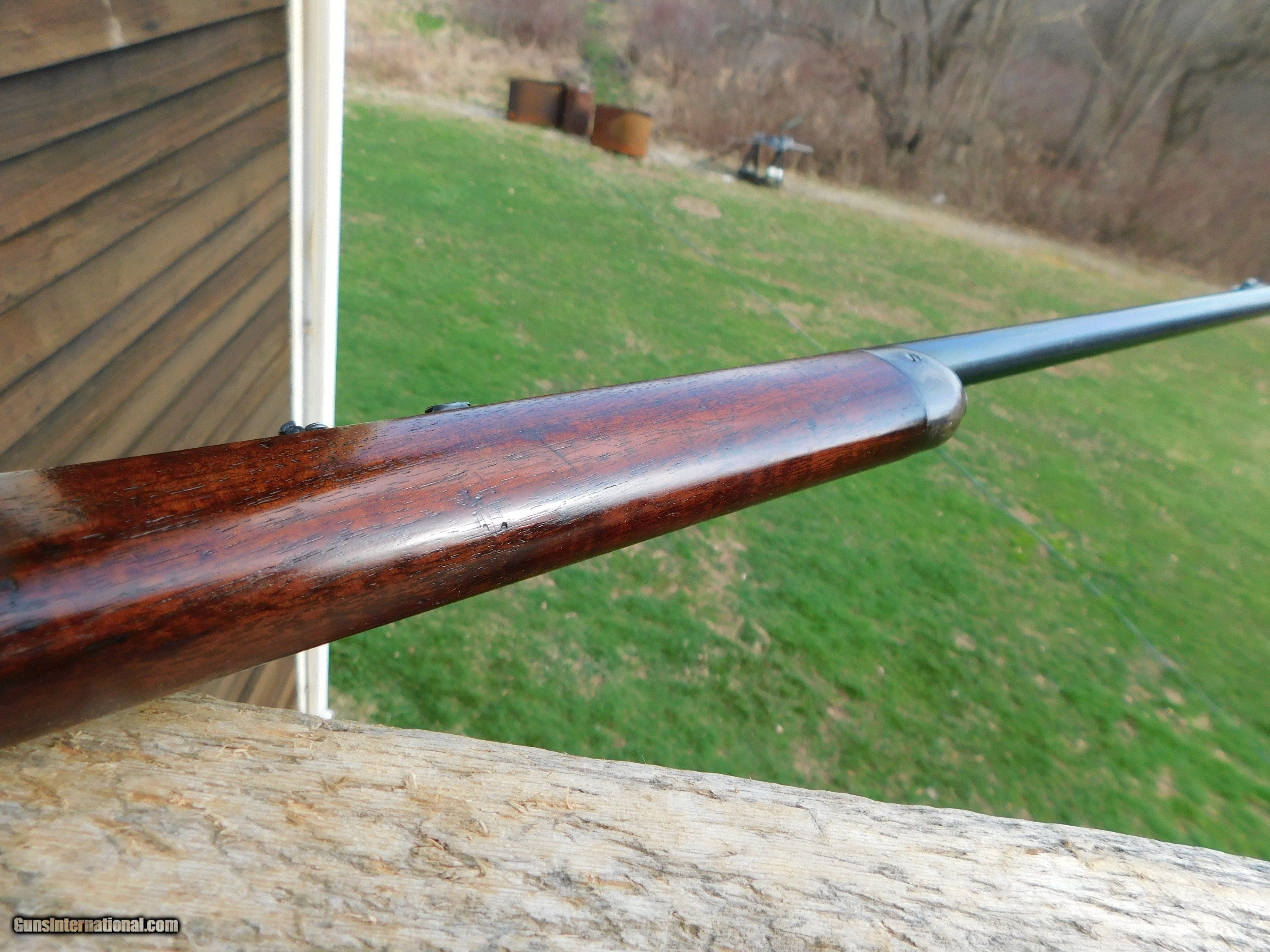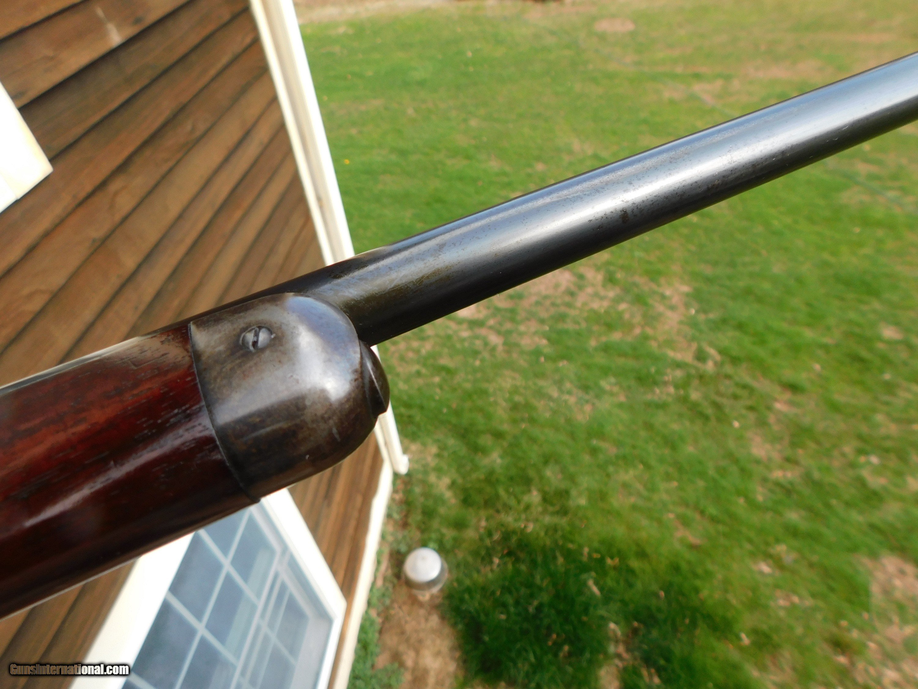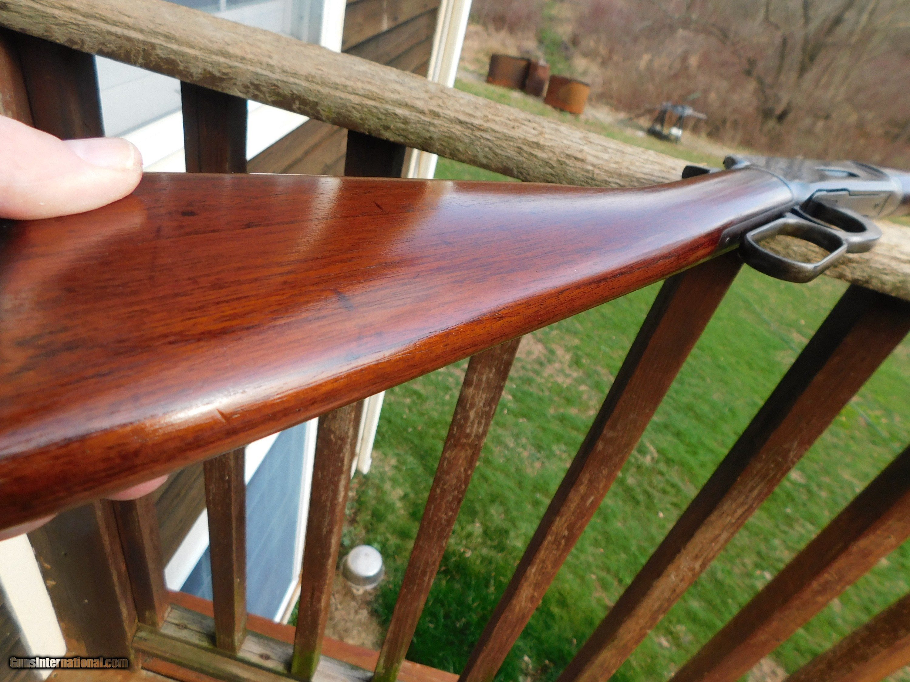 Description: SALE PENDING DAVE S. WISC. 3/27/24 Short Rifle with the following Special Order Features: 22" nickle steel barrel, shotgun butt, 3 leaf express sight, 8 3/8th " correct for short rifle forend. Button Mag Hammer with eybrow remains fixed at half cock... Blue on barrel exceptional Blue on receiverf a little washed out NO non factory holes not even for sling swivel Bore is perfect Front Sight Correct This seems to be a good honest gun Probably finish added to stock...wood still proud to metal shipping $ 65.00 IF IT DOES NOT SAY ."SALE PENDING, UNDER DEPOSIT or ON HOLD"...IT IS AVAILABLE. WE DO NOT REPLY TO INQUIRIES THAT SAY "INTERESTED IN THIS GUN" OR "IS IT AVAILABLE" IF YOU WOULD LIKE TO BUY THIS OR ANY OF OUR GUNS WE SUGGEST YOU PHONE US; WE ARE OFTEN AVAIALABLE LONG HOURS. IF YOU ARE INTERSTED IN A GUN THAT IS UNDER DEPOSIT AND WOULD LIKE TO BE NOTIFIED IF A SIMILAR GUN COMES IN DROP US A LINE AND WE WILL MAKE EFFORTS TO CONTACT YOU WHEN ONE DOES COME IN. WE HAVE OVER 2000 SALES ON ALL SITES WITH AN A+ RATING ON ALL WE ALSO KEEP AN INVENTORY OF OLDER PERIOD CORRECT SCOPES; CALL WITH NEEDS WE MOSTLY PICK VERY CLEAN AND LIGHLTY USED GUNS. WE ARE HAPPY TO TAKE CONSIGNMENT GUNS AND COLLECTIONS OR WILL BUY YOURS OUTRIGHT. WE SOMETIMES ARE EMPLOYED FOR ESTATE PURPOSES AND VALUATIONS. AT THIS TIME WE ARE ONLY ACCEPTING US POSTAL MONEY ORDERS OR BANK CHECKS FOR PAYMENT IT IS THE BUYERS RESPONSIBILITY TO GET US A COPY OF YOUR RECEIVING FFL'S LIC AND A COPY OF YOUR PHOTO ID BEFORE THE GUN SHIPS YOU MUST CALL OR CONTACT YOUR FFL.WE DO NOT CALL FOR YOU UNLESS THEY RQUIRE IT. LAYAWAY PURCHASES NOT COMPLETED ON ANY RETURNED ITEM UNLESS NOT AS DESCRIBED OR DAMAGED ARE SUBJECT TO A 10% RELISTING/RESTOCKING FEE AND MUST BE RETURNED WITH NO NEW MARKS OR SCRATCHES, SENT BACK INSURED, PRIORITY SIGNATURE REQUIRED. ALL INFORMATION CONTAINED HEREIN IS BELIEVED TO BE ACCURATE BUT IS NOT GUARANTEED. WITH ANY OLDER OR USED GUN IT SHOULD BE INSPECTED BY A GUNSMITH PRIOR TO SHOOTING SOLD |