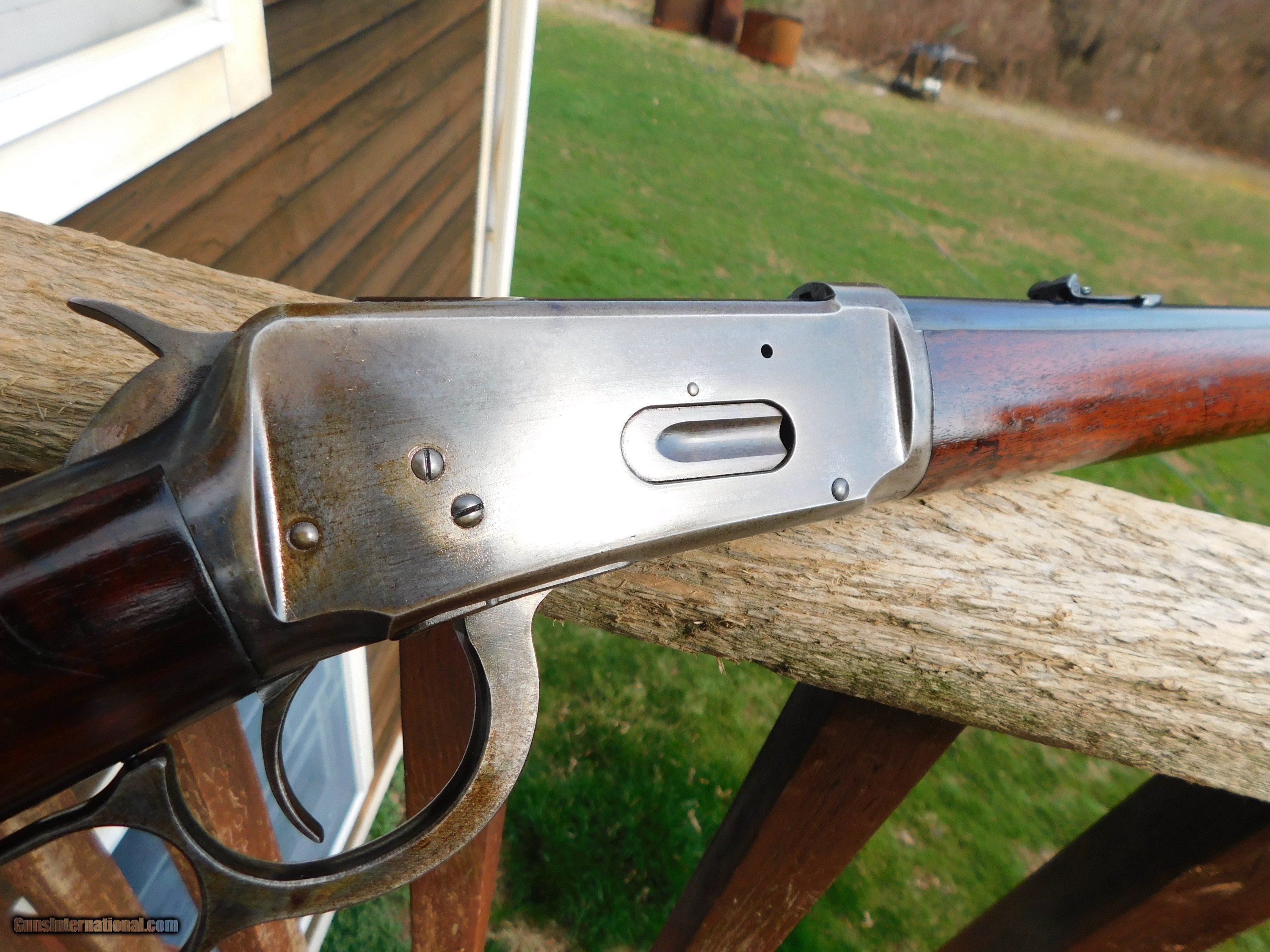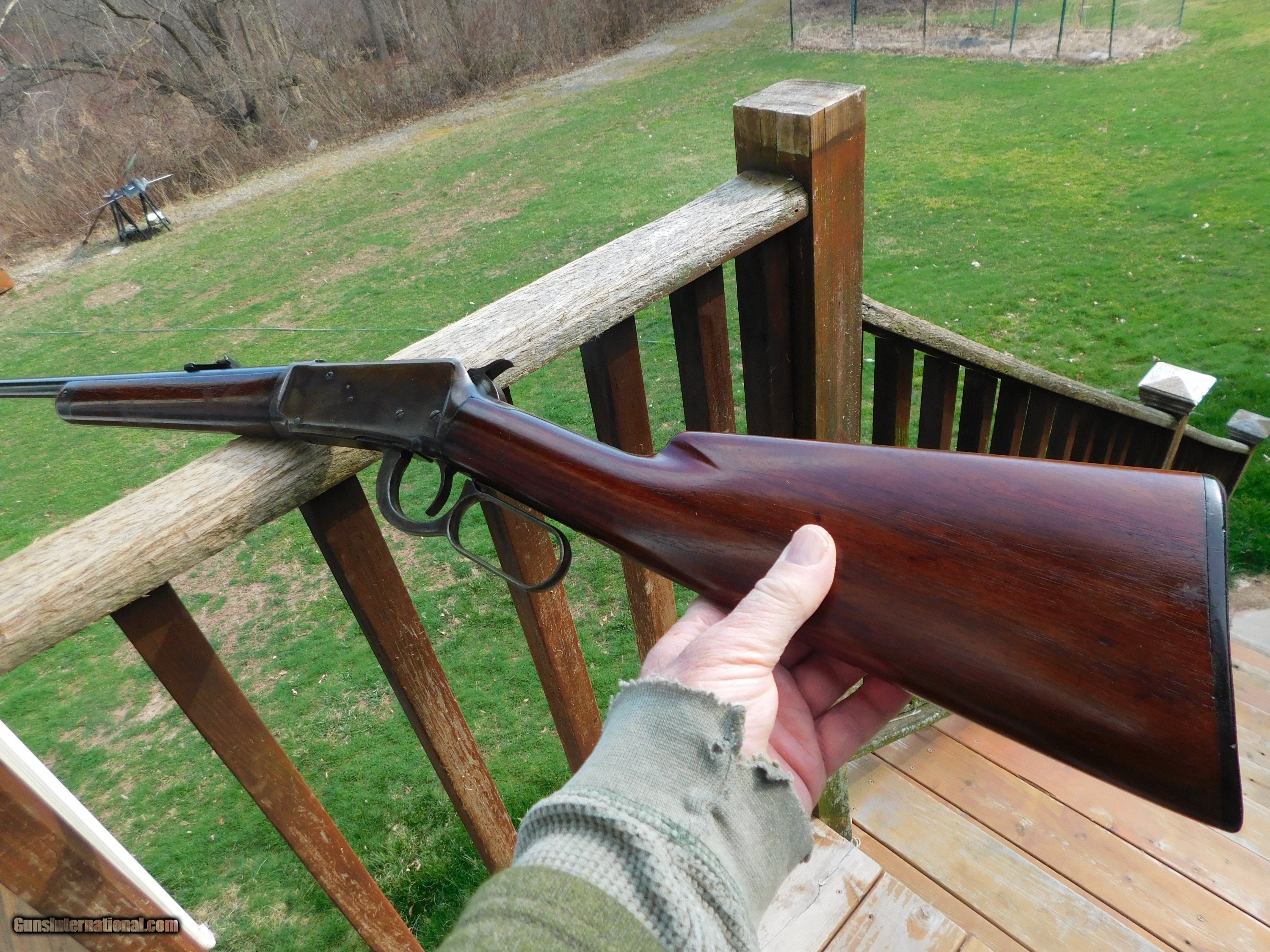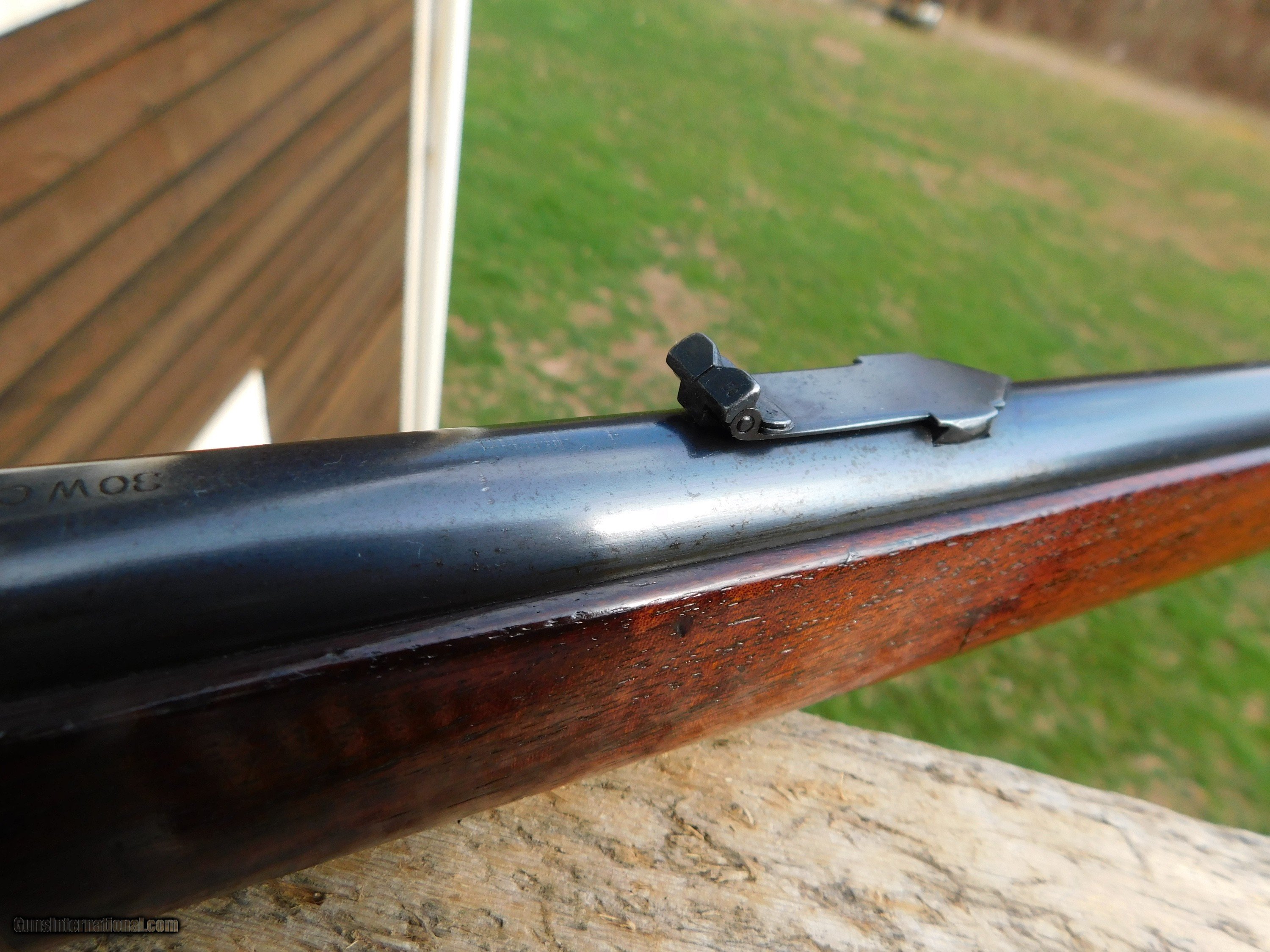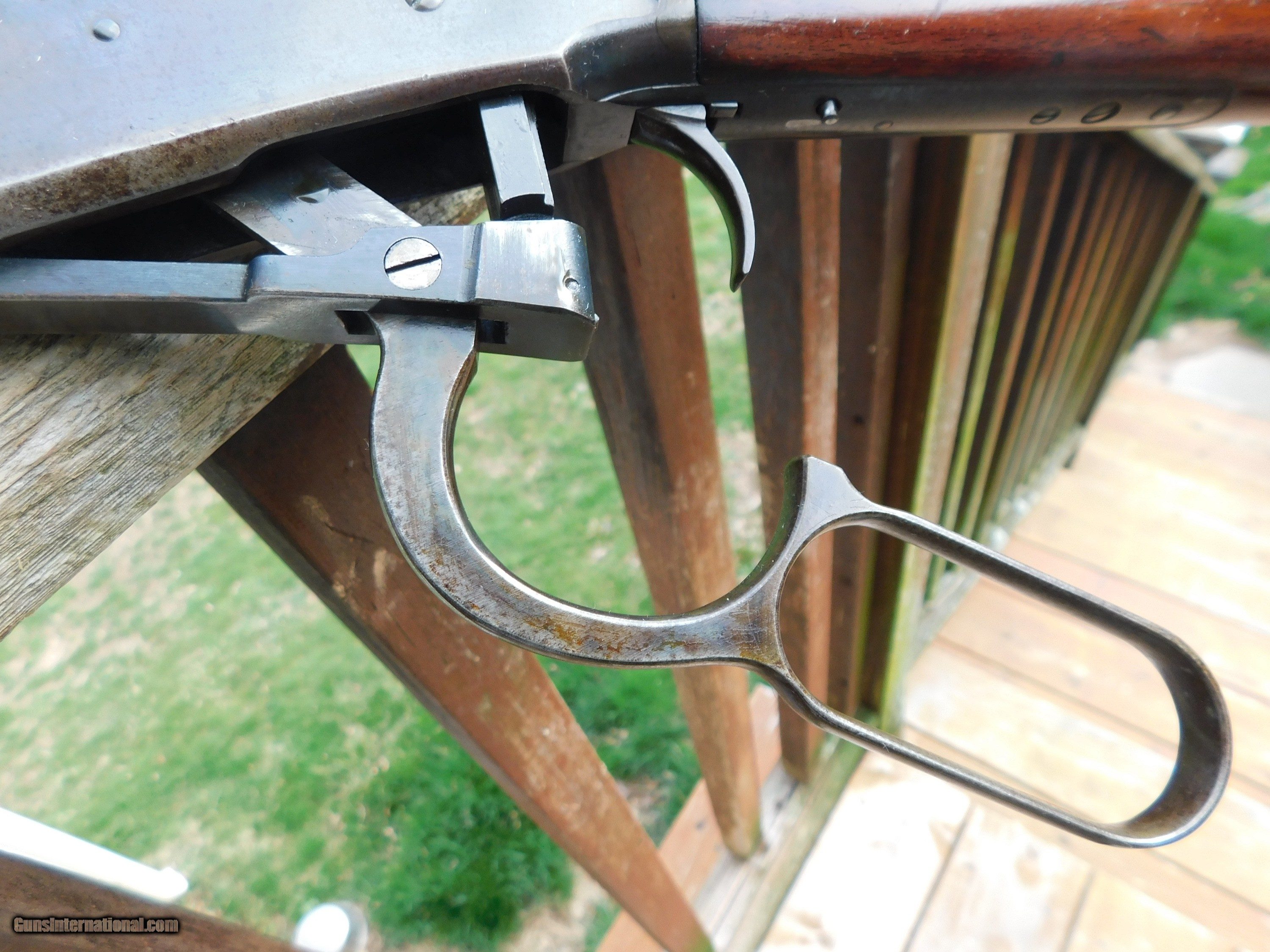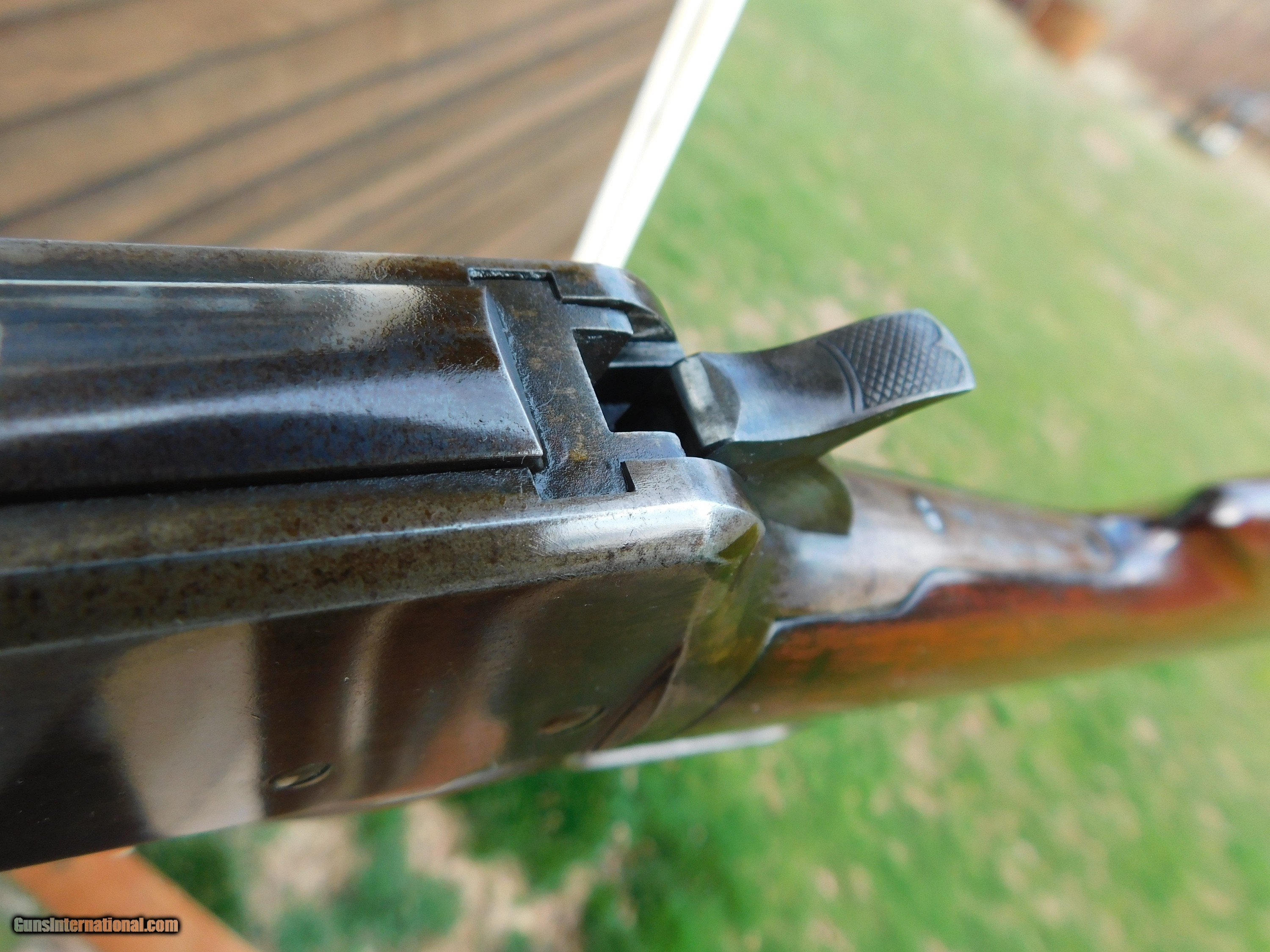 Description: SALE PENDING DAVE S. WISC. 3/27/24 Short Rifle with the following Special Order Features: 22" nickle steel barrel, shotgun butt, 3 leaf express sight, 8 3/8th " correct for short rifle forend. Button Mag Hammer with eybrow remains fixed at half cock... Blue on barrel exceptional Blue on receiverf a little washed out NO non factory holes not even for sling swivel Bore is perfect Front Sight Correct This seems to be a good honest gun Probably finish added to stock...wood still proud to metal shipping $ 65.00 IF IT DOES NOT SAY ."SALE PENDING, UNDER DEPOSIT or ON HOLD"...IT IS AVAILABLE. WE DO NOT REPLY TO INQUIRIES THAT SAY "INTERESTED IN THIS GUN" OR "IS IT AVAILABLE" IF YOU WOULD LIKE TO BUY THIS OR ANY OF OUR GUNS WE SUGGEST YOU PHONE US; WE ARE OFTEN AVAIALABLE LONG HOURS. IF YOU ARE INTERSTED IN A GUN THAT IS UNDER DEPOSIT AND WOULD LIKE TO BE NOTIFIED IF A SIMILAR GUN COMES IN DROP US A LINE AND WE WILL MAKE EFFORTS TO CONTACT YOU WHEN ONE DOES COME IN. WE HAVE OVER 2000 SALES ON ALL SITES WITH AN A+ RATING ON ALL WE ALSO KEEP AN INVENTORY OF OLDER PERIOD CORRECT SCOPES; CALL WITH NEEDS WE MOSTLY PICK VERY CLEAN AND LIGHLTY USED GUNS. WE ARE HAPPY TO TAKE CONSIGNMENT GUNS AND COLLECTIONS OR WILL BUY YOURS OUTRIGHT. WE SOMETIMES ARE EMPLOYED FOR ESTATE PURPOSES AND VALUATIONS. AT THIS TIME WE ARE ONLY ACCEPTING US POSTAL MONEY ORDERS OR BANK CHECKS FOR PAYMENT IT IS THE BUYERS RESPONSIBILITY TO GET US A COPY OF YOUR RECEIVING FFL'S LIC AND A COPY OF YOUR PHOTO ID BEFORE THE GUN SHIPS YOU MUST CALL OR CONTACT YOUR FFL.WE DO NOT CALL FOR YOU UNLESS THEY RQUIRE IT. LAYAWAY PURCHASES NOT COMPLETED ON ANY RETURNED ITEM UNLESS NOT AS DESCRIBED OR DAMAGED ARE SUBJECT TO A 10% RELISTING/RESTOCKING FEE AND MUST BE RETURNED WITH NO NEW MARKS OR SCRATCHES, SENT BACK INSURED, PRIORITY SIGNATURE REQUIRED. ALL INFORMATION CONTAINED HEREIN IS BELIEVED TO BE ACCURATE BUT IS NOT GUARANTEED. WITH ANY OLDER OR USED GUN IT SHOULD BE INSPECTED BY A GUNSMITH PRIOR TO SHOOTING SOLD |
