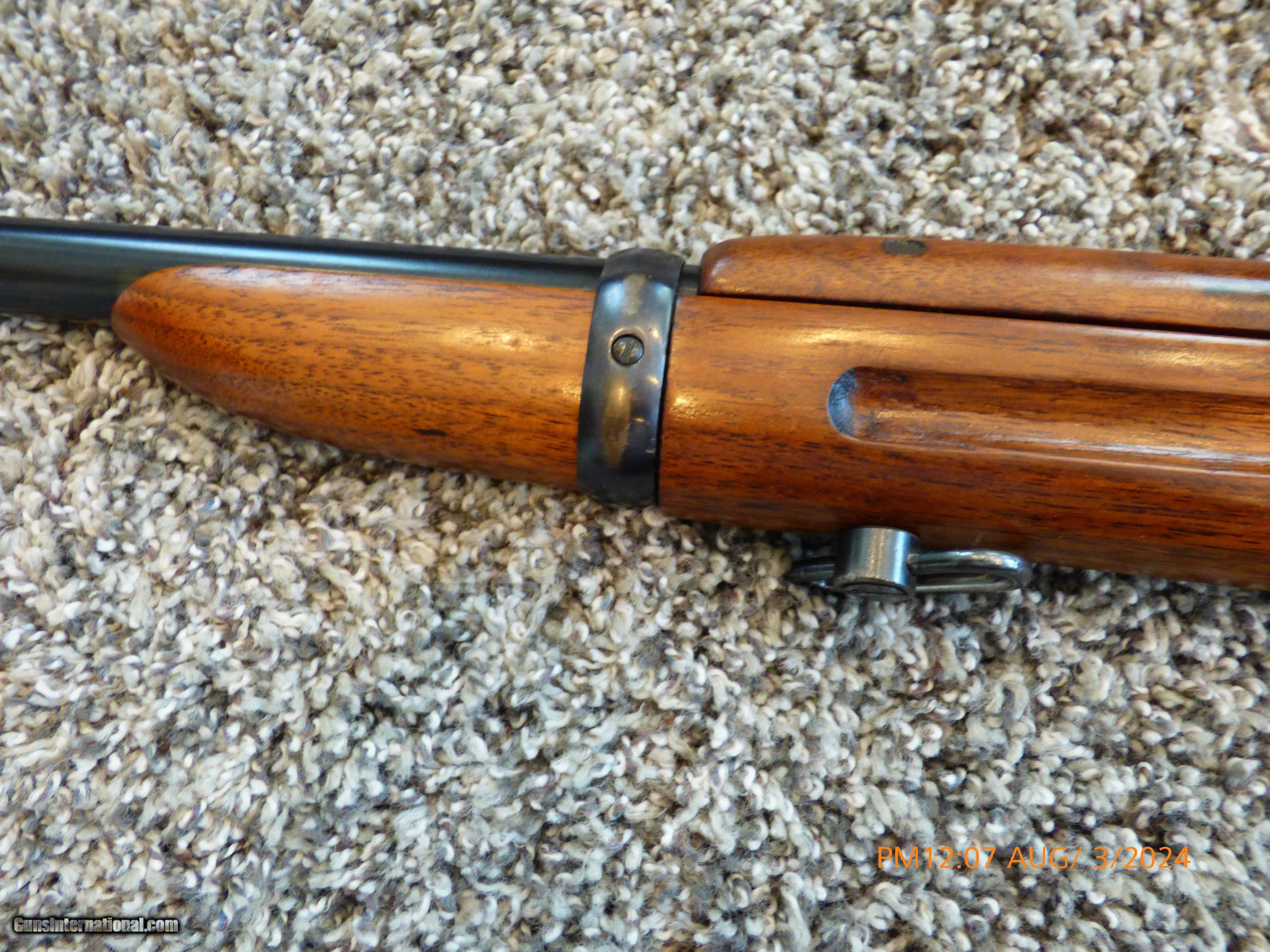 Description: Winchester 1895 Carbine made in 1915. Caliber is 30 40 Krag. Bore looks very good and she is a shooter.(See pic) The group was with 180 grain bullets at 50 yards.. Wood has been professionally refinished. Redfield receiver sight. Steel buttplate with trap. The wood barrel cover has a crack, . All lettering is crisp and clear. Not sure if it is the origianl blueing but I think it is. 21 inch barrel. Everything locks up tight and she is fun to shoot. All questions welcome. Shipping will be flat rate of $55 to lower 48. All others ask for quote. Make sure you FFL will accept from non FFL holder. Most do with a copy of my drivers license. This will also go to a C and R. Nothing like a Winchester lever action made of steel and wood and designed by John Moses Browning. All questions welcome. SOLD Curio/Relic: Yes Rifle Caliber: .30-40 Krag Manufacturer: Winchester Model: 1895 Barrel Length: 21 Condition: Nice Metal Condition: 85% Bore Condition: Very good Action: lever Finish: blued Manufacture Date: 1915 |