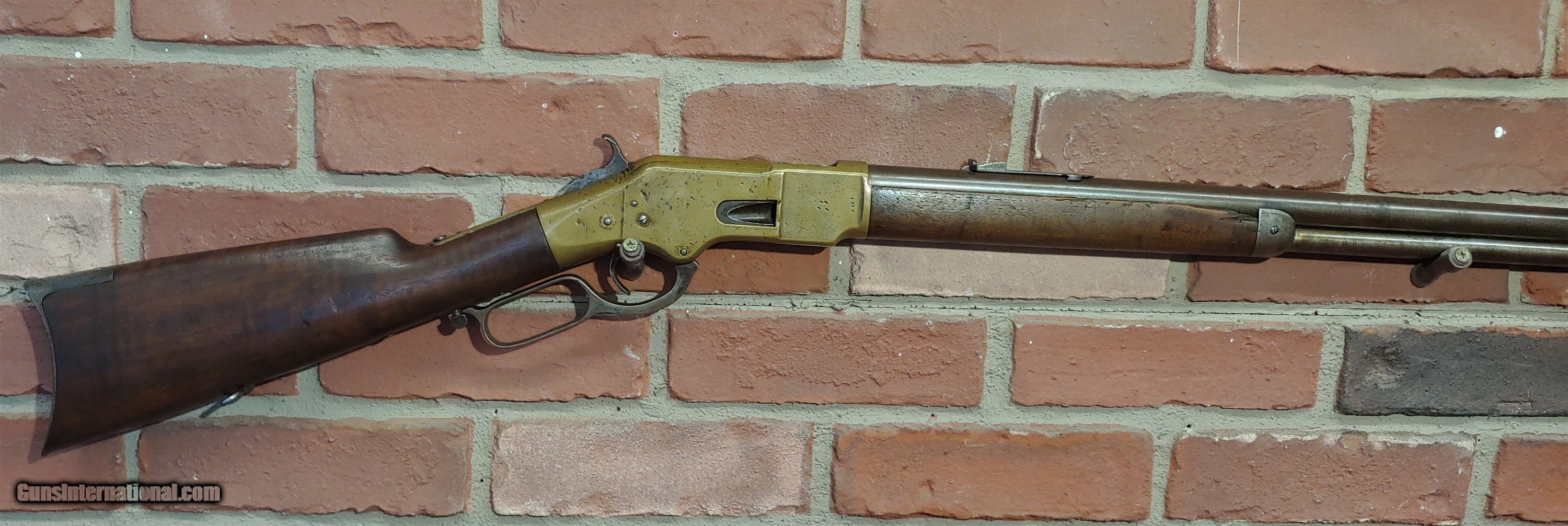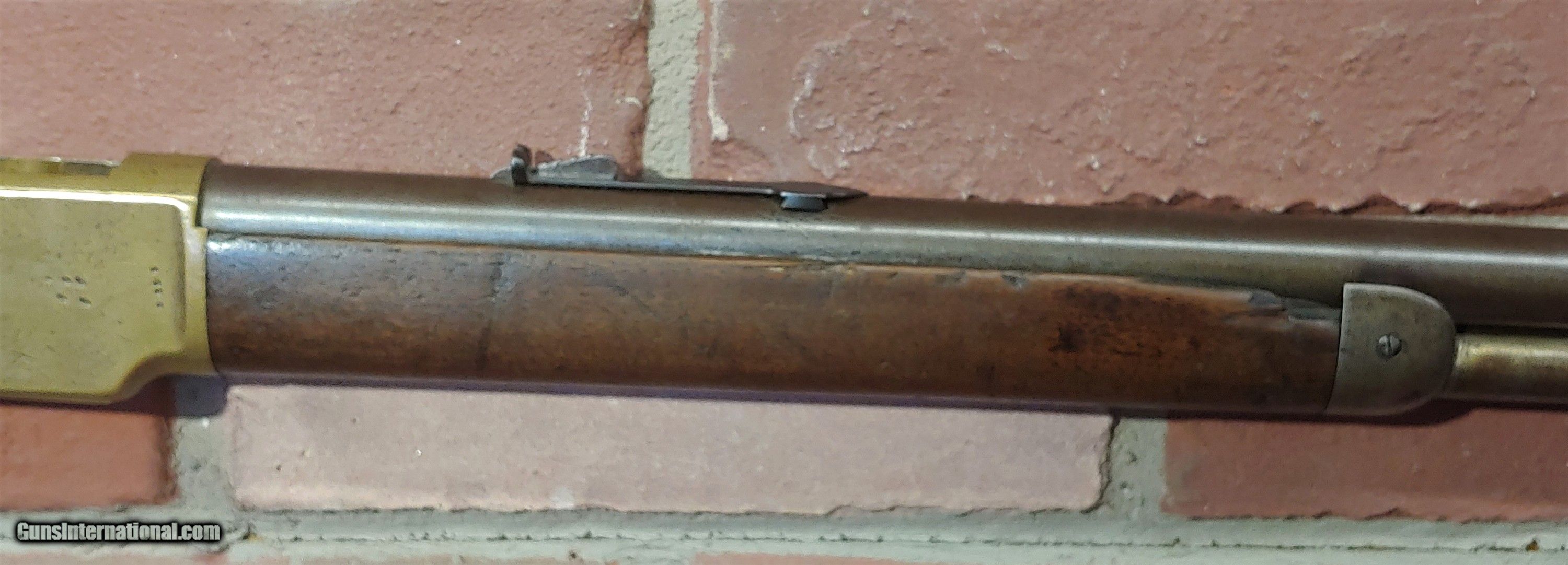 Description: Winchester Model 1866 made in 1877, chambered in 44 rim fire. 24 inch barrel. In pretty good condition. It does show some use. But for 146 years old its doing pretty damn good. It is missing the extractor. The barrel is marked WINCHESTER'S REPEATING ARMS NEW HAVEN CT. KING'S IMPROVEMENT-PATENTED MARCH 29 1866, OCTOBER 16 1860 SOLD Antique: Yes Rifle Caliber: .44 Rimfire Manufacturer: Winchester Model: 1866 Serial Number: 133262 Ejectors: MISSING |