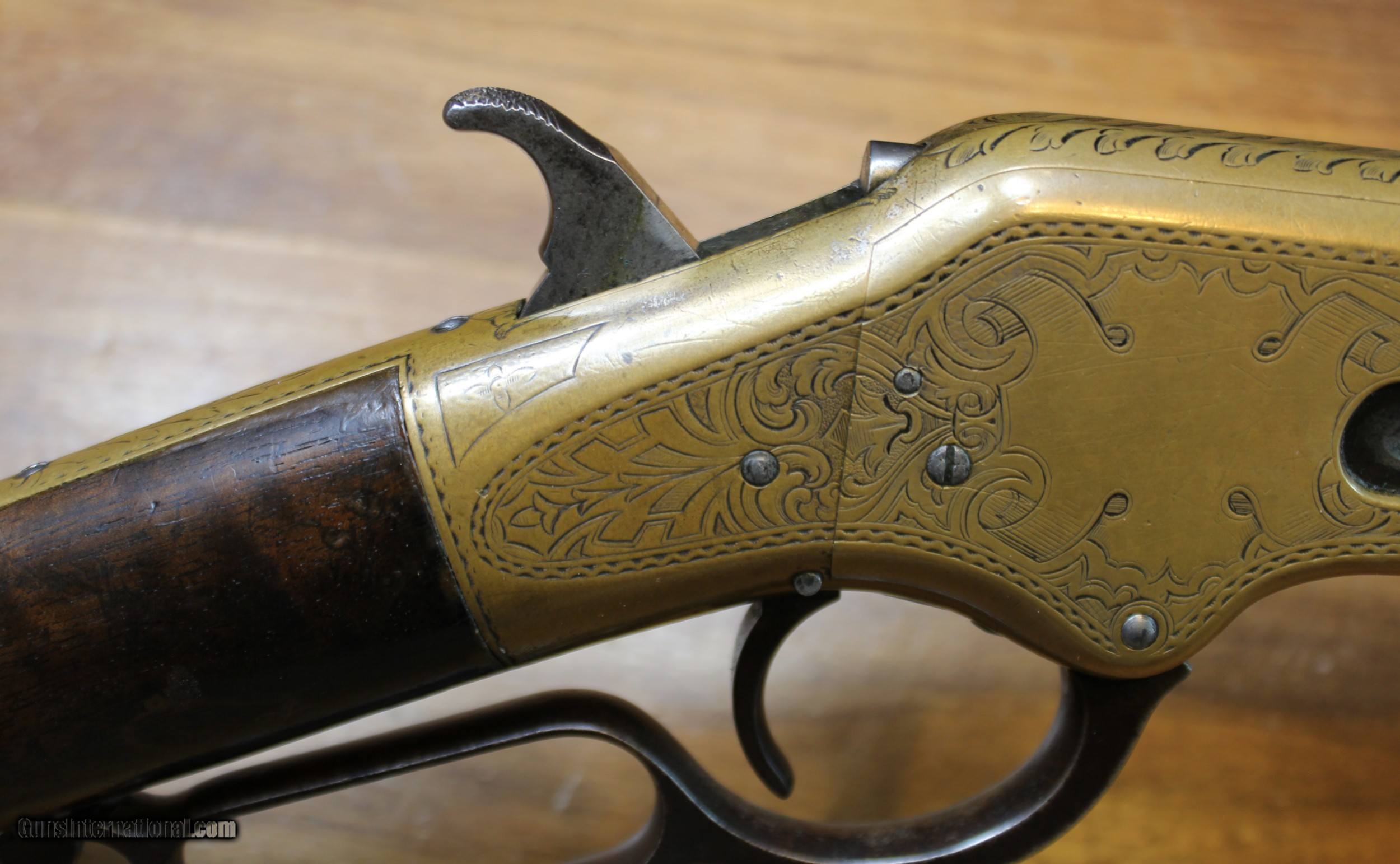 Description: Got a Antique Winchester Model 1866 Lever Action Rifle. Factory Engraved Later 2nd Model w Half Cock. The rear sight was remounted through the barrel address.The rifle is ORIGINAL The following information on this particular antique is to give as much information on this piece of history that we could find..............................,Manufacturer: Winchester Model: 1866 Manufactured in 1871. The receiver is factory engraved with floral scroll, floral patterns, a decorative four corner scroll on each side and leaf designs. The left side of the receiver is inscribed "C.Wo.F.C./From/R.R.M." in the decorative scroll. The sides of the receiver have a double scallop border and there is a scallop border front and rear edges, as well as around the ejection port. The top barrel flat is marked with the two line address/King's patent dates (partially obscured by a period filled dovetail) and the serial number appears on the lower tang. German silver blade front and folding ladder rear sights and mounted with a smooth walnut forearm and straight grip stock with a sling swivel on the forend cap and stock. The consignor notes state that the "RRM" may be the initials of R. McCabe, possibly a Editor for the Chicago Tribune. Writer was unable to locate any information via an internet search. More research may prove interesting. There is a minor period repair on the lower tang. BBL: 24 inch octagon Stock: walnut Gauge: 44 Finish: blue Grips: Serial Number: 76442 ........ The pictures show condition as best we can. We tried to get pictures of every flaw, mark, ding, makers mark or whatever we could find. There is a total of 103 pictures. We can only post 25. If you want the rest, please email. Just be patient as our internet connection in the country is slow. The item you see in the pictures is the one you receive. Look closely at the pictures as what you see in what you get. This came from the estate of an FFL/SOT Gun Smith, Gun Store that is out of business. This is or was inventory. The estate also was an avid collector of all types. Please check the pictures to check condition. There will be countless other listings from this inventory over the next 4 to 5 years. We are selling for the store. This is NOT a liquidation. There are no lists and will be no lists. Just keep checking the other listings You are welcome to ask questions and ask for additional pictures Please check our other listings for the items. NOTE: Look close at the pictures posted As is means AS IS. There is no refund You are welcome to check out our webpage or facebook page at P&T Partners Shipping is included and full insurance to you. An adult will sign for this at the receiving end. Price is for Certified Funds meaning Certified Check or USPS Money Orders. For this particular item no credit. WE DO ACCEPT PERSONAL OR BUSINESS CHECKS, BUT THERE IS A GRACE PERIOD OF 10 BUSINESSS DAYS ON CHECKS FROM THE DATE OF DEPOSIT. WE DO OFFER A LAYAWAY PLAN. YOU CAN LAYAWAY up to 180 DAYS . WE ALSO REQUIRE A 20% DOWN PAYMENT ON TOTAL OF LAYAWAY SALE in 7 Business days. LAYAWAYS ARE NON- REFUNDABLE. There are NO, repeat NO Credit Cards allowed on Lay-a-way. Personal or business check on any payment but the final payment. Last payment Certified funds ONLY. . I post on many of the firearms forums as PT-Partners. PT-Partners is a retail/FFL Dealer. For those that are local, there is no Face To Face. On Line means On Line PLEASE NOTE: This is an Antique Firearm NO FFL is required. SOLD Antique: Yes |