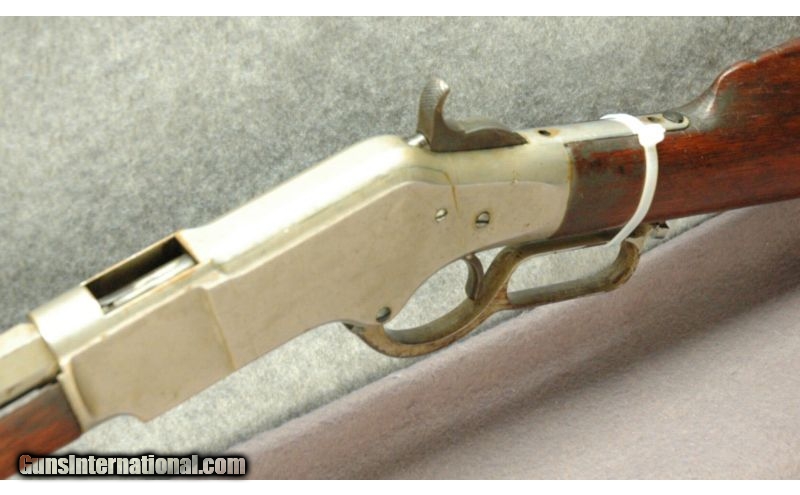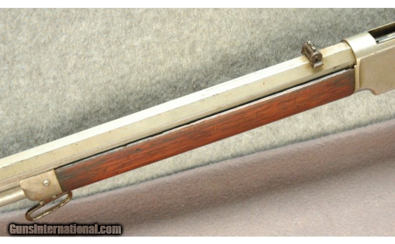 Description: SOLD Antique: Yes Manufacturer: 1872 Caliber Info: .44 Henry Rimfire Metal Condition: Non Factory Nickel Plating in Fair Condition, Small Scratches & Nicks, Few Areas of Light Corrosion Wood Condition: Stock is Fair, Many Small Nicks, Scratches and Dents Bore Condition: Fouled, Some Corrosion, Shallow Rifling Barrels: 24" Octagon Stock: Appears Original Fore End: Smooth, Matches Stock Butt Pad: Curved Metal Butt Plate Weight: 9 Lbs 8 ozs Sights: Iron Sights Item Location: La Vista, NE |