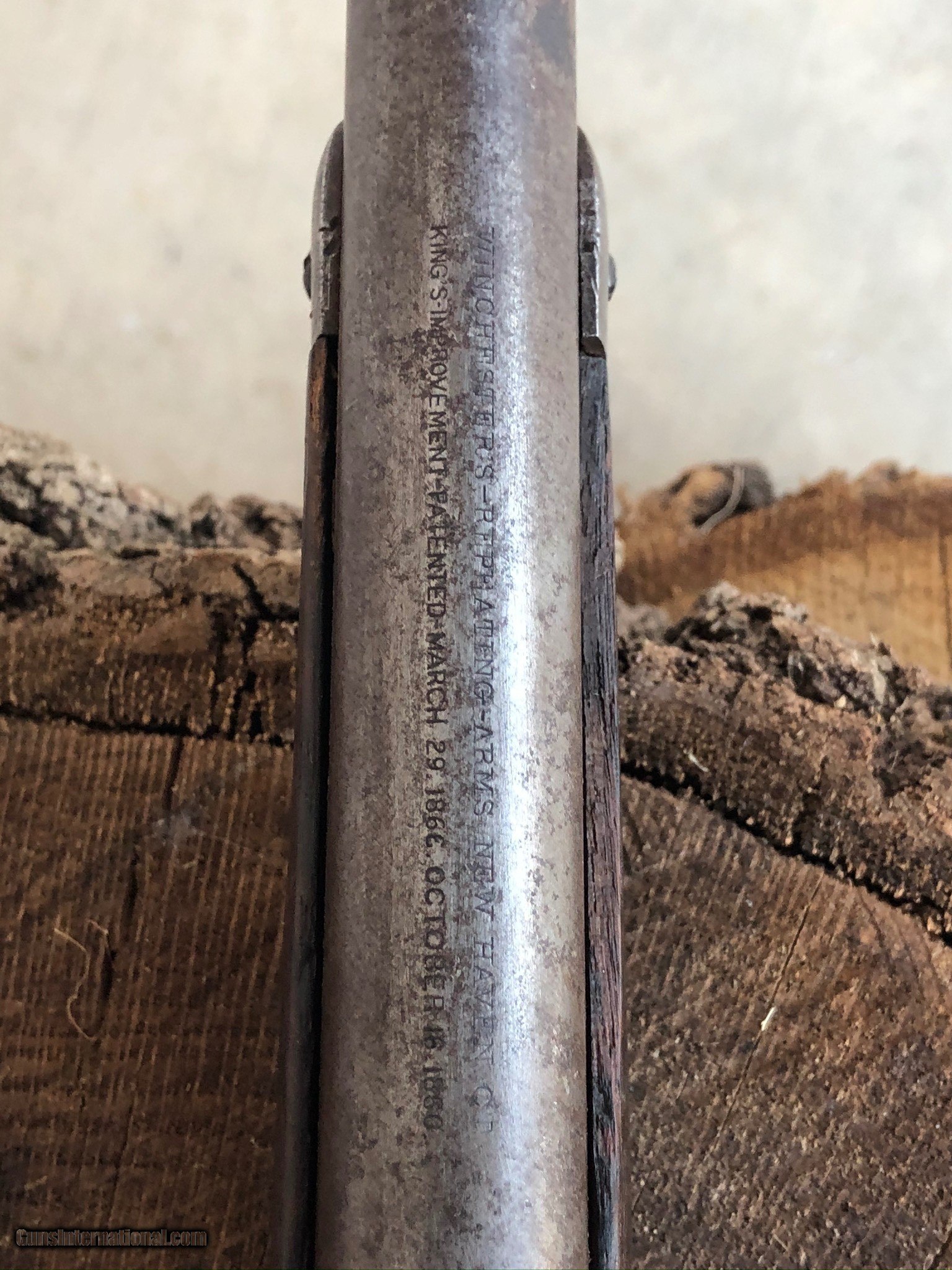 Description: Here's a fine example of a Winchester Model 1873 in the 32-20 caliber. The metal has some dark colored areas that would clean up very nicely. I chose to not clean it to preserve the 100 year + patina. The wood is very dark with years of sweat and oil. This rifle model was made famous in the Jimmy Stewart's movie "Winchester 73" which was about one of a 1000 rifles that Winchester manufactured. These rifles won the west. Get this rifle for your collection. These were extremely accurate. I've listed this rifle at a price much lower tha many others. I was able to get a good deal and wanted to pass it on. FFL is required. Please email me with any questions you may have. SOLD Curio/Relic: Yes Rifle Caliber: .32-20 Winchester |