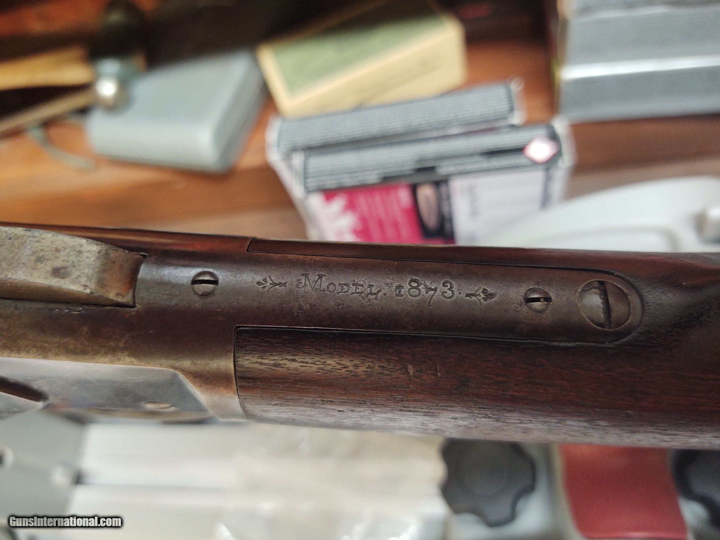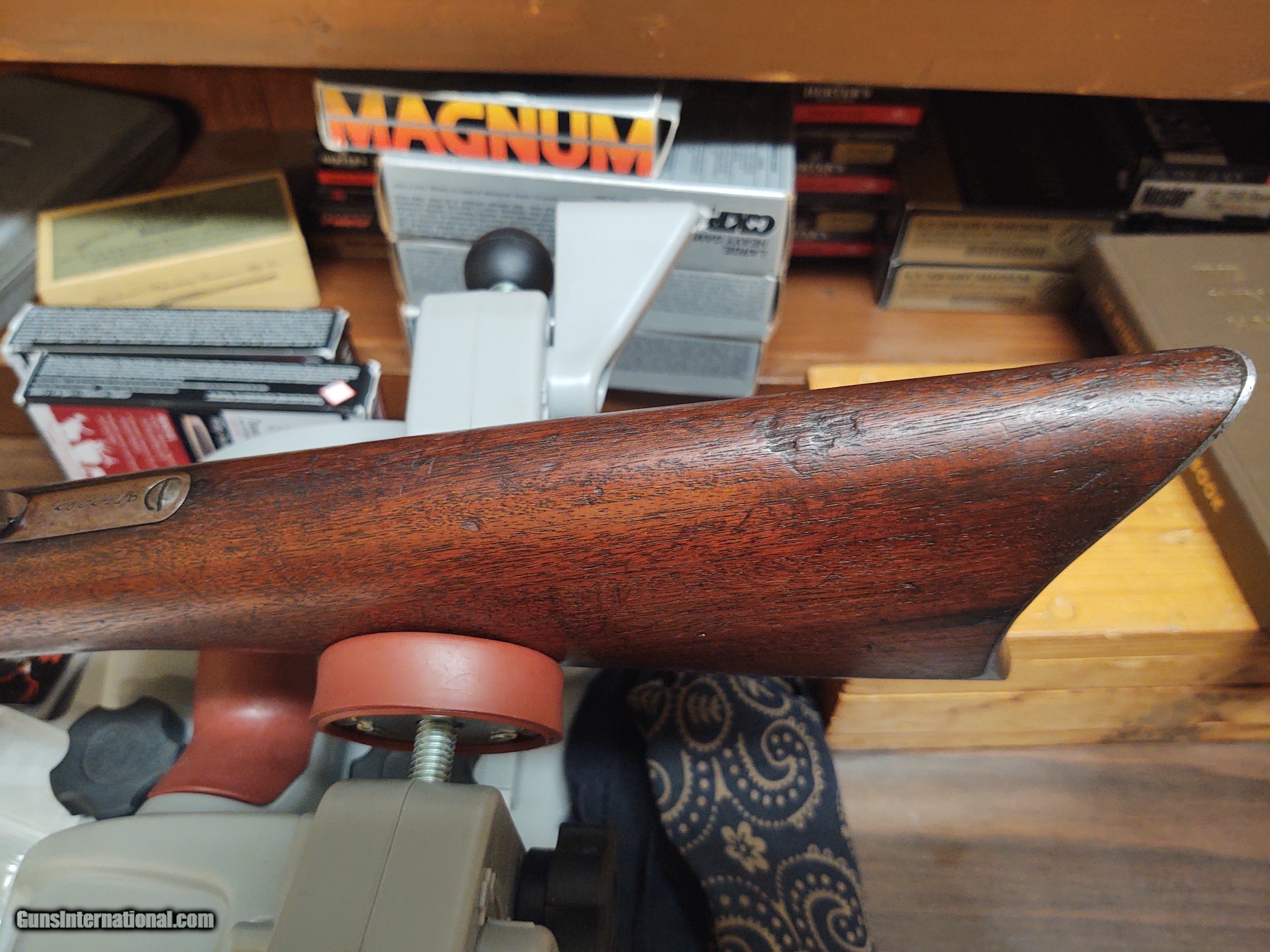 Description: Winchester model 1873 3rd model 44-40 made in 1888 serial number 283XXX B. 24" Octogon barrel full magazine. Trap door in butt stock with no cleaning rods. Metal turning to patina condition with no rust or pitting. Wood in good condition with no cracks, action locks up tight with good strong springs. more pictures available 4068501246 $1500 Sold pending funds SOLD Curio/Relic: Yes Antique: Yes Manufacturer: Winchester Model: 1873 3rd model Serial Number: 283XXX B Barrel Length: 24 Caliber Info: 44-40 Condition: Good Metal Condition: Good with patina no rust or pitting Wood Condition: Good has dings no cracks Bore Condition: Strong Action: Lever Manufacture Date: 1888 |