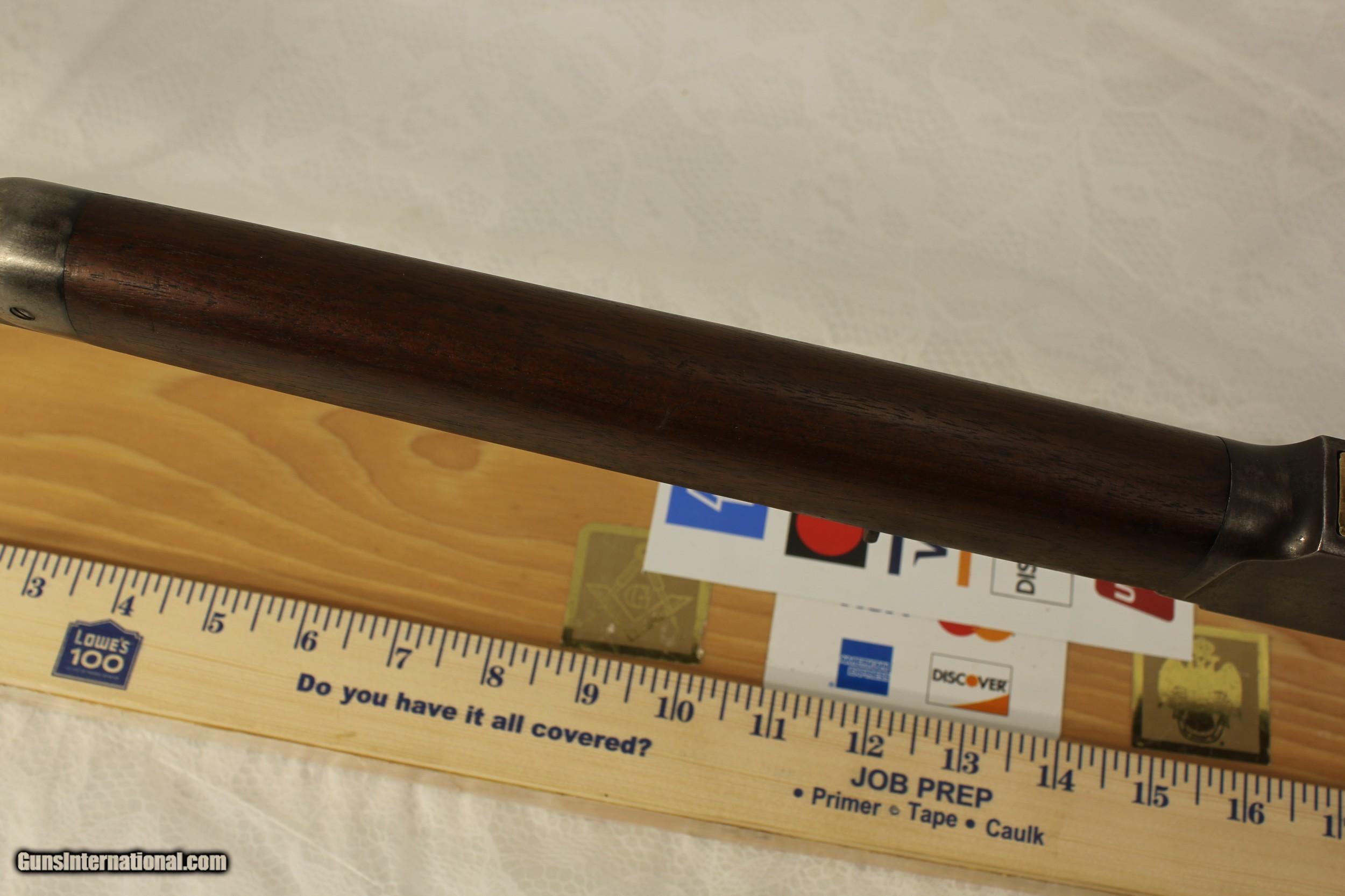 Description: SOLD SOLD SOLD This gun is in very good condition and the previous owner was still hunting with it. It is 38-40 Caliber and was made in 1889. Their is some blue on the protected areas of the frame. The blue is well warn on the barrel and magazine tube. Case colors are still visible on the hammer. The bore has strong rifleing and is bright with some very minor light and small pitts. It has the trap door butt plate. The wood is clean with no cracks of chips. This gun is in unusually good condition for its age. This gun is priced to sell. Don't miss out. $60.00 Shipping via Priority Mail SOLD Antique: Yes |