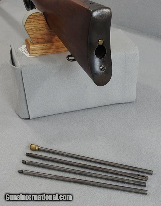 Description: This is a nice 1873 Musket with 50% - 60% blue remaining. The mechanical function is very good crisp and tight. The bore is very good bright and shiny. This has a 4-section cleaning rod in the storage compartment of the butt. The serial number is 370945 and was shipped in 1891. The wood is solid without any cracks or chips. This is an above average 1873 Winchester Musket. I would consider trades for pre 1899 ANTIQUE PISTOLS and rifles on any of my items.. WHAT DO YOU HAVE TO TRADE? Ask about our 30-90 day lay-away program. We accept Bank Check, Money order, Personal checks or wire transfer. SOLD Antique: Yes Manufacturer: Winchester Model: 1873 Musket Serial Number: 370945 |