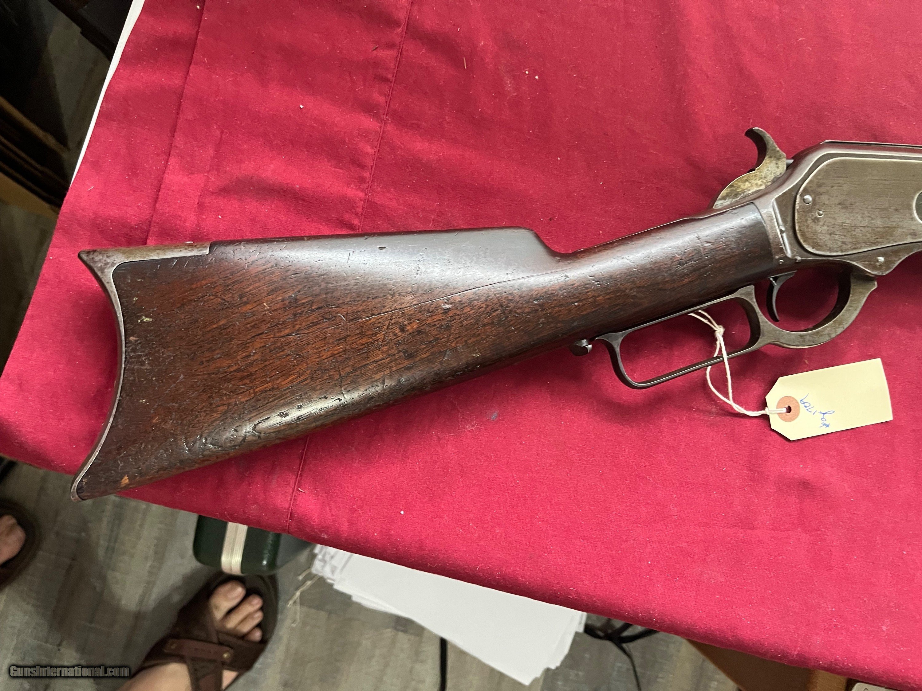 Description: WINCHESTER MODEL 1876 LEVER ACTION RIFLE WITH A SINGLE SET TRIGGER . SER# 35351 MADE IN 1883, CALIBER 45 -60 W.C.F. VERY NICE ORIGINAL UNMESSED WITH RIFLE. 28 INCH OCTAGON BARREL WITH A GOOD SHOOTABLE BORE. ( SHOWS RIFING WITH FROSTY GROOVES) . METAL SHOWS A BROWN PATINA . VERY NICE SOLID WOOD WITH NO CRACKS. NICE TIGHT CRISP ACTION . ORIGINAL SIGHTS WITH AN ADJUSTABLE LADDER REAR SIGHT. EASTERN BRANCH FIREARMS ADD 40.00 SHIPPING – NEXT DAY AIR SHIPPING ADD 50.00 SHIPPING – LONG GUNS GROUND OPTIONAL INSURANCE IS AVAILABLE AT 1.25 PER 100.00 Questions e-mail or call Glen at Eastern Branch Firearms 207-215-5021 TERMS – PLEASE READ BEFORE I DO NOT HAVE A LAYAWAY OPTION ( WE ACCEPT CREDIT CARDS ) -- I GET ALOT OF REQUEST FOR TRADES, I WOULD PERFER NOT TO DO TRADES ON MY INTERNET LISTINGS PAYMENT OPTIONS- We accept money orders, cashier’s checks , bank checks. sorry no personal checks. We accept all major credit cards please add 3% to the ’s cash discount price.(Shipping within the state of Florida - Florida Residents must pay sales tax) .Handguns and long guns do need to be shipped separate. PLEASE do not send payment via FED EX . USPS & UPS are fine. Thank you. We include a signed copy of our FFL with each firearm shipped. SAFTY NOTICE- Buyer is solely responsible for determining that a used gun is safe to shoot. The firearms offered have not been test fired but have been given a visual inspection only for purposes. It is a requirement that every used firearm is inspected by a qualified gunsmith before firing. By , the buyer agrees to hold seller harmless against damages, injury, or death caused by defective merchandise. RETURN POLICY- All firearms come with a 3-day non firing , non messing with ( turning srews ,taking apart,removing parts, scoping. firing, cleaning or messing with in anyway) inspection/return privilege.Inspection is based on a visual review of the gun to confirm the gun is in the condition stated. In the case of a return, buyer pays all shipping charges & if paid for with a credit card buyer absorbs the 3% credit card charges . So please ask questions BEFORE you bid. Thanks for Looking and Good Luck!! U.S. sales only, no exports…this includes antiques. I will ship to third party for exporting SOLD Antique: Yes |