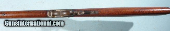 Description: WINCHESTER MODEL 1885 LOW WALL SINGLE SHOT .32 LONG RF CAL. RIFLE. 26” octagon barrel. All original and very good overall. Even brown patina mixed with minor thin blue. Wood has been refinished and forend has a small hairline near the tip on the right side. Steel factory rifle crescent butt plate. Working order. Bore with moderate pitting but fairly good rifling. Nice looking rifle. SOLD Antique: Yes |